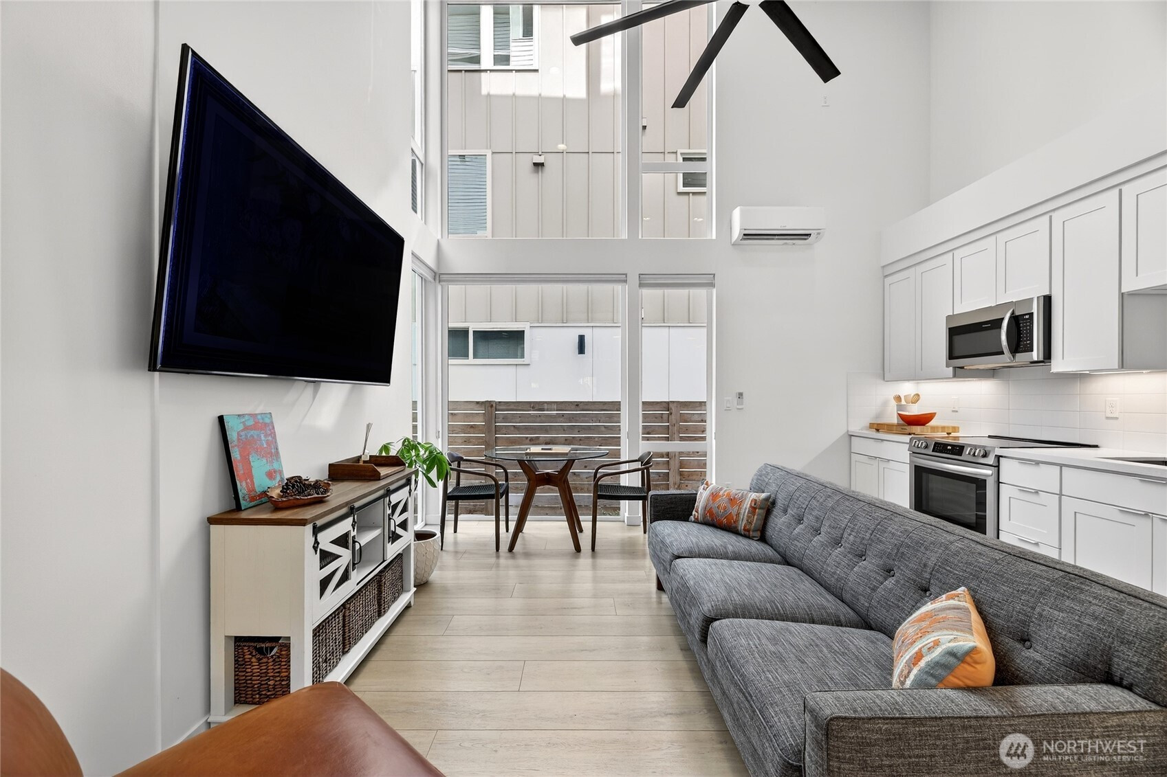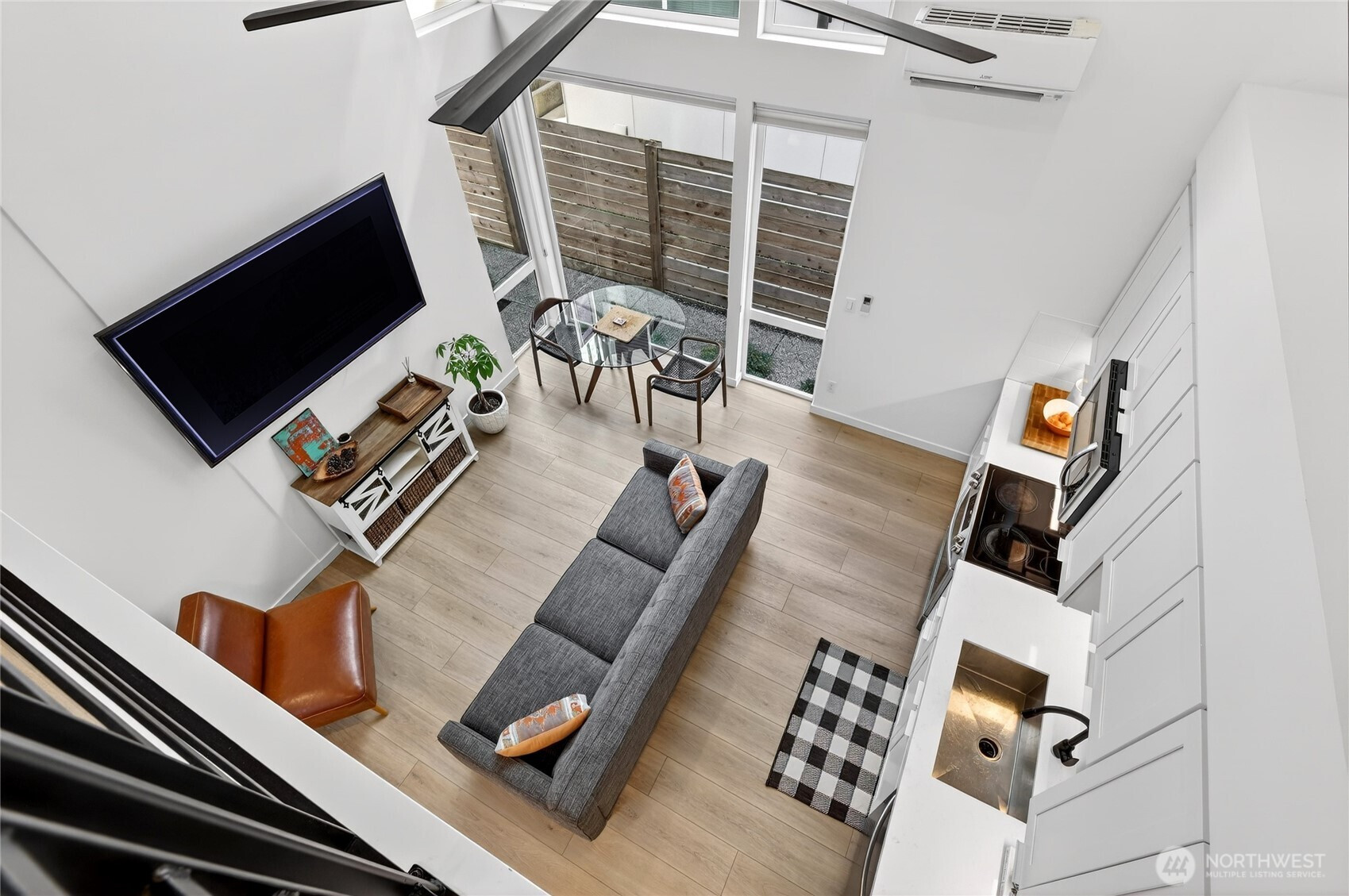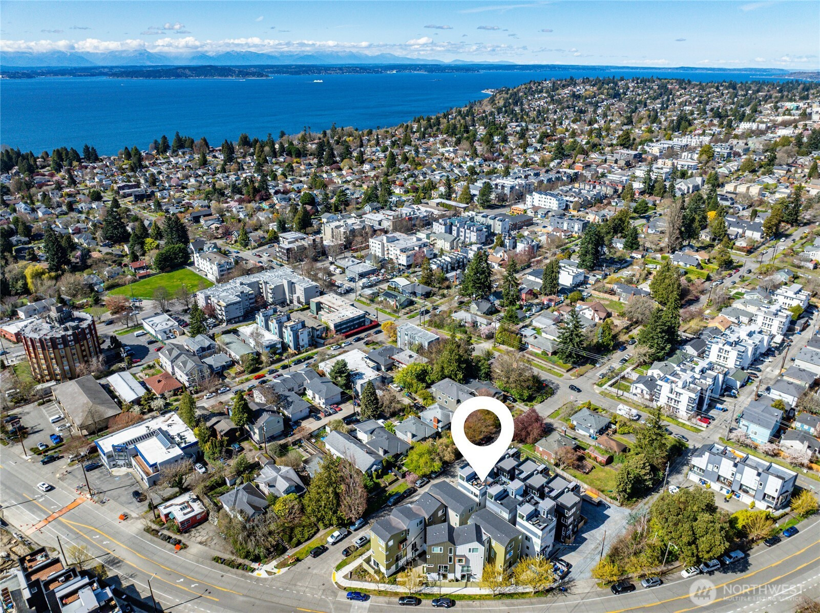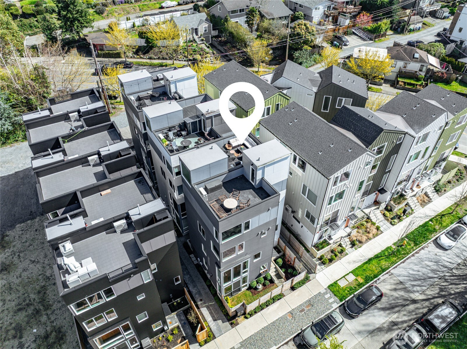 Modern Morgan Junction townhome offering sound and mountain views along with a stunning rooftop deck perfect for sunset entertaining. The main level features an open-concept kitchen and living area with large windows, quartz countertops, stainless steel appliances and custom cabinetry. A unique mezzanine level above the main floor creates flexible space ideal for a home office, reading nook or dining area. Two bedrooms and a full bathroom are located on the third level, along with a convenient laundry area with washer and dryer included. The top-level primary suite serves as a private retreat and features a spa-inspired bath with heated floors. Above it all, the rooftop deck offers sweeping territorial, sound and mountain views. An incredible space for relaxing or hosting friends. Additional exterior storage included. Ideally located in the heart of Morgan Junction just steps from grocery stores, coffee shops, restaurants, bars, fitness studios, and transit - plus a stop just two blocks away with convenient direct service to downtown. No HOA dues.