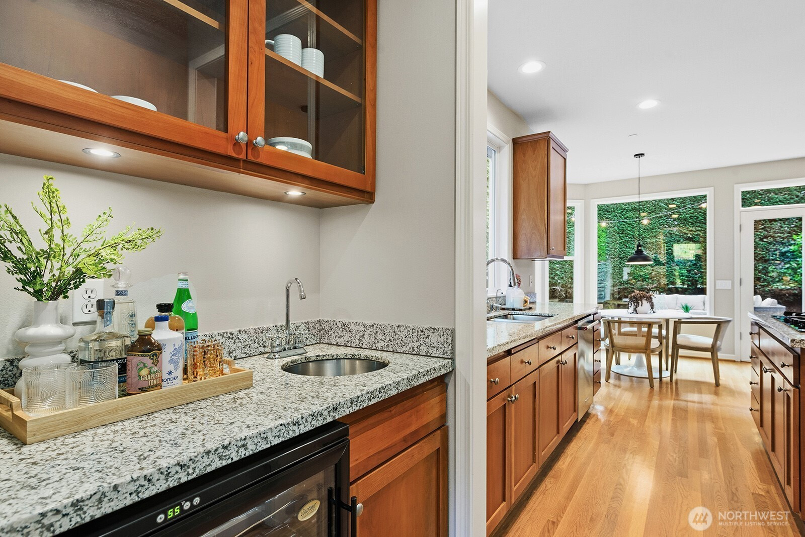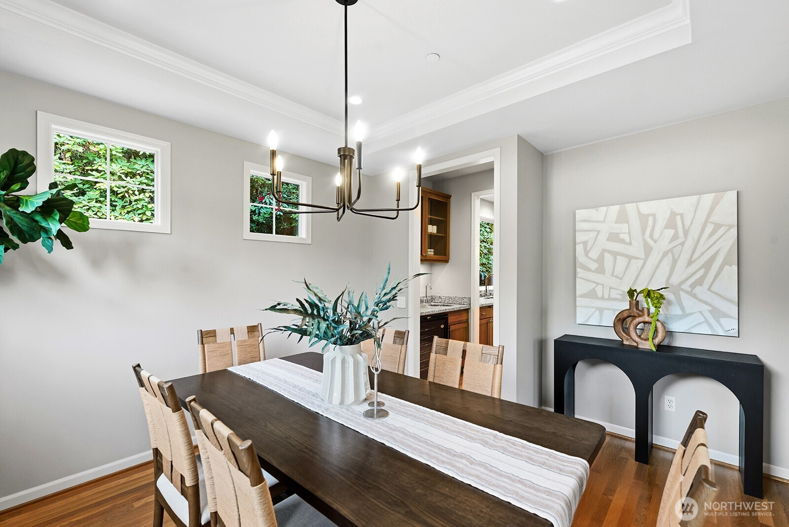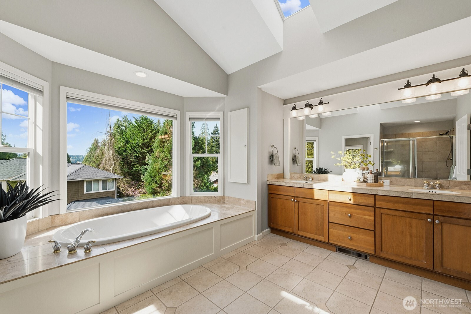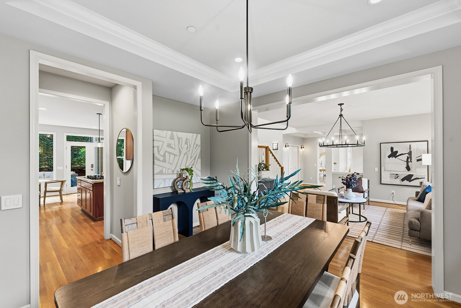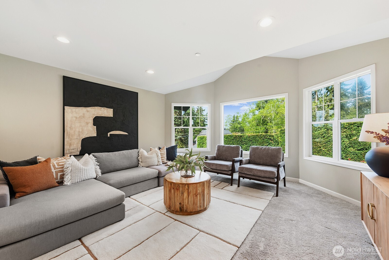 Located on a tranquil corner lot in sought-after Holmes Point, this stunning home offers an exceptional setting with a seamless connection to the outdoors capturing the very best of PNW living. Wrap-around front porch with sunny western exposure welcomes you into a home that balances privacy and connection. Rich oak hardwoods ground the main level, featuring formal living and dining rooms ideal for entertaining. Soaring 18-foot ceilings and walls of glass fill the family room with natural light, anchored by a beautiful gas fireplace for cozy evenings. The chef’s kitchen boasts a Sub-Zero fridge, slab counters, eat-in island, walk-in pantry, and breakfast nook perfect for casual eats. French doors open to a large, private backyard patio surrounded by lush landscaping. A grand staircase flows to an exceptional primary suite with walk-in closet and spa-like 5 piece bath with heated floors. Two additional bedrooms, a full bath, and bonus room complete the upper level. Additional highlights include a fully fenced backyard, sprinkler system, skylights, central vacuum, and oversized 3-car garage. Outdoor adventure awaits just steps away at O.O. Denny Park, the neighborhood boat ramp, and Lake Washington. Enjoy exploring Big Finn Hill Park and Saint Edward State Park, with easy access to Kirkland, I-405, and top-rated schools in the Lake Washington School District. Welcome Home!
