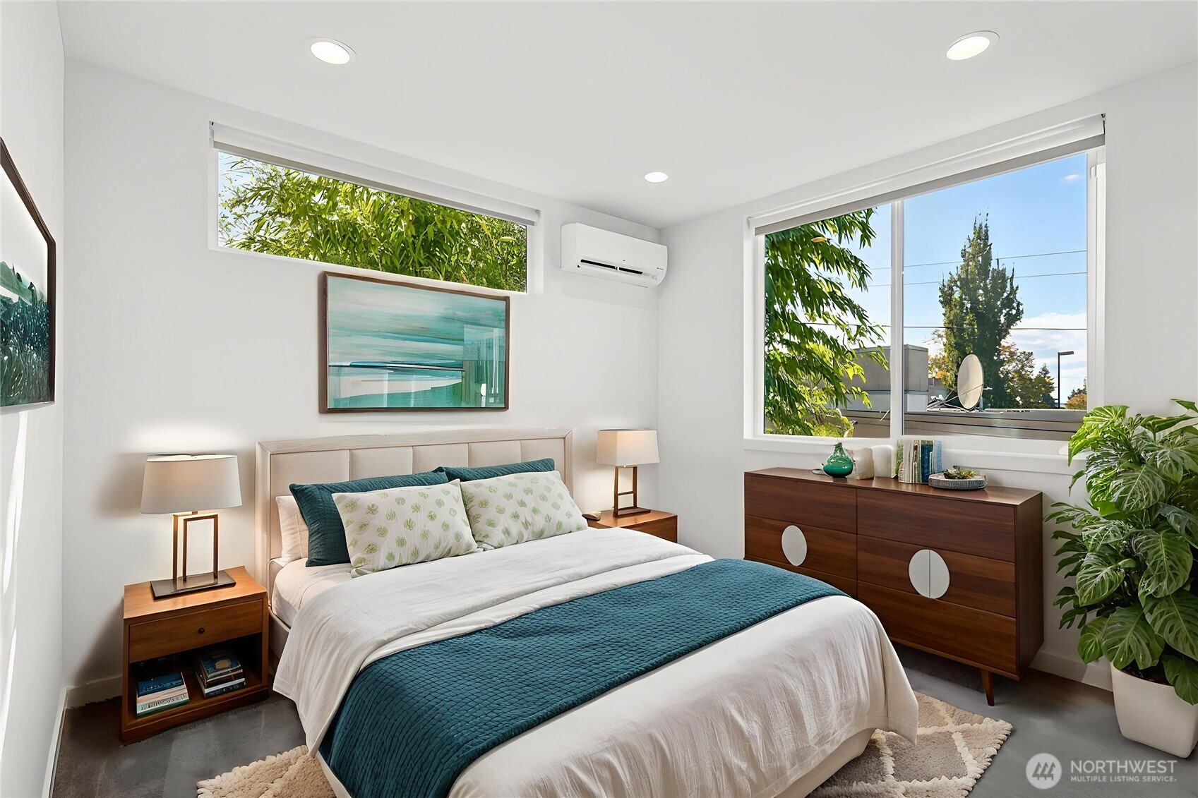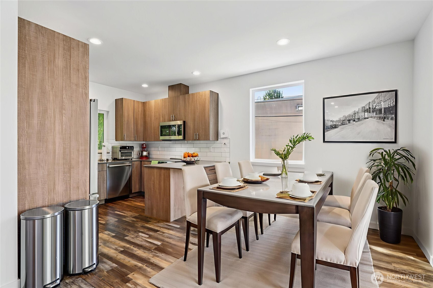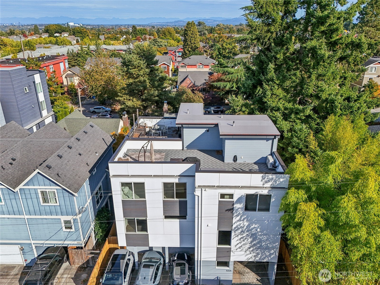 Beautiful & modern 5yr old West Seattle townhome with an expansive rooftop deck offering sweeping views of the Sound & Mtn's. Unique & creative floorplan. Featuring 3 beds, 3 baths, this home combines style, comfort, & convenience. Main level has high ceilings, gleaming hardwoods & open-concept. kitchen w/ quartz countertops, stainless appliances, custom cabinetry, & abundant natural light w/ a spacious Living room. Upstairs, the primary suite includes a spa-like bath and views, plus two additional generously sized bedrooms & a full bath. The rooftop deck is perfect for entertaining & enjoying sunrise/sunsets. Upgrades include high-efficiency heating/AC, off-street parking, ample closet space & extra bike storage. High walk-score! No HOA!