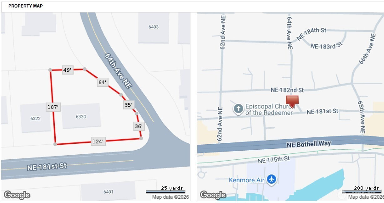 Sunny, 10,803 sf view property overlooking Lake Washington zoned CB (Community Business West) in Kenmore. Can support a 5 to 6-unit attached residential development. Initial 6-unit concept plan submitted for pre-application review by City of Kenmore. City review targeted for Feb 12th and will be uploaded to supplements. Corner lot, site has topo sloping uphill away road, down towards view, creating creating great lake view siting from all units. Anticipated level access from east off of 64th. Kenmore allows all trees to be removed in CB zoning. Subject to confirmation by City during pre-app process. Adjacent property to west also for sale, by others. Could support expanded development.
