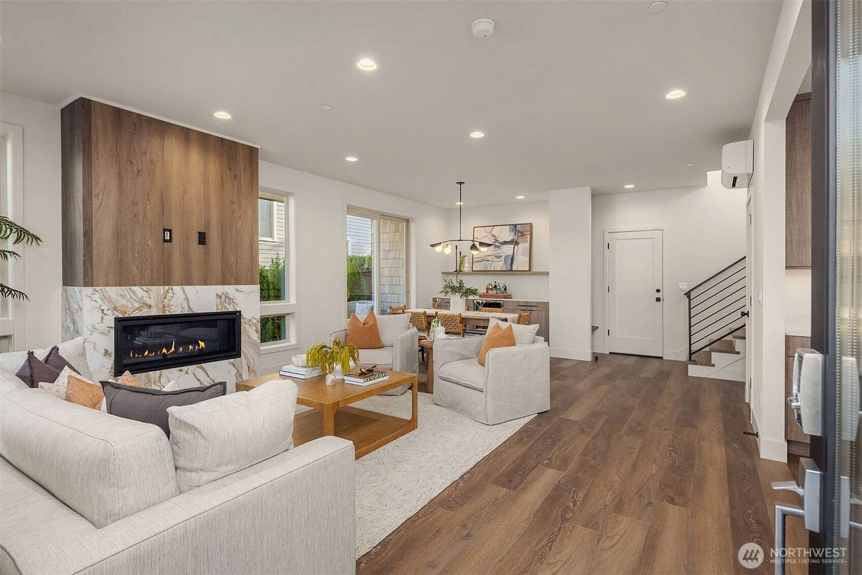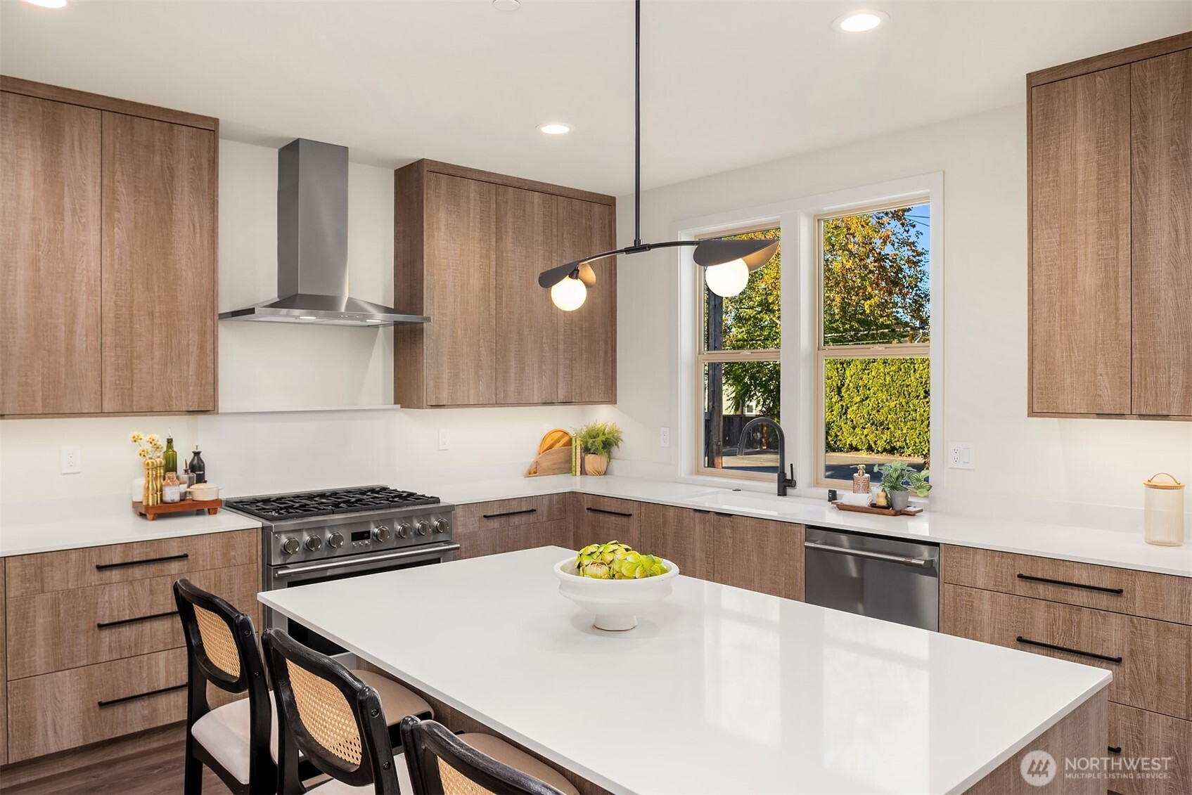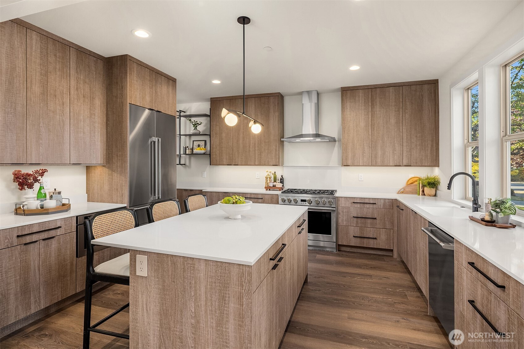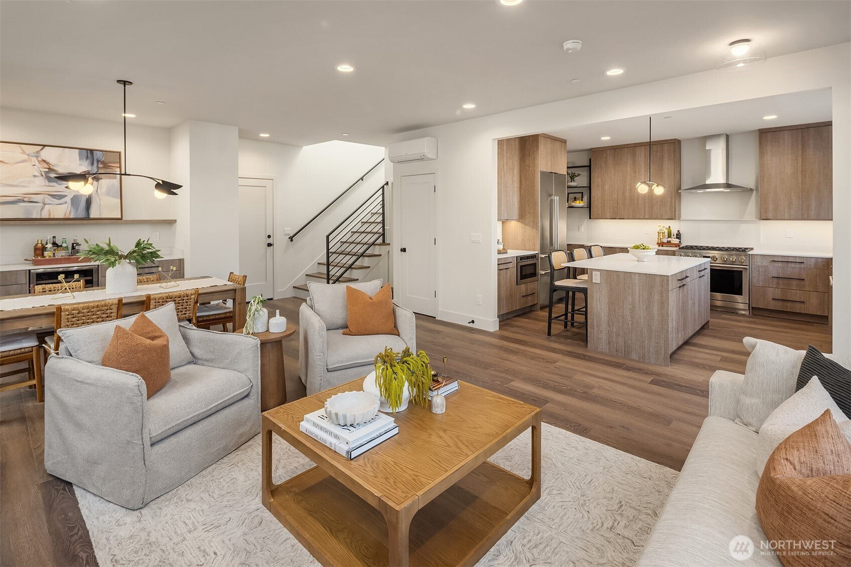 Spacious new construction home in Kirkland's coveted West of Market neighborhood. This fantastic two-story layout has it all including wonderful curb appeal. Main level features open dining and living room with cozy gas fireplace. Functional kitchen is centered around convenient island plus ample storage and pantry space. Powder bath rounds out main floor - making hosting guests a breeze. Upstairs offers a serene primary suite with unique built-in coffee bar with beverage fridge, luxurious bath & WIC. Three additional bedrooms, full bath, and oversized laundry with extensive storage complete second level. Enjoy proximity to Lake Washington, Waverly Beach Park, and downtown Kirkland. Two-car EV-ready garage completes this remarkable home!
