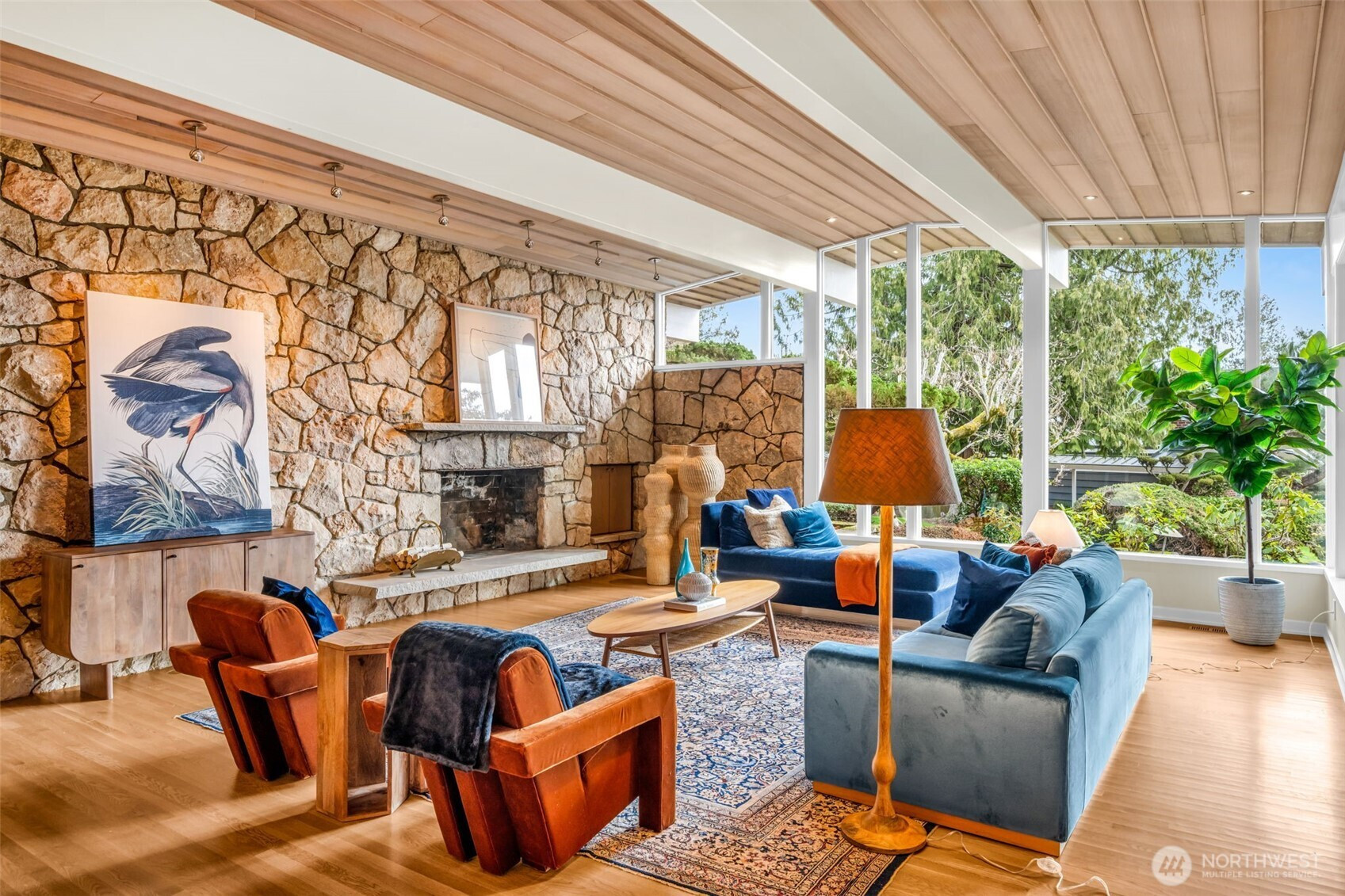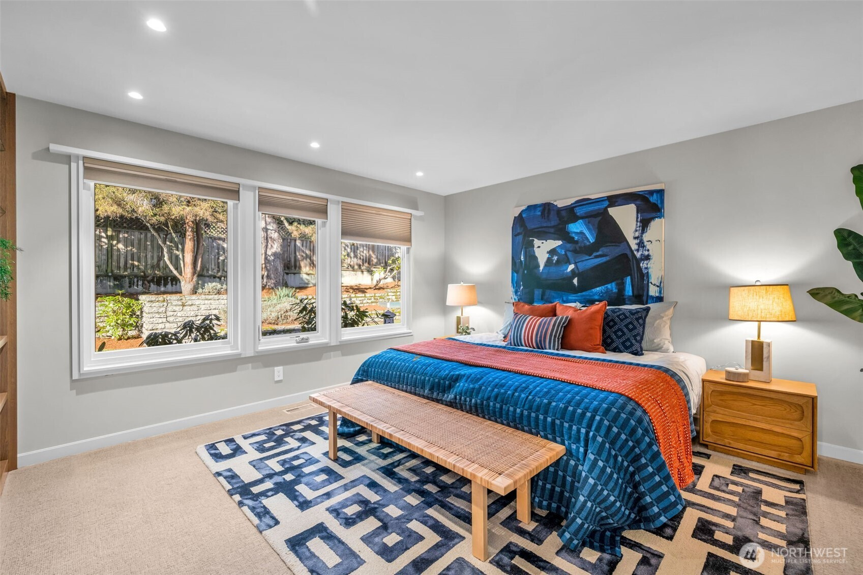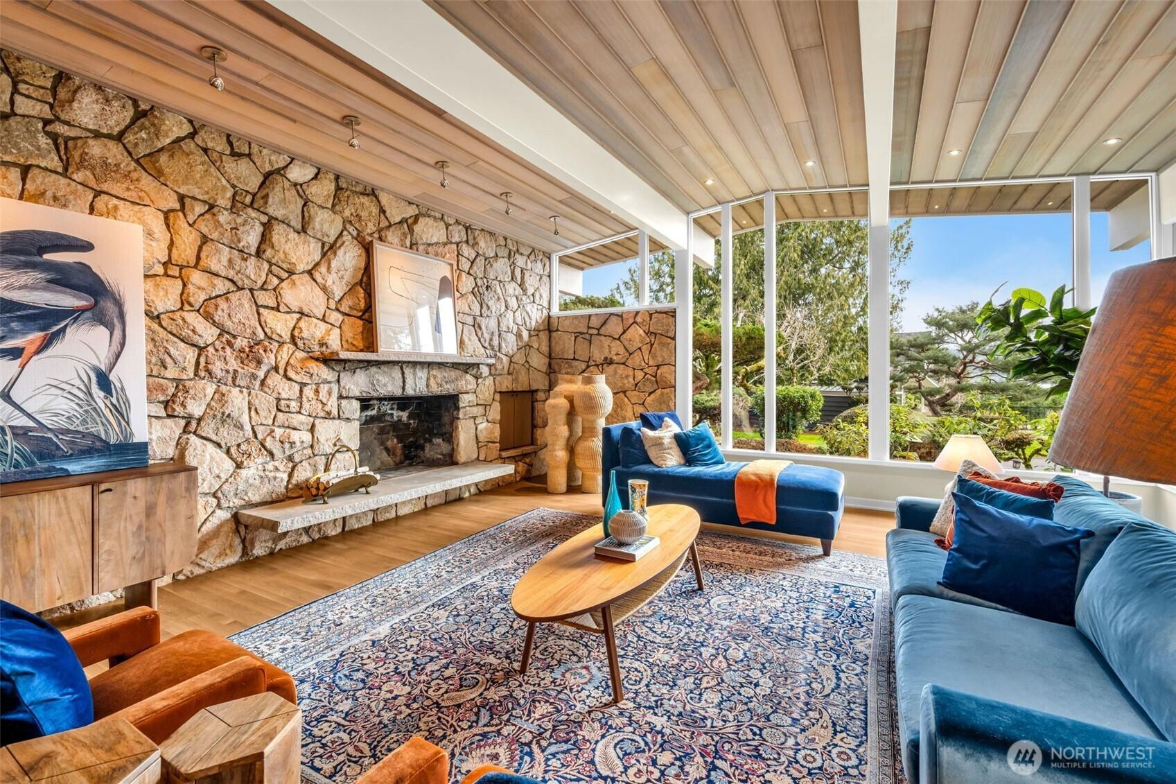 Rarely does a home of this caliber reach the market. Completely reimagined in 2019 with a full stud-out remodel, this quintessential Seward Park mid-century modern is a masterwork of light and craft. Designed by esteemed Seattle architect, I. Mervin Gorasht, experience a seamless indoor-outdoor "tent" feel with floor-to-ceiling windows, Lake Washington views, and hand-milled cedar ceilings from Bainbridge Island. The chef’s kitchen features a hidden prep pantry, dual appliances, and custom white oak cabinetry. Sprawling covered outdoor "rooms" allow for year-round entertaining, rain or shine. Situated on a quiet, social street just steps from Martha Washington Park and Seward Park. Every detail—from the rolled steel accents to the marble baths—reflects a commitment to quality and a peaceful, in-city retreat.