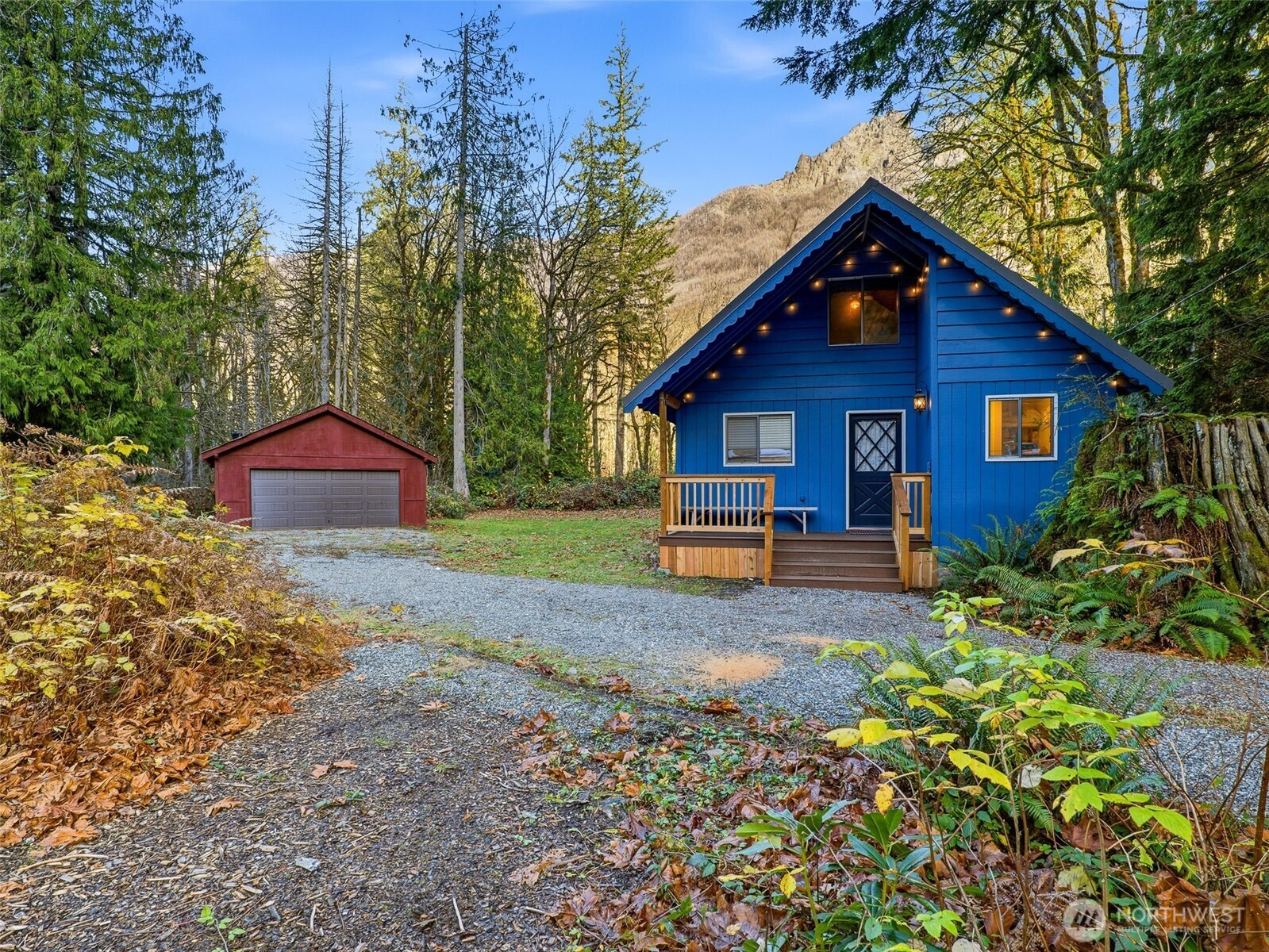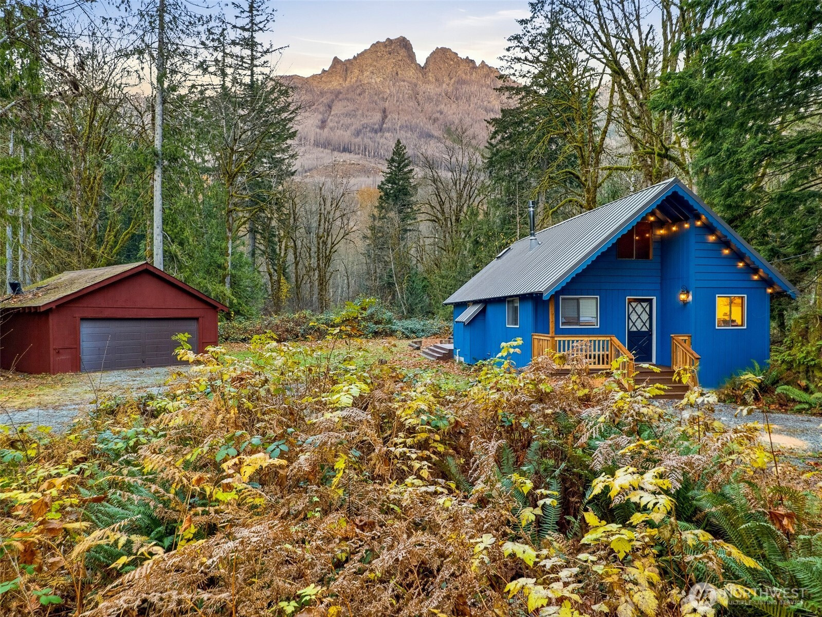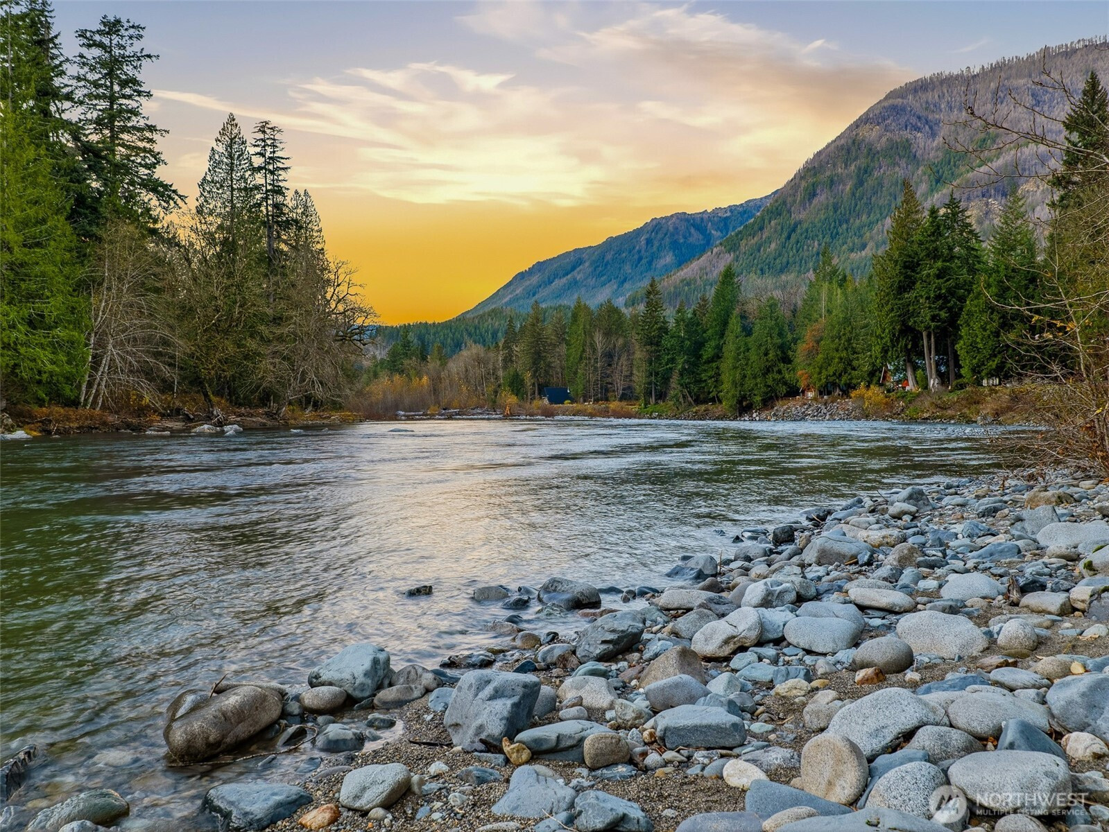 The mountain view you’ve been dreaming of! Set at the base of Mt. Baring in the sought-after Riverwood community, this charming cabin on an expansive double lot is the perfect Sky Valley escape. Inside, hardwood floors, wood accents, and a cozy gas fireplace complement large windows that frame the dramatic view. Main level includes 1bed, 1 bath, and utility room plumbed for a 2nd bath, while upstairs offers a 2nd bedroom and bonus sleeping area. A spacious deck overlooks a private backyard and 2-car garage. The second lot, with all utilities, offers opportunity for expansion or RV. With a short walk to Skykomish river access, Stevens Pass 20 mins up valley and surrounded by endless recreation, it's an ideal getaway with A+ Airbnb potential.