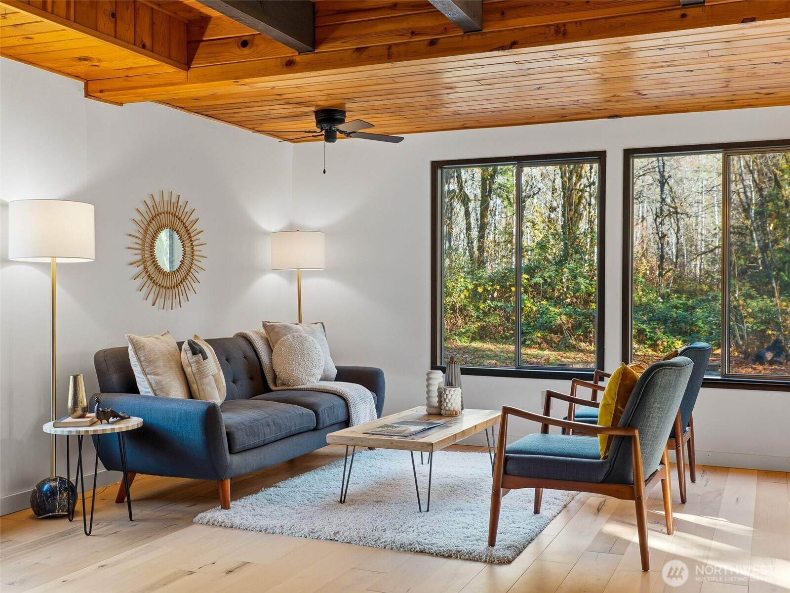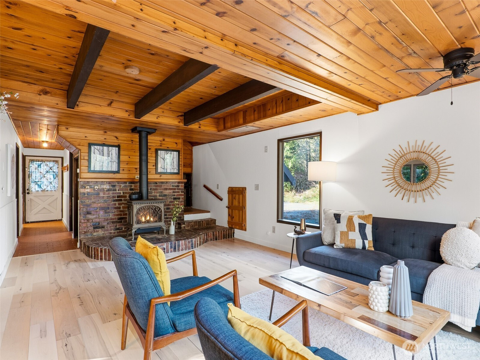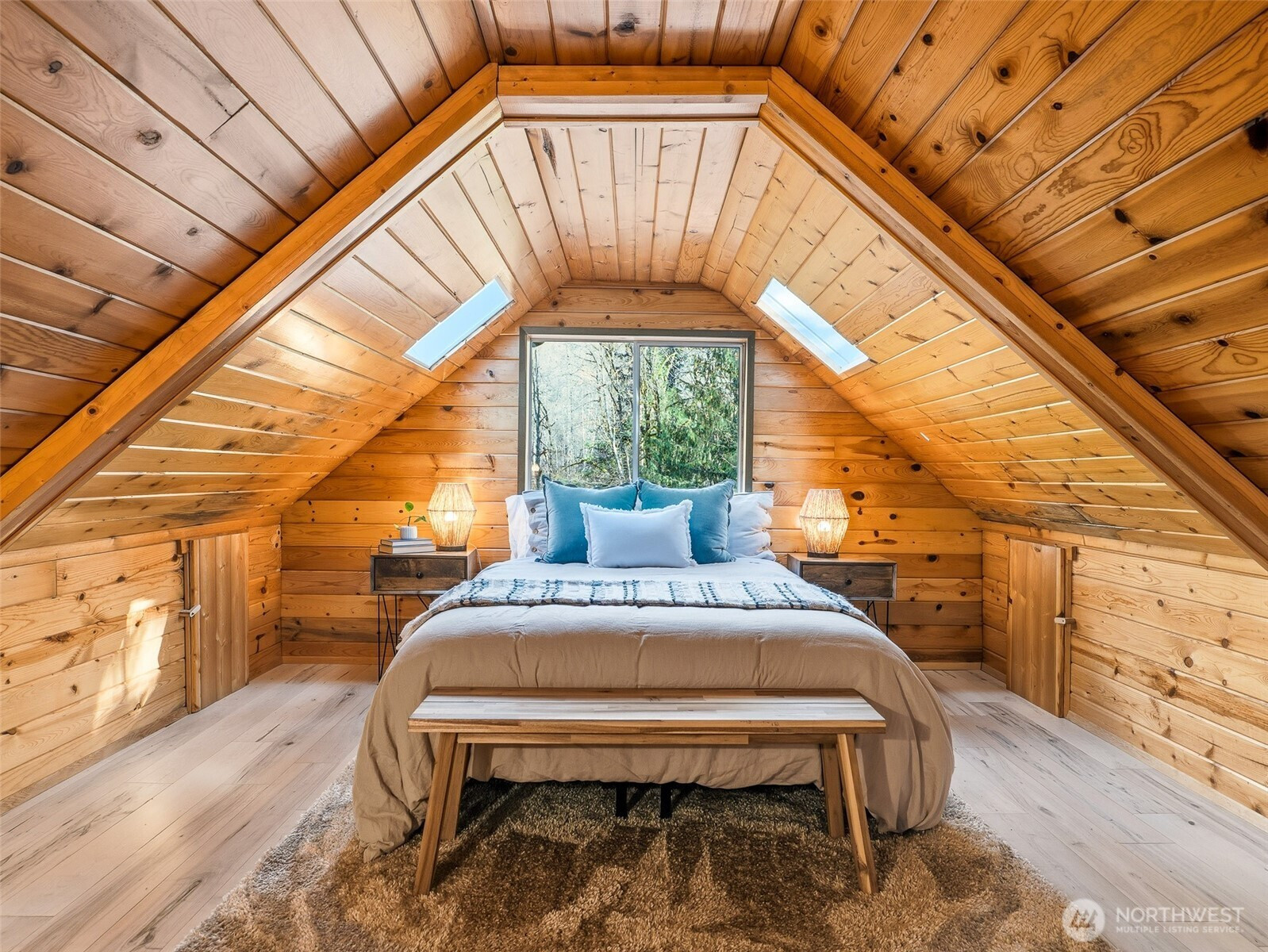 The mountain view you’ve been dreaming of! Set at the base of Mt. Baring in the sought-after Riverwood community, this charming cabin on an expansive double lot is the perfect Sky Valley escape. Inside, hardwood floors, wood accents, and a cozy gas fireplace complement large windows that frame the dramatic view. Main level includes 1bed, 1 bath, and utility room plumbed for a 2nd bath, while upstairs offers a 2nd bedroom and bonus sleeping area. A spacious deck overlooks a private backyard and 2-car garage. The second lot, with all utilities, offers opportunity for expansion or RV. With a short walk to Skykomish river access, Stevens Pass 20 mins up valley and surrounded by endless recreation, it's an ideal getaway with A+ Airbnb potential.