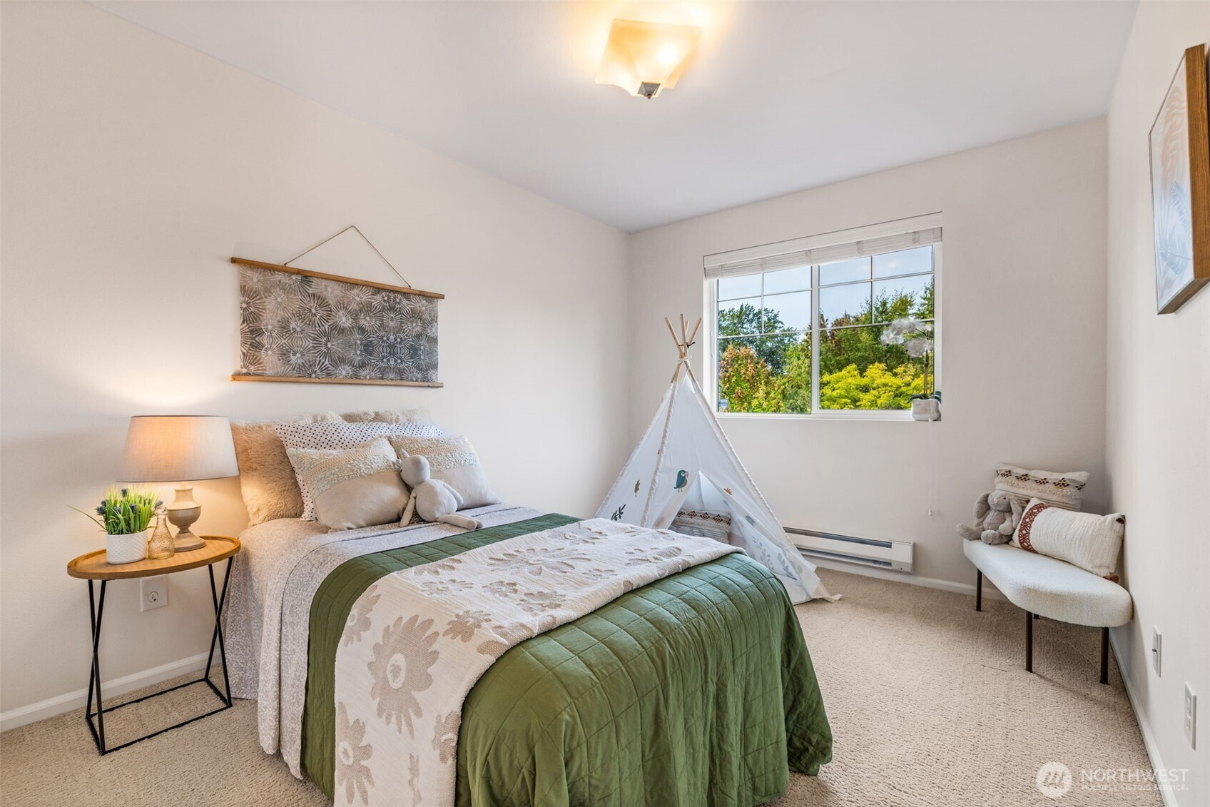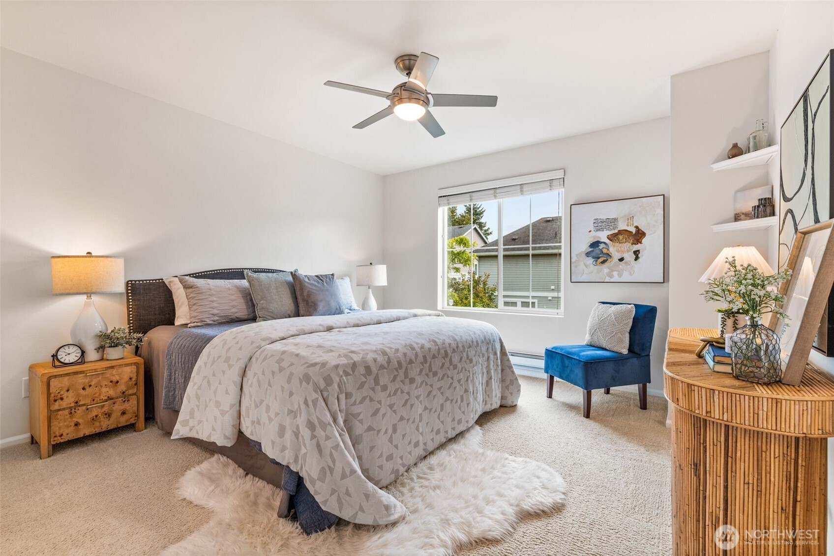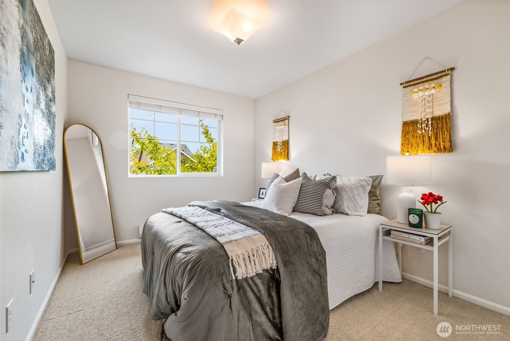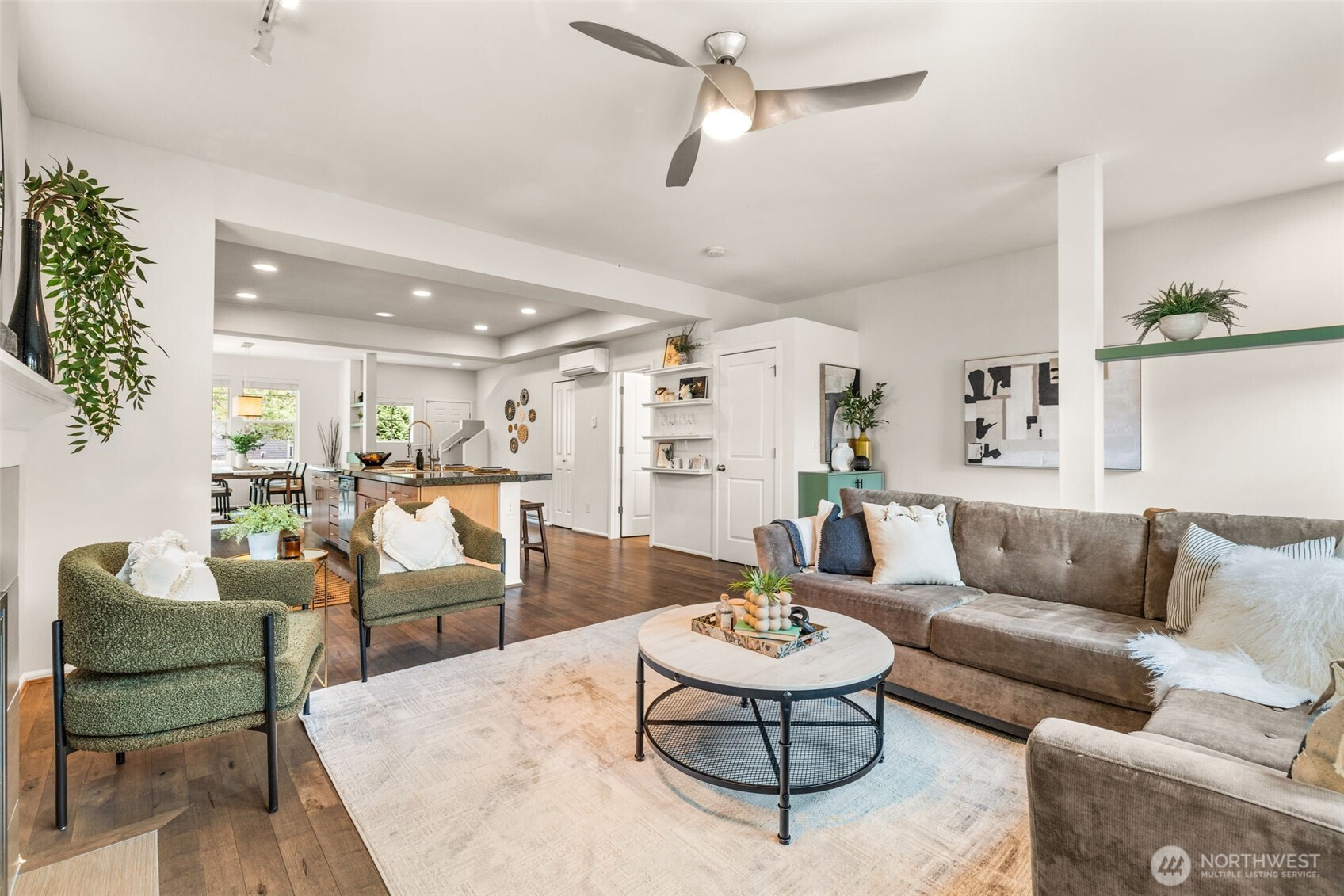Step into this sunlit retreat, set on a large corner lot — a rare combo for this neighborhood. The detached home balances privacy with community charm. The main level features soaring ceilings, abundant natural light, and an open kitchen with oversized island, stainless appliances, and ample storage, all flowing seamlessly into the dining and living areas anchored by a cozy fireplace. Upstairs, three bedrooms include a spacious primary suite with walk-in closet and private bath. Outside, enjoy a fully fenced backyard with patio, apple trees, grapevines, and your own strawberries and blueberries. A detached garage adds both security and convenience. With an easy commute to downtown Seattle, this turn-key home blends comfort and lifestyle.