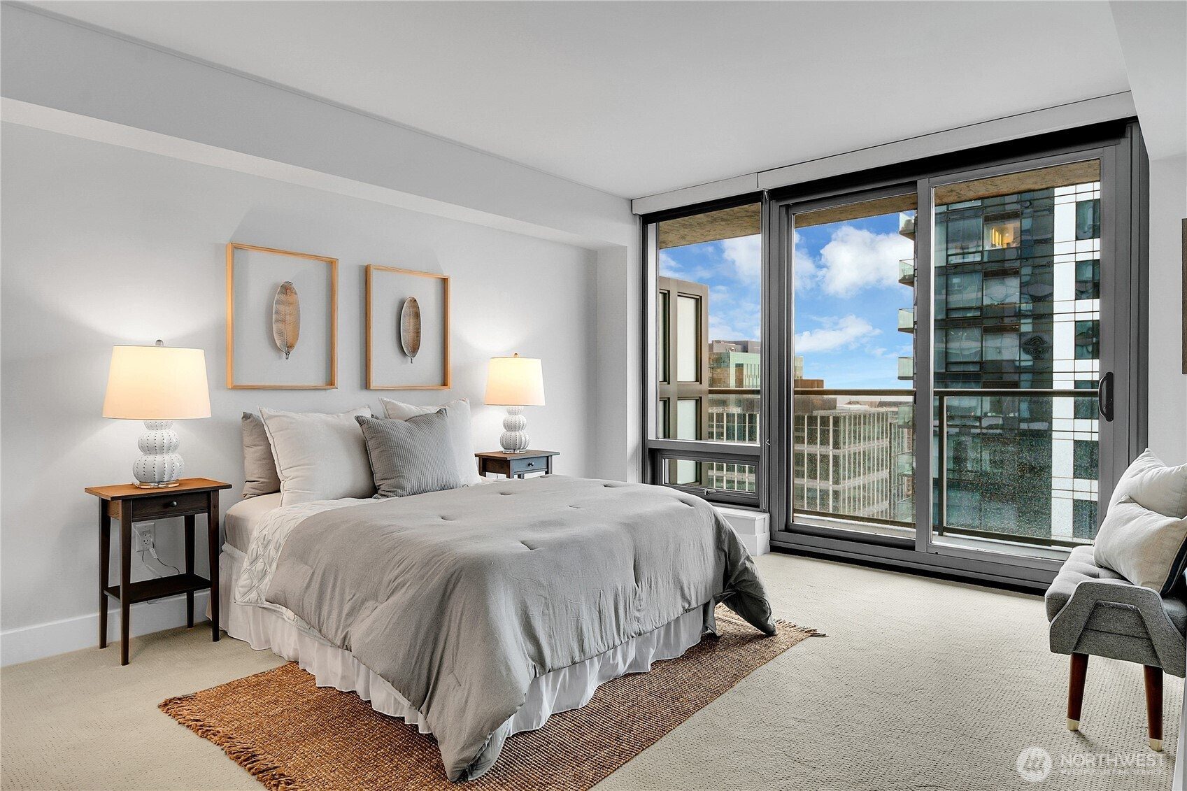 Luxury Downtown Bellevue Highrise in the center of Downtown Bellevue. ONE LINCOLN TOWER is known for placing the utmost importance on safety and security and residents enjoy professional and dependable concierge services. Condo #2103 is extra large at 1,024 square feet (most OLT 1 bedrooms are 757 sf) + condo #2103 has an OFFICE which has been updated with incredible built-ins. Brand new carpeting Dec 2025. The deck is extra long with a sunny southern exposure + great views of Lake Washington! SECURE PARKING GARAGE SPACE C68 on P3. BIG STORAGE UNIT 119 on P4. 4th floor full-size heated swimming pool, relaxing hot tub and a luxury gym. An easy walk to the best shopping, restaurants and bars + multiple transportation options within steps.