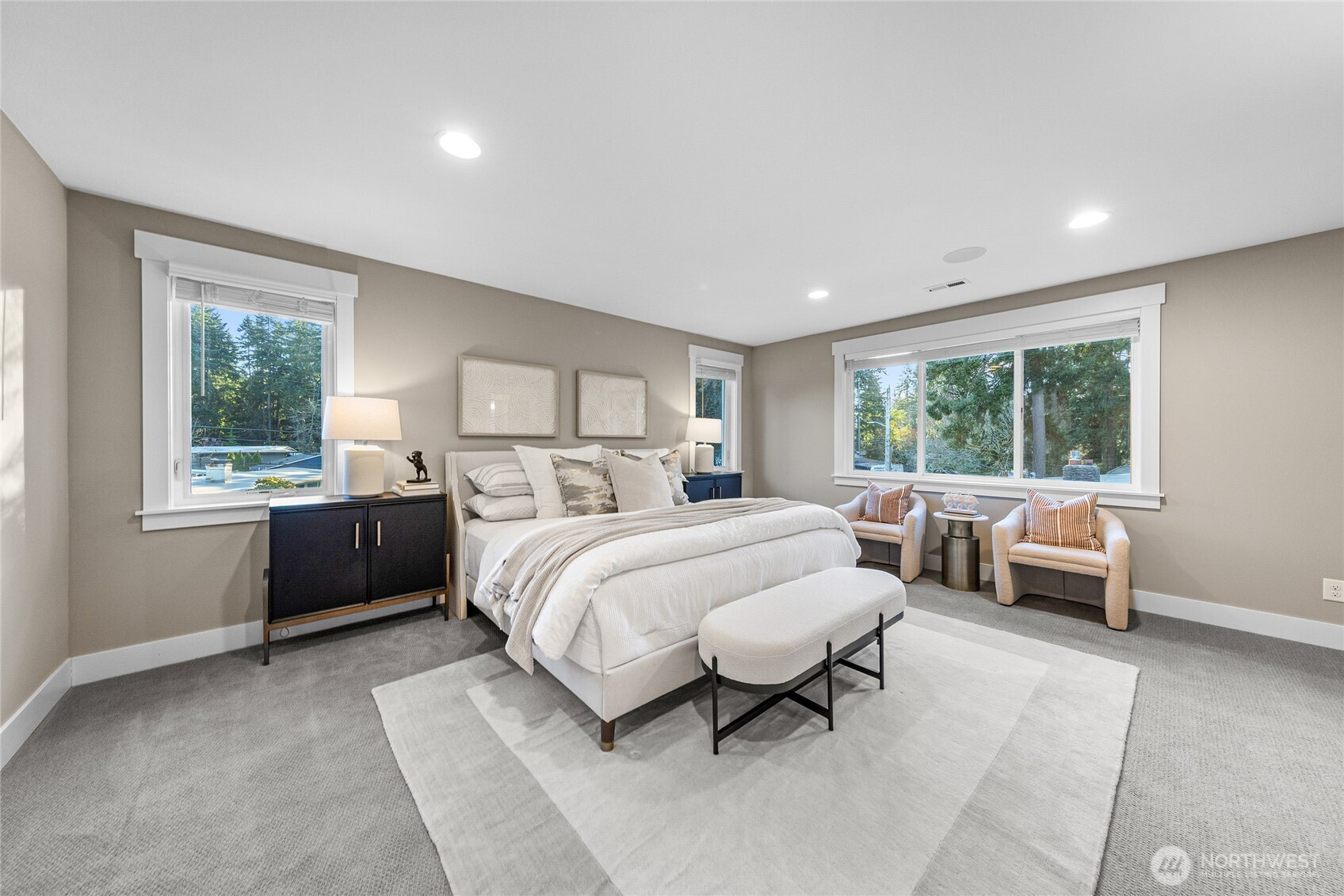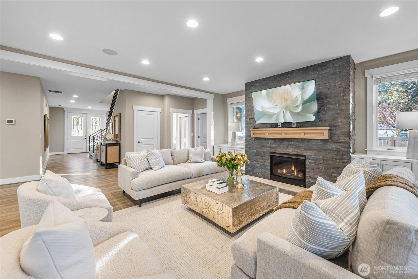 Tucked away on a quiet dead-end street with no through traffic, this stunning house offers the perfect blend of privacy, nature, and everyday convenience in Kirkland’s desirable Bridle Trails neighborhood. Just a 2-minute walk to a top-ranked elementary school, the home sits in a peaceful, nature-connected setting with nearby horse ranches, wildlife, and safe streets ideal for outdoor play.This thoughtfully designed home features 3,390 sq ft of open-concept living on a level lot with a wide, usable front yard. Open on 3 sides, the home is filled with all-day natural light. The main level offers a bedroom with a 3/4 bath—perfect for guests or multigenerational living—along with a spacious kitchen that flows seamlessly into the living area and dining nook.Upstairs, enjoy a sun-filled primary suite, a generous bonus room for entertaining or work-from-home needs, and two additional large bedrooms. No HOA means maximum freedom. Ideally located just 0.6 miles to I-405, minutes to Bridle Trails State Park, Costco, Safeway, Starbucks, major tech employment centers, and convenient bus access—this home truly has it all.