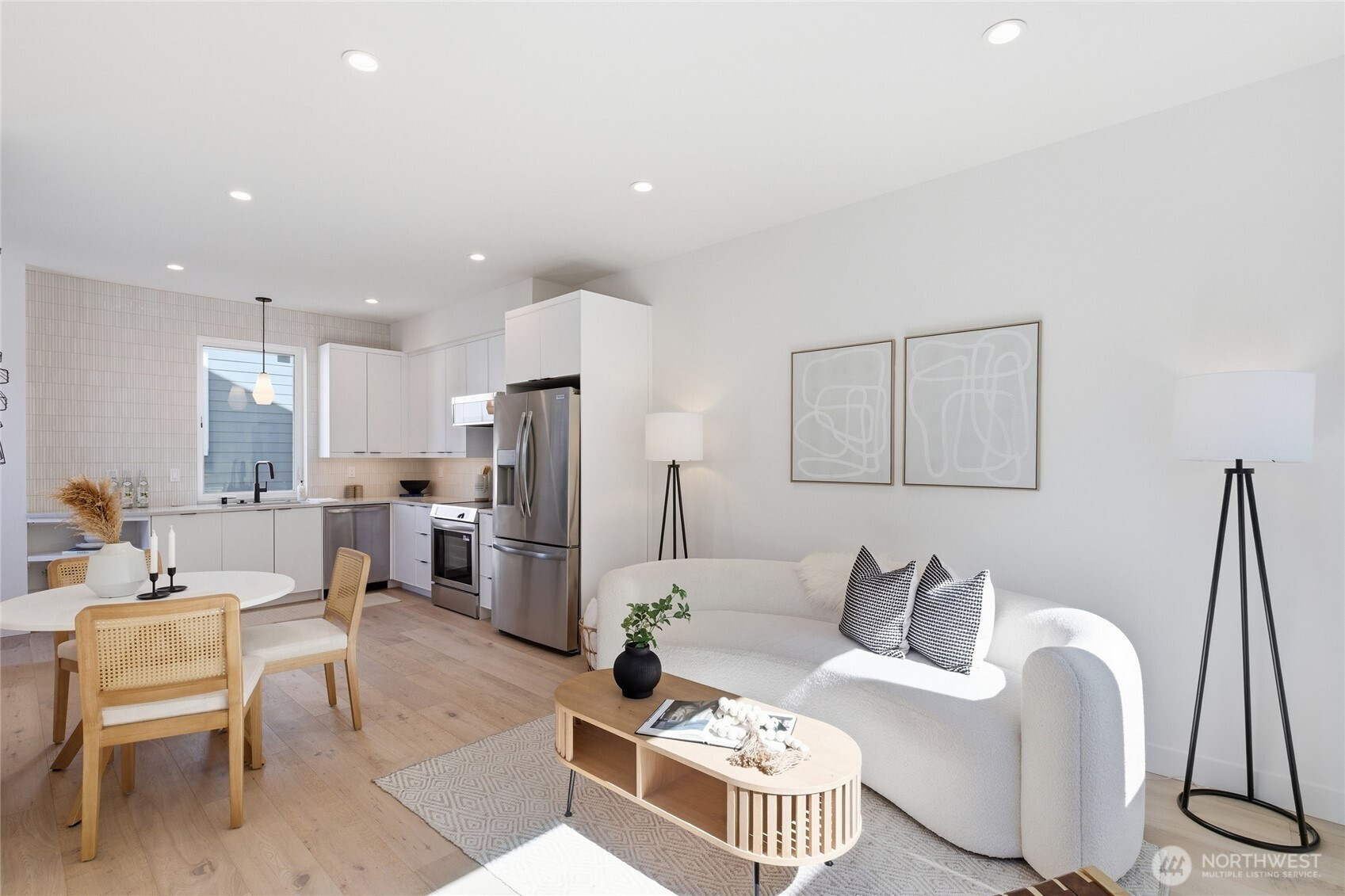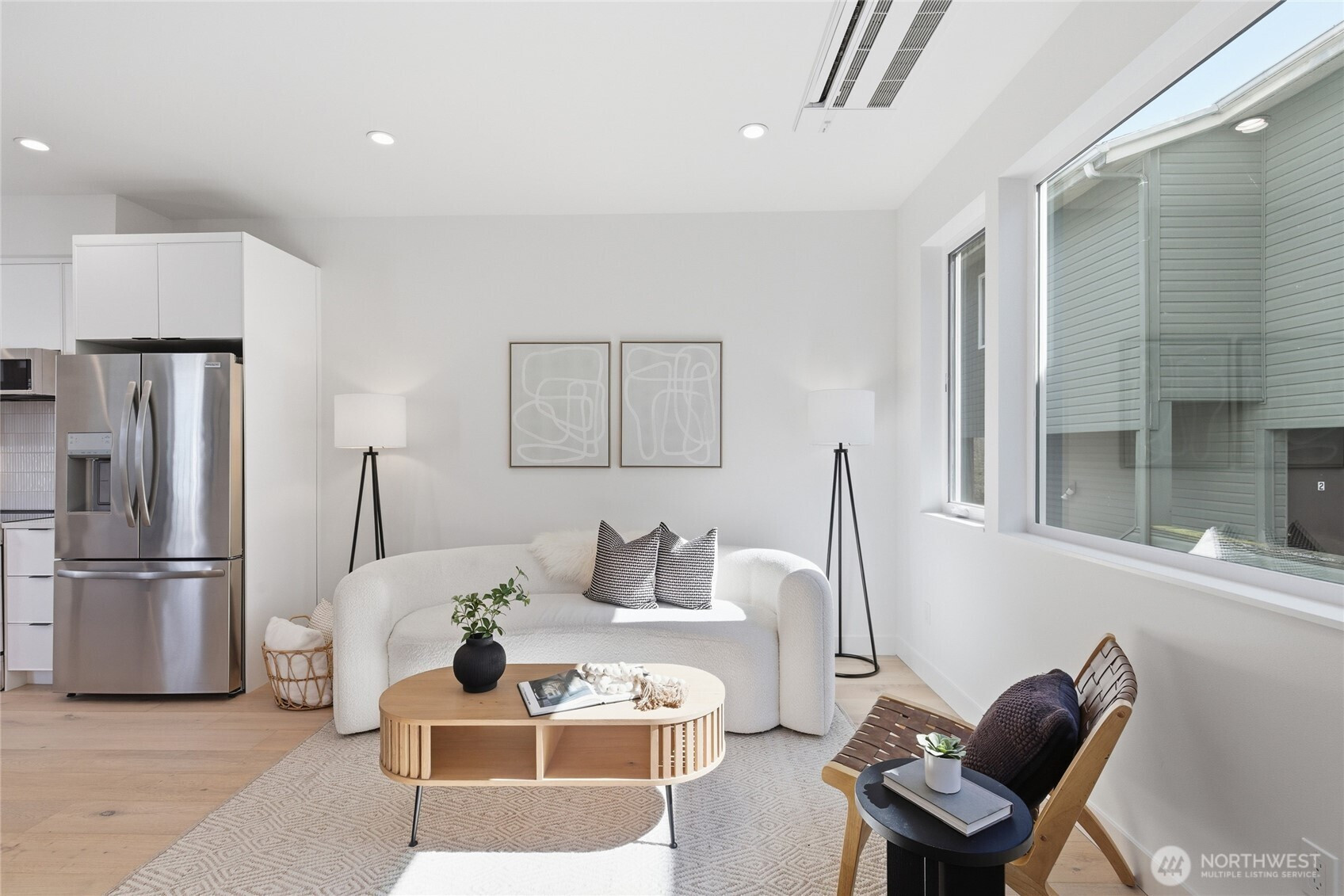 (503) 893-8874Sophisticated Ballard home offering 1,081sf of thoughtfully designed living space. This 2-bedroom, 2-bath home features a dedicated office—ideal for remote work or creative pursuits. Soaring ceilings and generous windows fill the interior with natural light, while premium finishes elevate everyday living. Enjoy Bellmont cabinets, engineered hardwood throughout (no carpet), and heated floors in both bathrooms. Mini-split A/C in every room provides year-round comfort. The primary bathroom includes motion sensor lights and a dedicated bidet outlet for modern convenience. Assigned EV-ready parking included. Easy access to NW 65th dining and Downtown Ballard—88 Walk Score and 95 Bike Score. Quick routes to Golden Gardens and 15th/99 for SLU/Downtown commutes. Top-ranked schools!