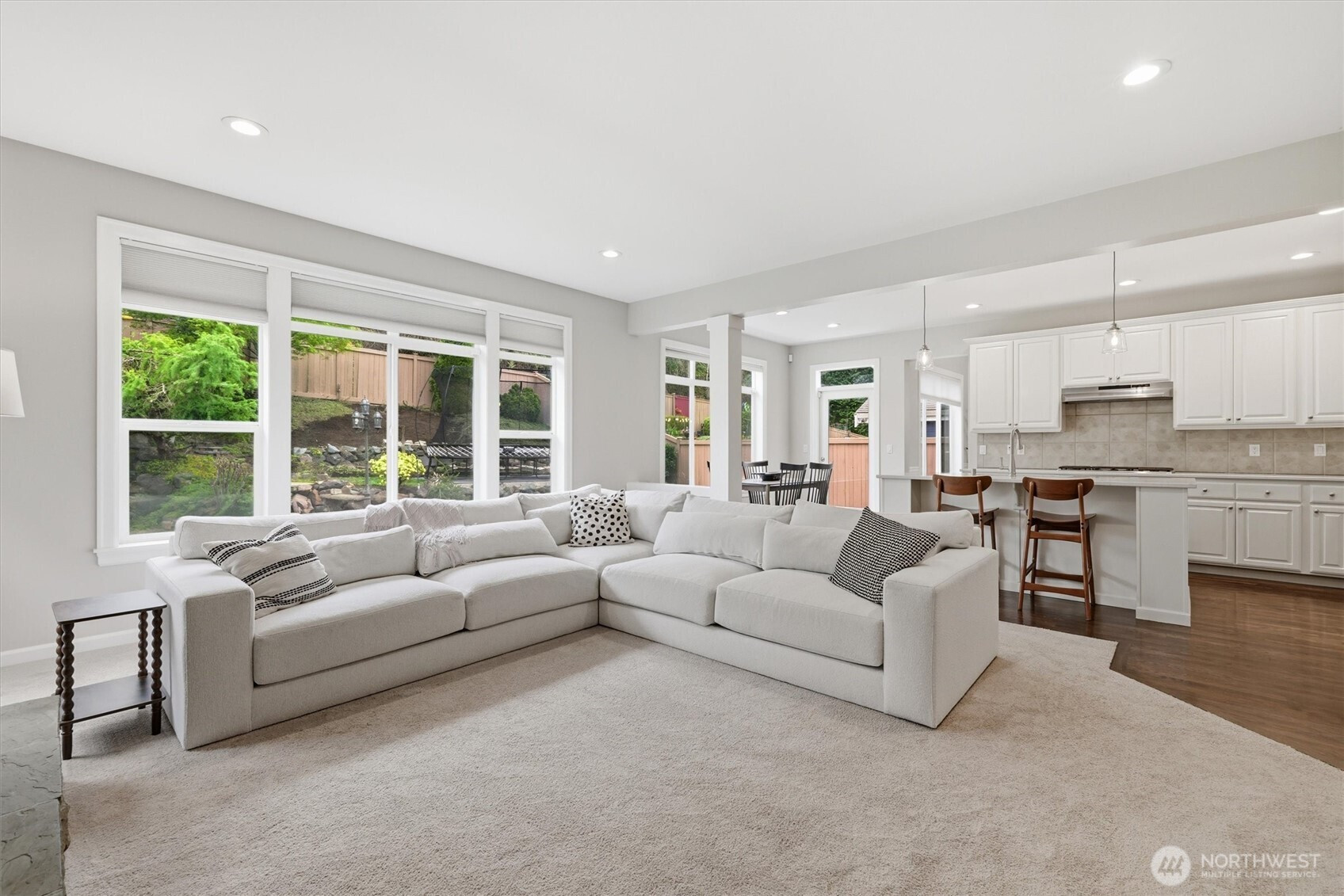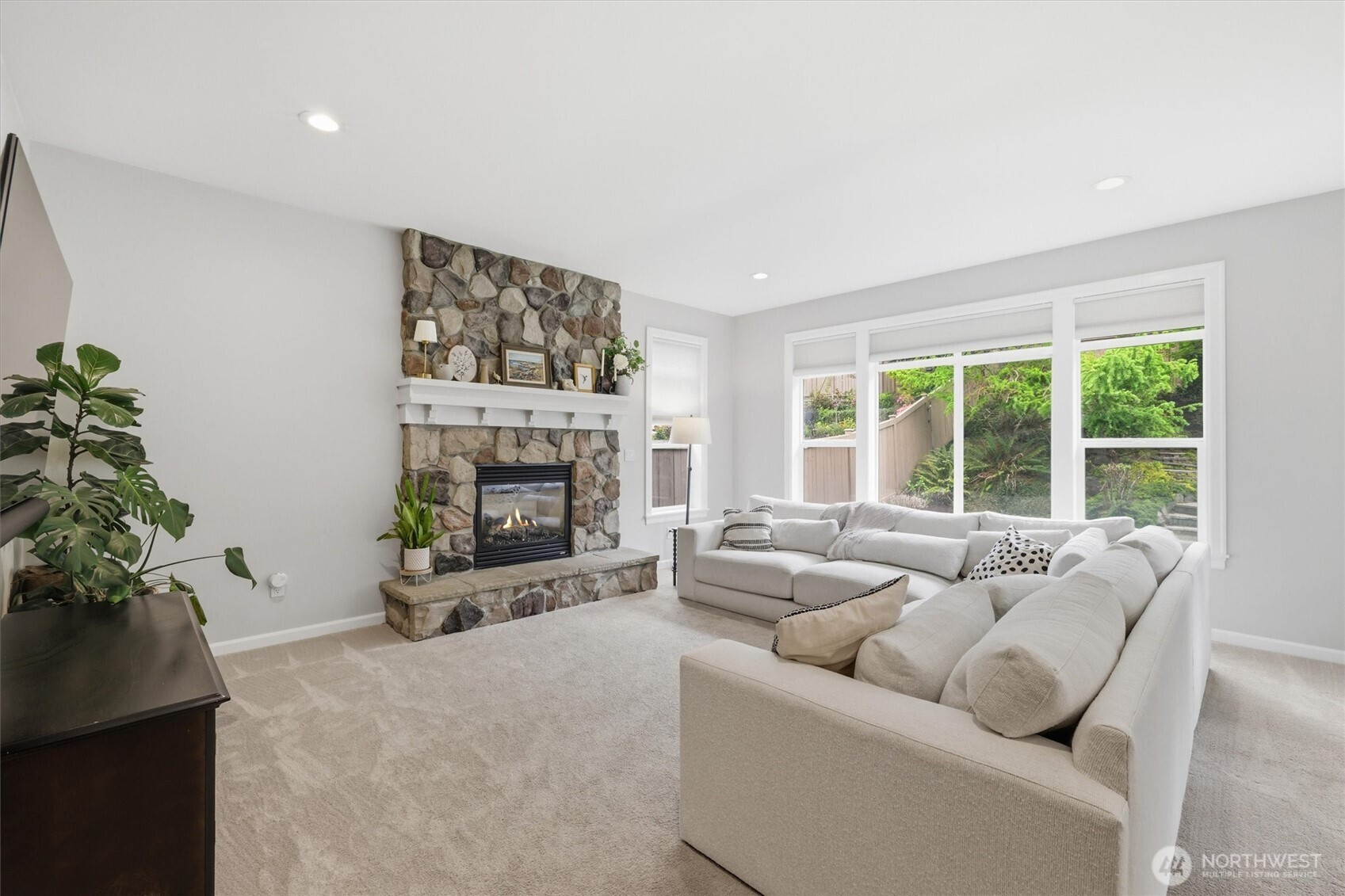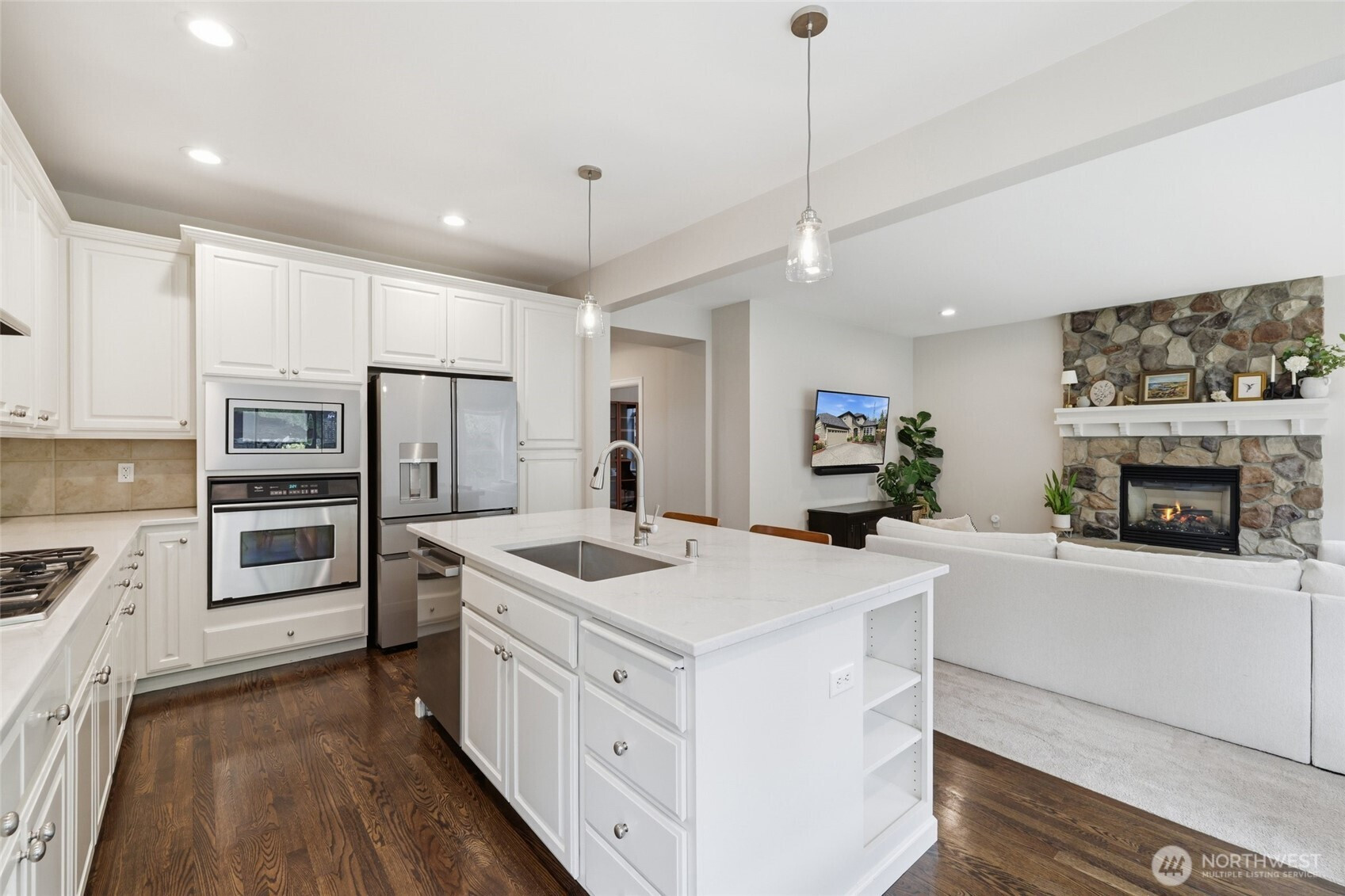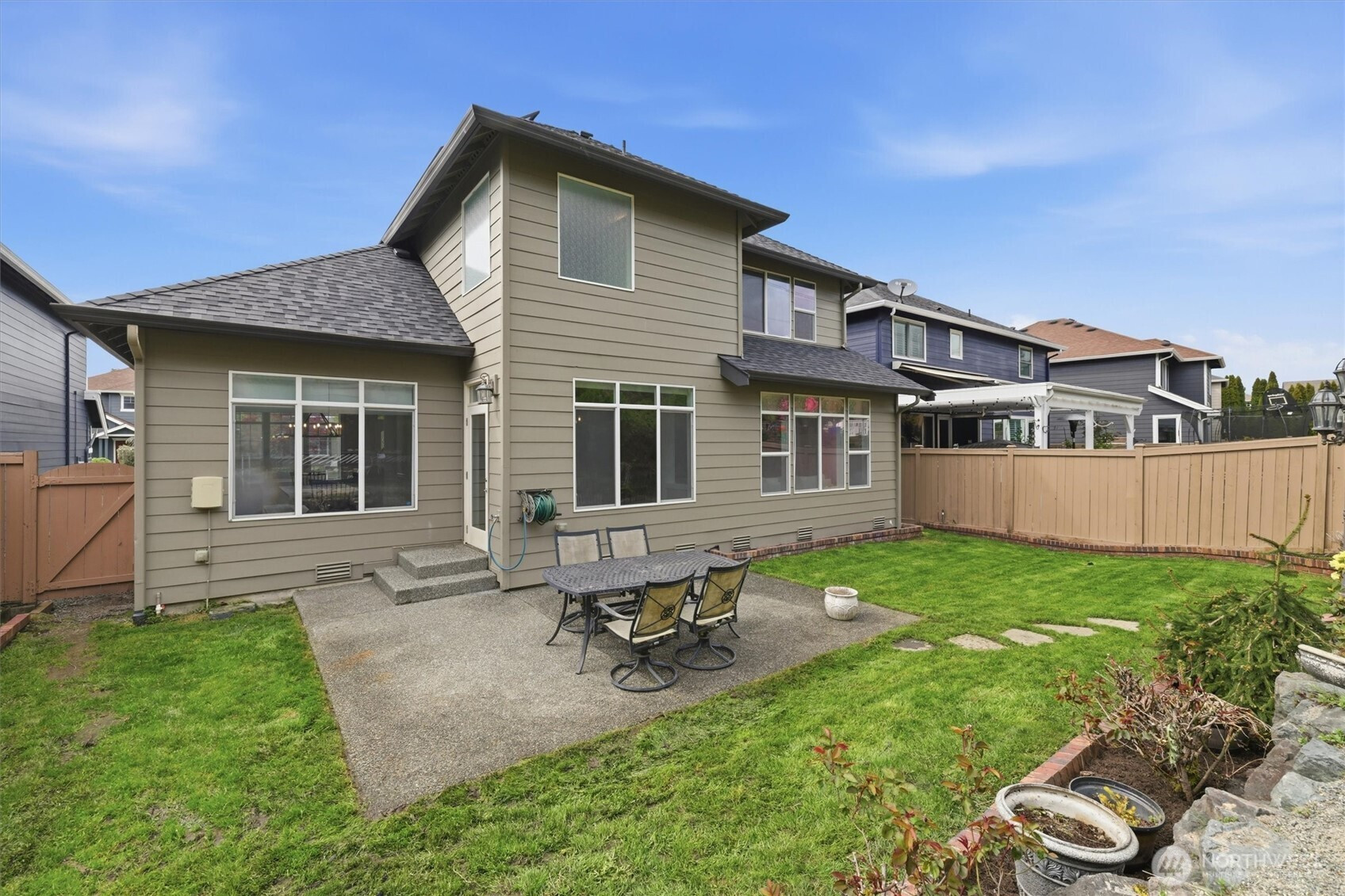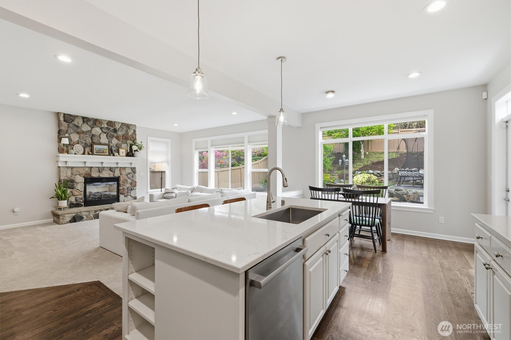 Highly Coveted Crest View Loop charmer! Sits perfectly at the end of the loop providing ample privacy on greenbelt lot. Enter & be greeted w/ rare vaulted ceilings & grand spiral staircase + office on main. Remodeled kitchen flows perfectly for entertaining w/ refinished hardwood floors, SS appliances, new quartz countertops & island w/ seating & storage. Grand wrap around staircase leads you to spacious bedrooms + primary suite w/ custom walk-in closet & 5-piece bath w/ brand new flooring. A/C, updated paint & light fixtures throughout. Greenbelt lot w/ fully-fenced yard + gardening & entertaining space. Additional updates include new solar panels, EV charger in 2-car garage w/ extra storage, new heat pump, Air Scrubber filtration system & furnace + updated roof w/ transferable warranty. Top rated Snoqualmie schools including CVES & Mt. Si HS, community park + walking distance to The Club at Snoqualmie Ridge.