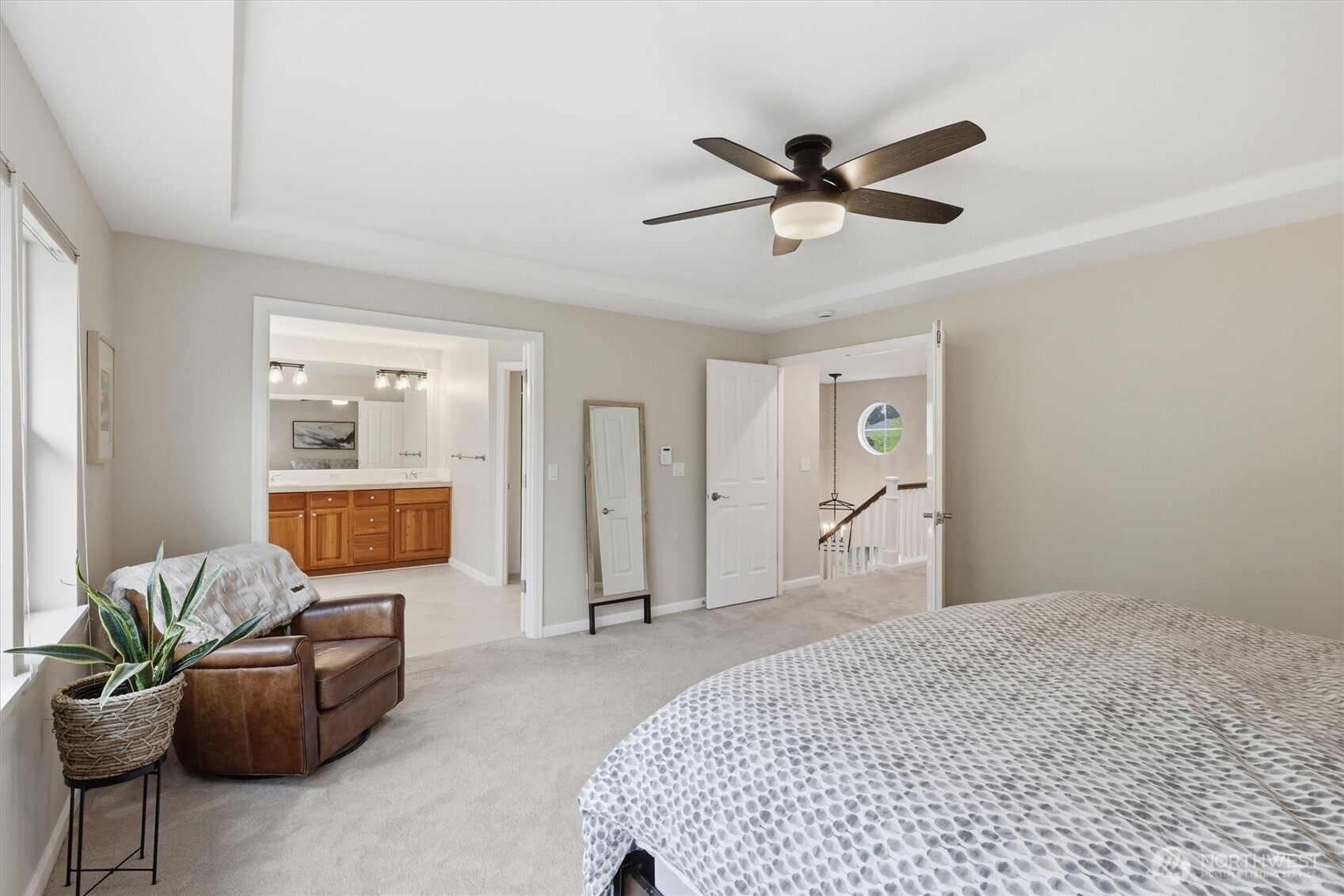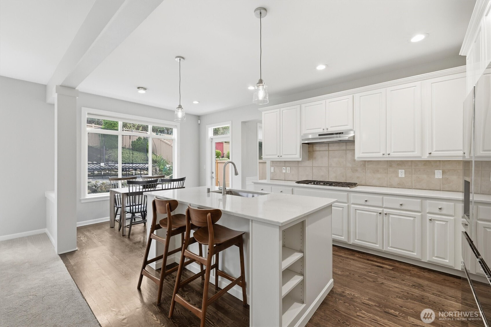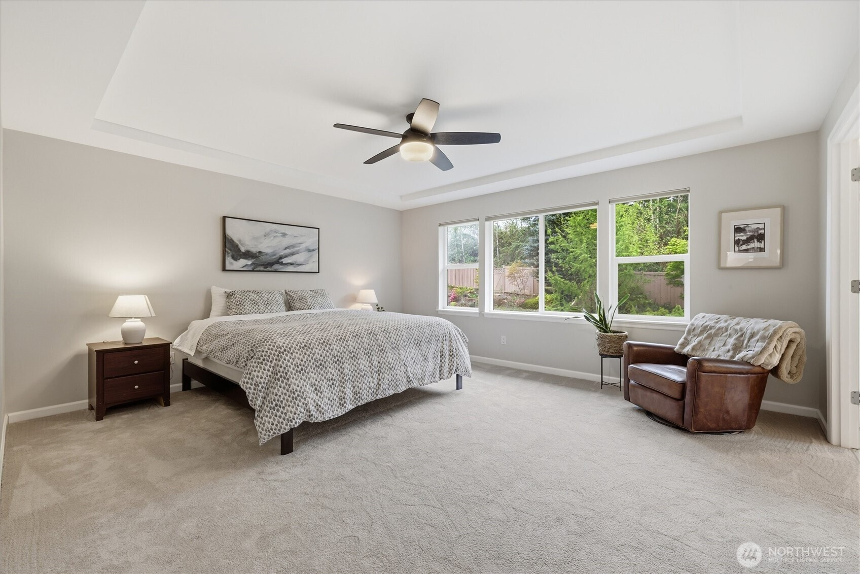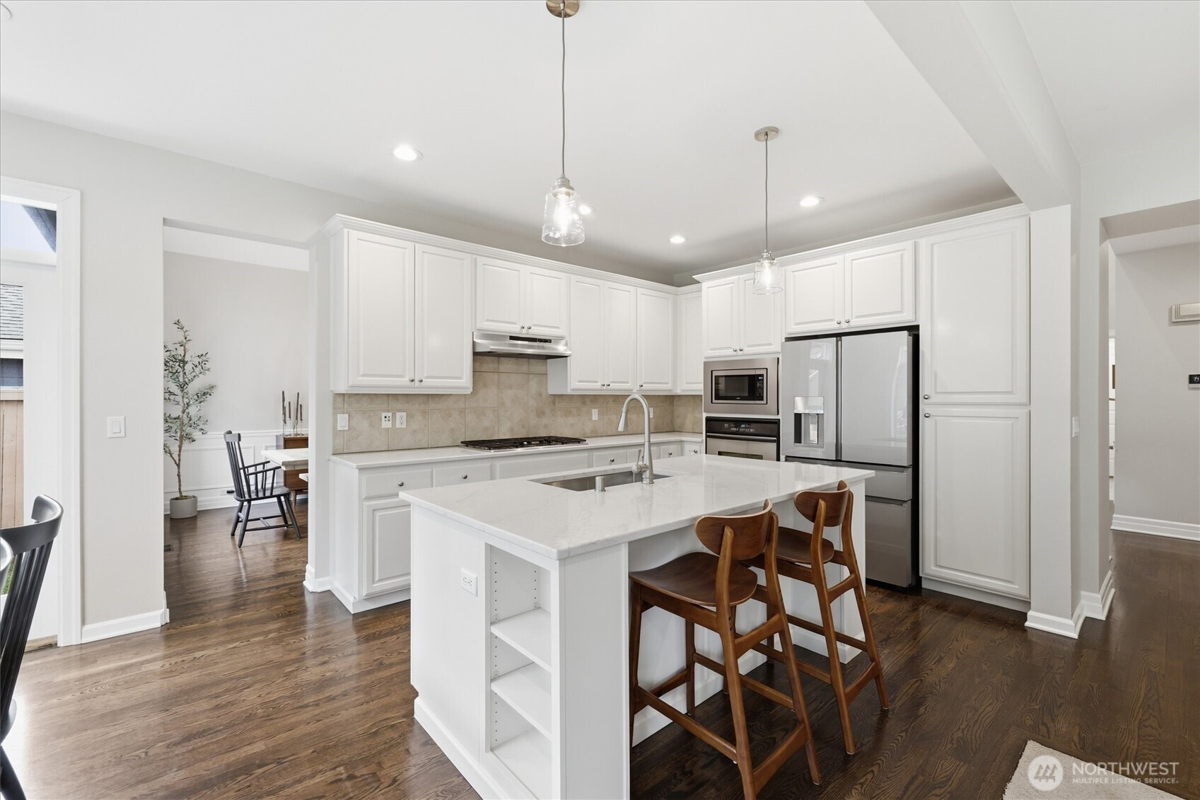 Highly Coveted Crest View Loop charmer! Sits perfectly at the end of the loop providing ample privacy on greenbelt lot. Enter & be greeted w/ rare vaulted ceilings & grand spiral staircase + office on main. Remodeled kitchen flows perfectly for entertaining w/ refinished hardwood floors, SS appliances, new quartz countertops & island w/ seating & storage. Grand wrap around staircase leads you to spacious bedrooms + primary suite w/ custom walk-in closet & 5-piece bath w/ brand new flooring. A/C, updated paint & light fixtures throughout. Greenbelt lot w/ fully-fenced yard + gardening & entertaining space. Additional updates include new solar panels, EV charger in 2-car garage w/ extra storage, new heat pump, Air Scrubber filtration system & furnace + updated roof w/ transferable warranty. Top rated Snoqualmie schools including CVES & Mt. Si HS, community park + walking distance to The Club at Snoqualmie Ridge.