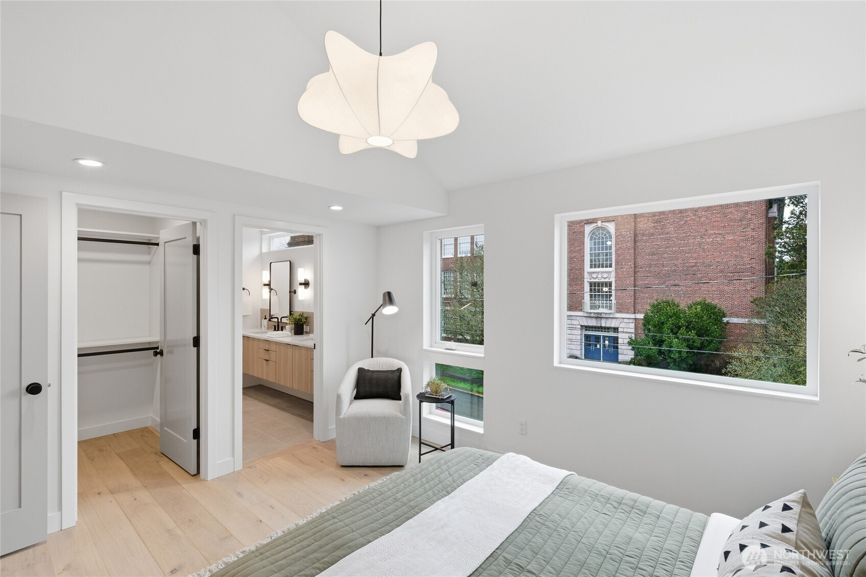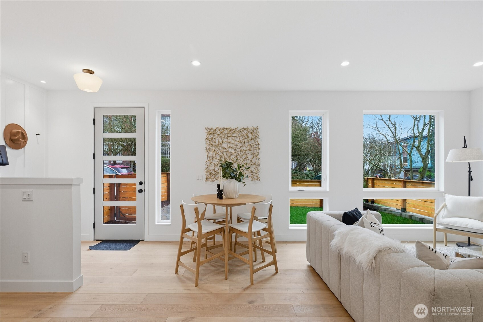Final home with this floor plan remaining! New construction Ballard home with exceptional street presence and thoughtful design throughout. A spacious front yard enhances curb appeal and provides a welcoming entry. Soaring ceilings and large windows bathe every room in natural light, creating an open and inviting atmosphere. The 3-bedroom, 2-bath layout offers versatile living spaces perfect for those who work from home. Premium finishes include Bellmont cabinets, engineered hardwood throughout—no carpet—and heated floors in both bathrooms for year-round comfort. Mini-split A/C in every room ensures climate control through Seattle's warmer months. The primary bathroom features motion sensor lights and a dedicated bidet outlet for added convenience. Walk to NW 65th eateries and Downtown Ballard's vibrant shops and restaurants with an impressive 88 Walk Score and 95 Bike Score. Quick access to Golden Gardens Park and 15th/99 makes SLU/Downtown commutes a breeze. Top-ranked schools nearby!