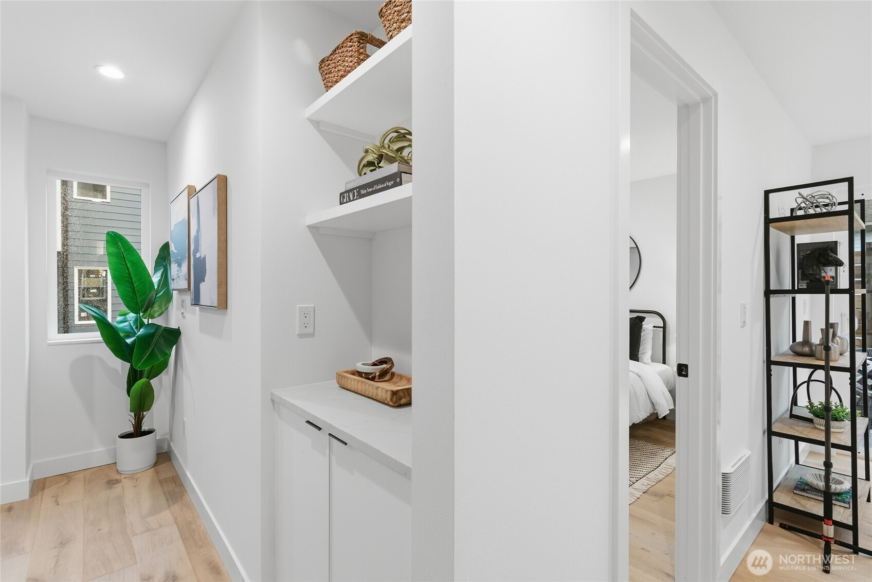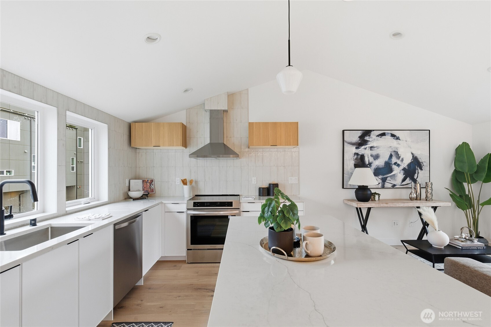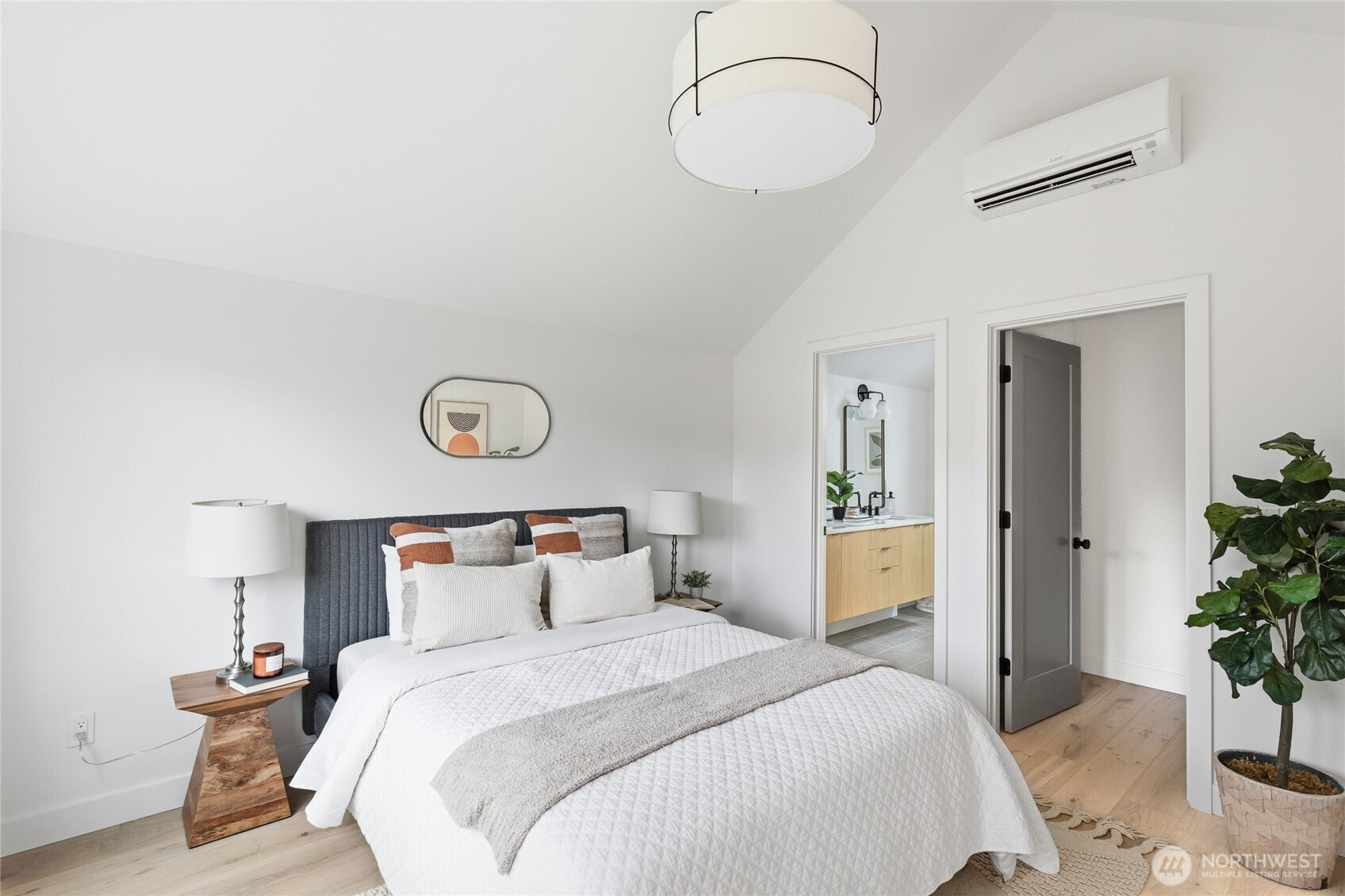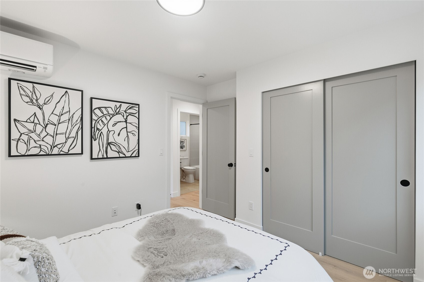 Sophisticated Ballard detached cottage offering 1,057sf of thoughtfully designed living space plus a heated 208sf garage/flex room. This 2-bedroom, 2-bath home features a dedicated office—ideal for remote work or creative pursuits. Soaring ceilings and generous windows flood the interior with natural light, while premium finishes elevate everyday living. Enjoy Bellmont cabinets, engineered hardwood throughout (no carpet), and heated floors in both bathrooms. Mini-split A/C in every room provides year-round comfort. The primary bathroom includes motion sensor lights and a dedicated bidet outlet for modern convenience. The heated garage offers flexible space for parking, storage, or a hobby room. Private backyard retreat with easy access to NW 65th dining and Downtown Ballard—88 Walk Score and 95 Bike Score. Quick routes to Golden Gardens and 15th/99 for SLU/Downtown commutes. Top-ranked schools!