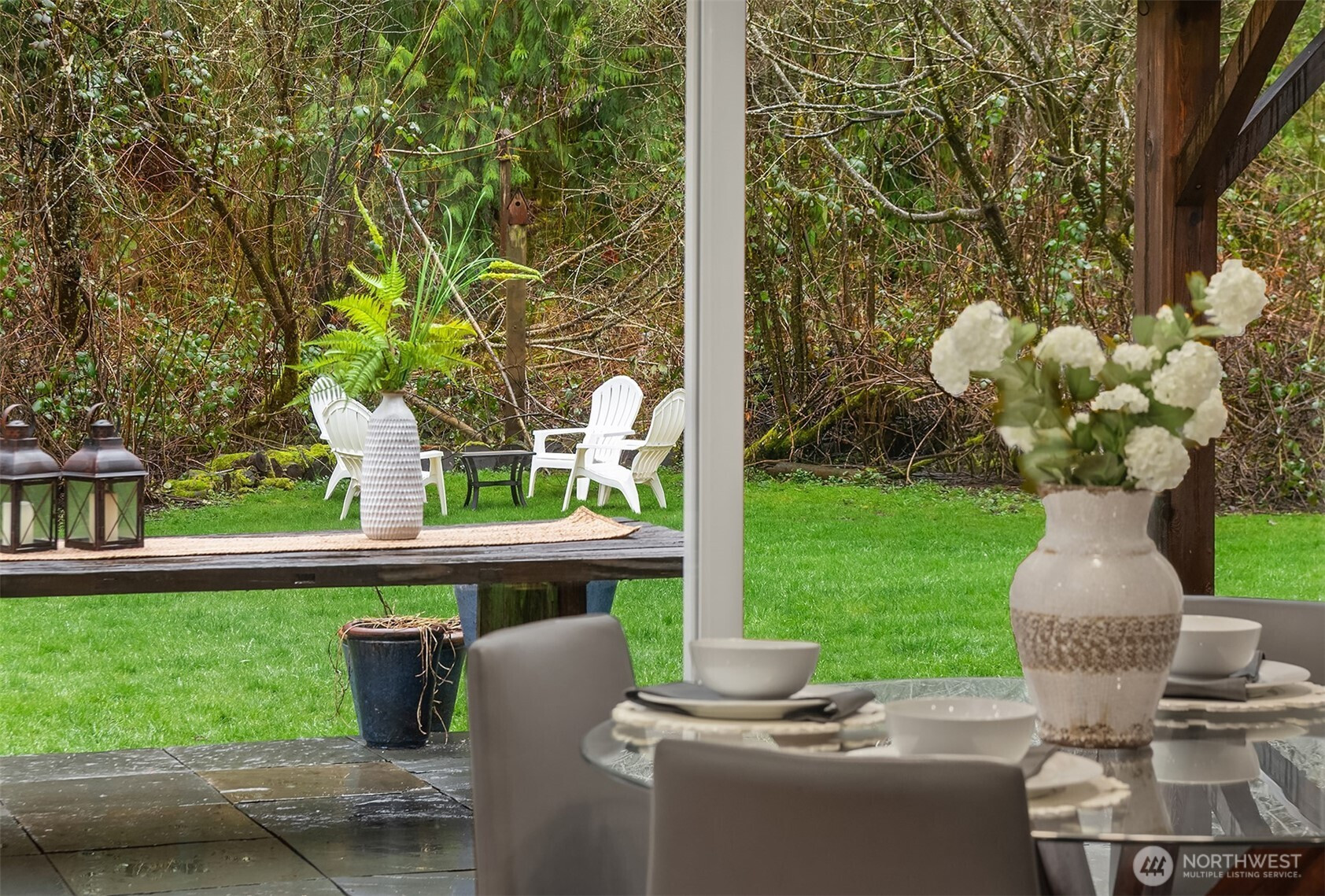 Nestled in a quiet, peaceful setting with easy access—just a short 5-minute drive to Carnation for shopping, dining, parks and trails; this home offers exceptional outdoor enjoyment and privacy. The back patio and pergola create ideal spaces for dining and entertaining, while the covered front porch captures morning sun. The beautifully landscaped yard includes a soothing stream, mature pond, and lush fenced garden areas. A showpiece Kwanzan cherry tree explodes in pink blossoms each spring. This classic 2-story Farmhouse is complemented by colorful planter boxes with seasonal blooms that enhance curb appeal. Indoors, you'll enjoy lovely spaces to unwind including a living and family room, office, bonus room and cozy sitting area. The functional and elegant kitchen features high-quality granite countertops, stainless appliances, lots of cabinet storage and rich walnut hardwood floors. An upstairs entertaining-size bonus room provides ample space for large gatherings, don't miss the "hidden" storage tucked beside the dormer windows. Practical highlights include a brand new roof, carpet and paint, plus a roomy three-car garage and additional outbuildings. Wildlife thrives nearby, with frequent sightings of birds, squirrels, owls, and eagles. There is a large fenced "Safe-Haven" for your cats and dogs! Explore peaceful forest trails meandering through the backyard trees. A true private retreat blending natural beauty and thoughtful design.