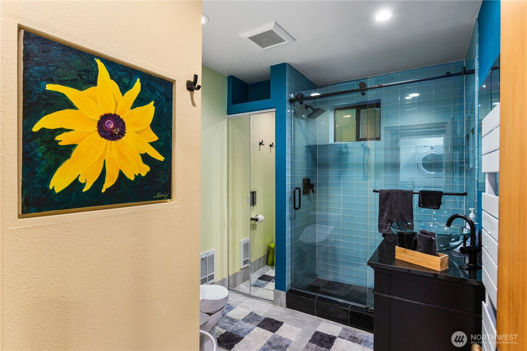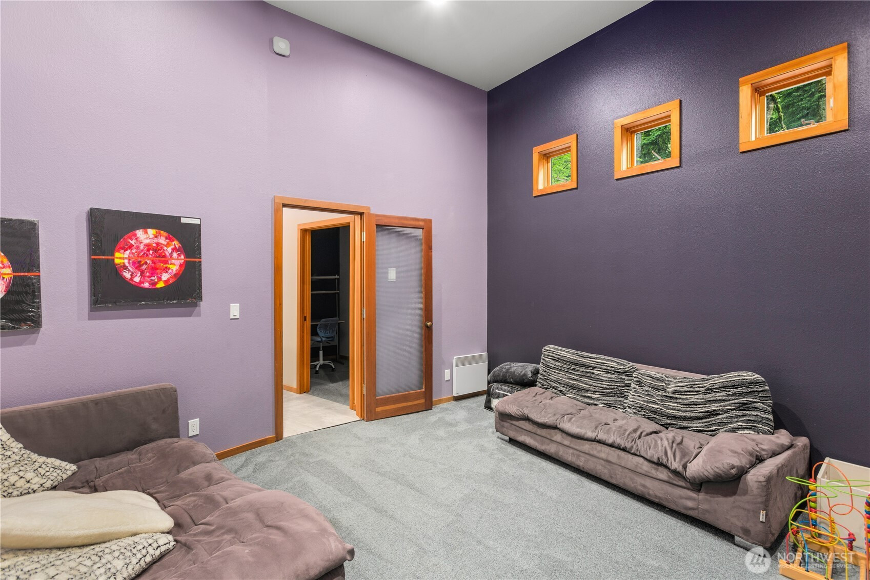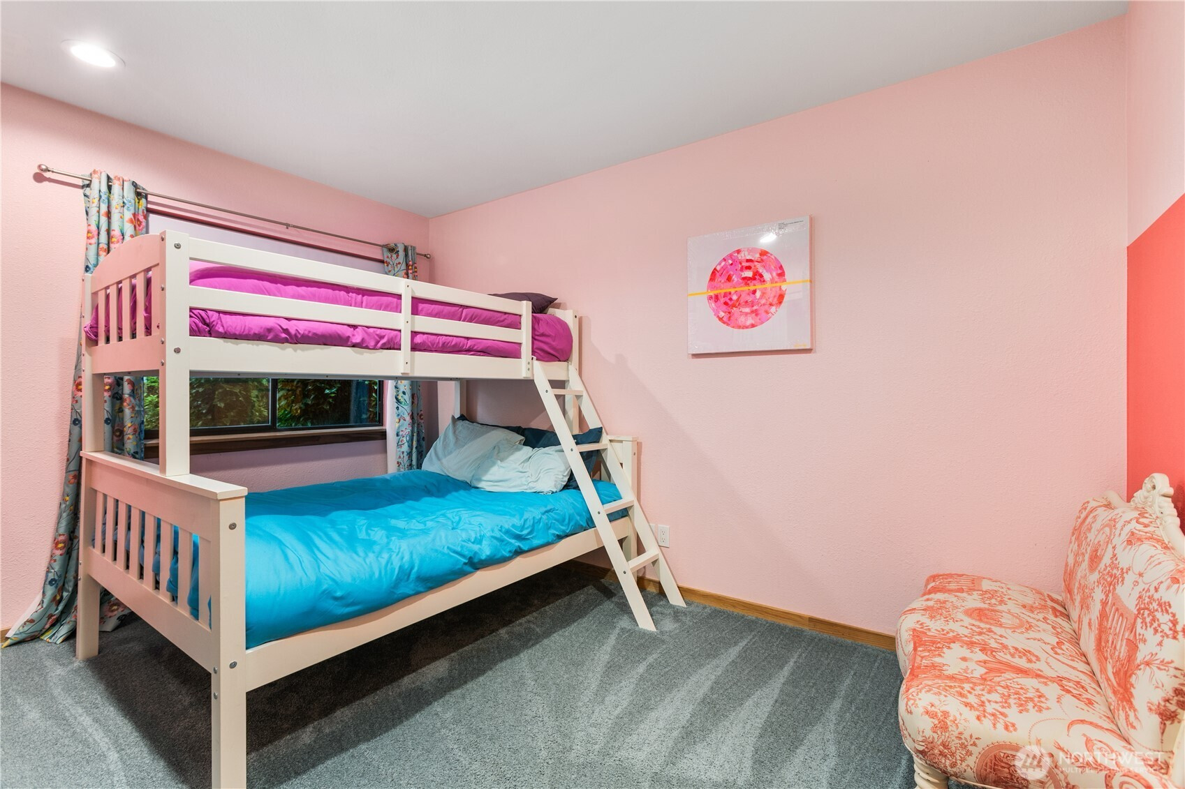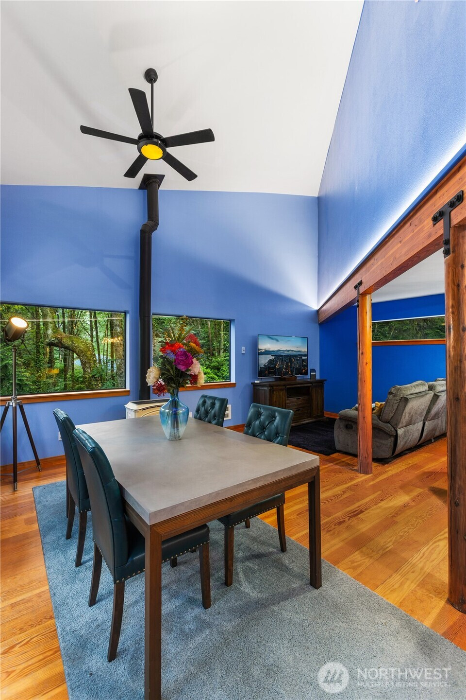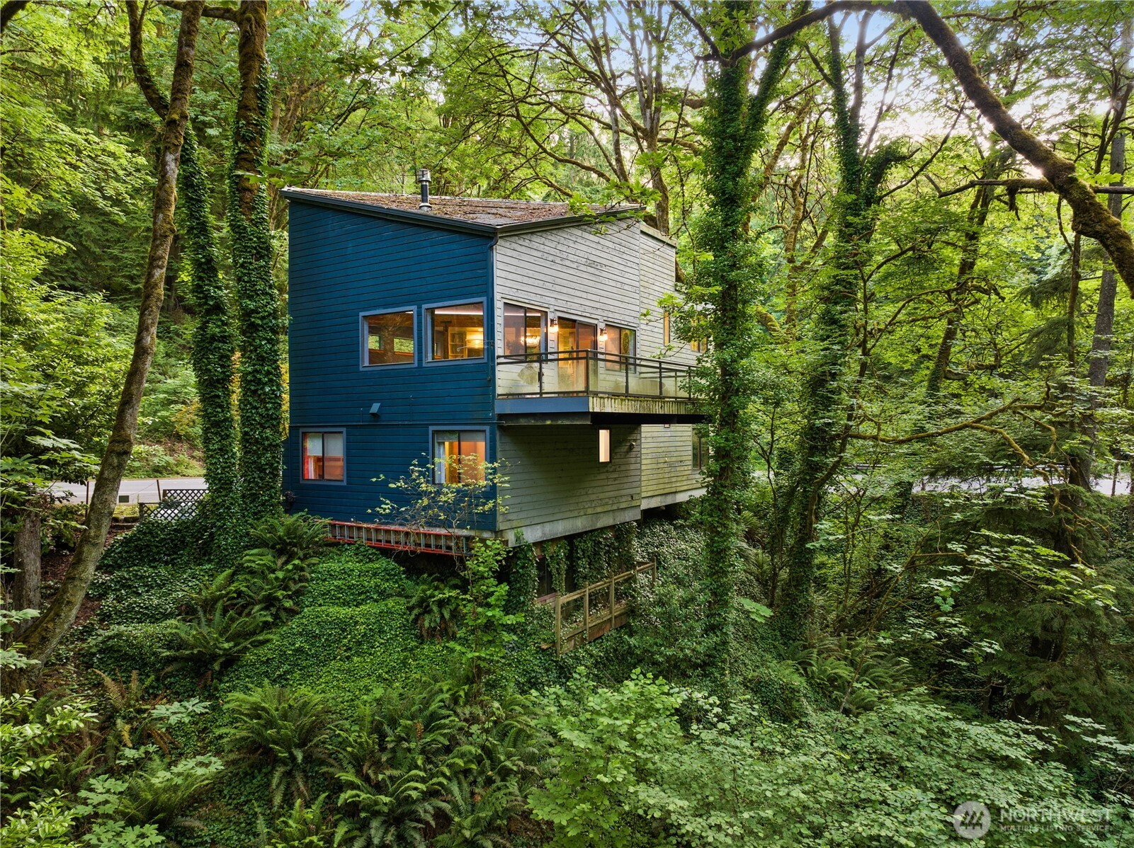 This NW Contemporary home offers a serene, nature-filled setting with views of a winding creek and no visible neighbors. Your private Mercer Island treehouse sanctuary is waiting! Architecturally striking, this home features a new roof, carpet, paint, windows, and electrical, along with a fully remodeled kitchen, soaring ceilings, and expansive windows that bring the outdoors in. The open-concept family and dining areas seamlessly flow to a new deck. A warm, wood staircase leads to the spacious primary suite, complete with a lofted workout area and a luxurious bath. The ground level includes a living room, office, and two additional bedrooms. Peaceful atmosphere with private trails, & easy access to the South End shopping center.