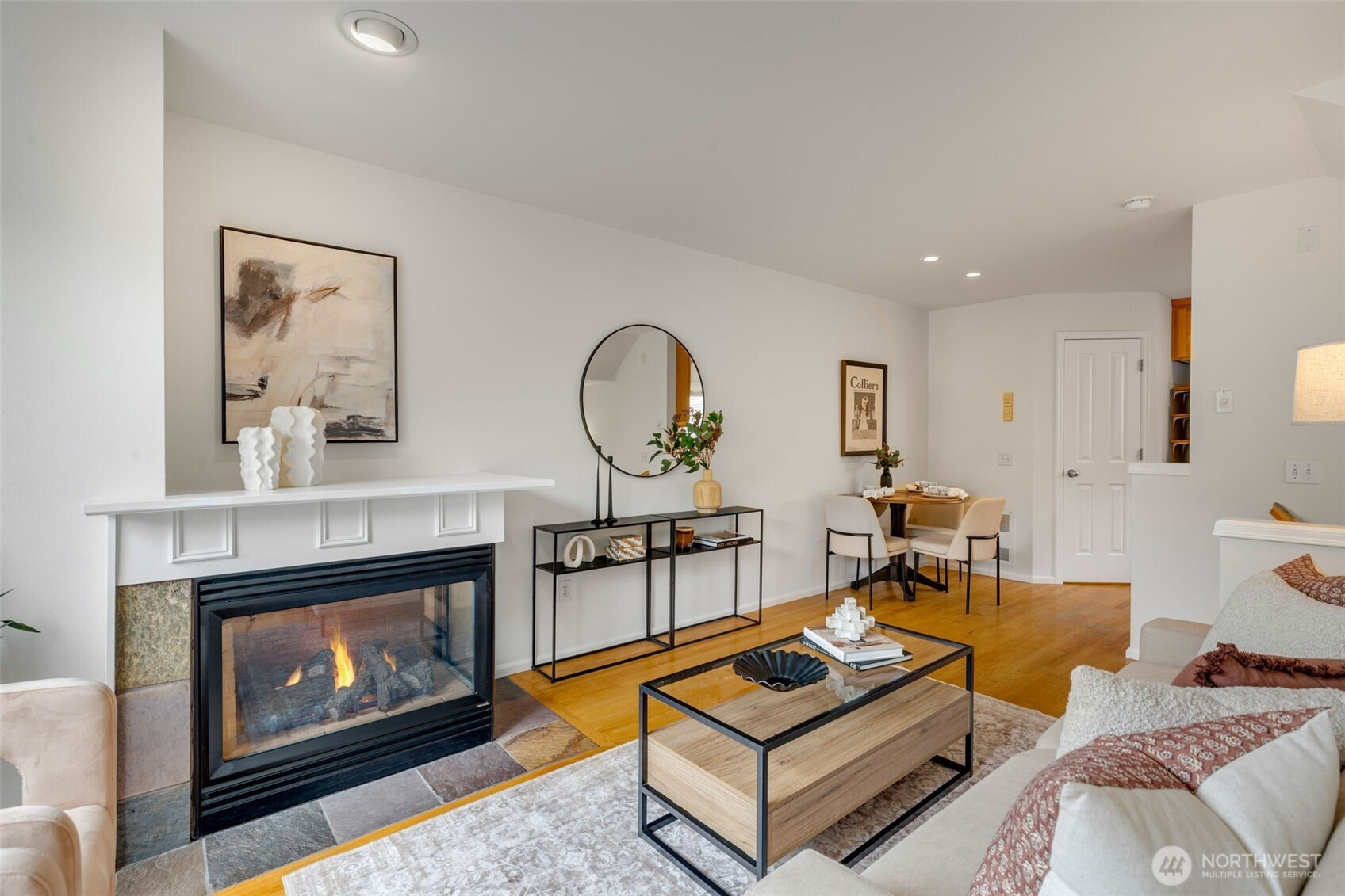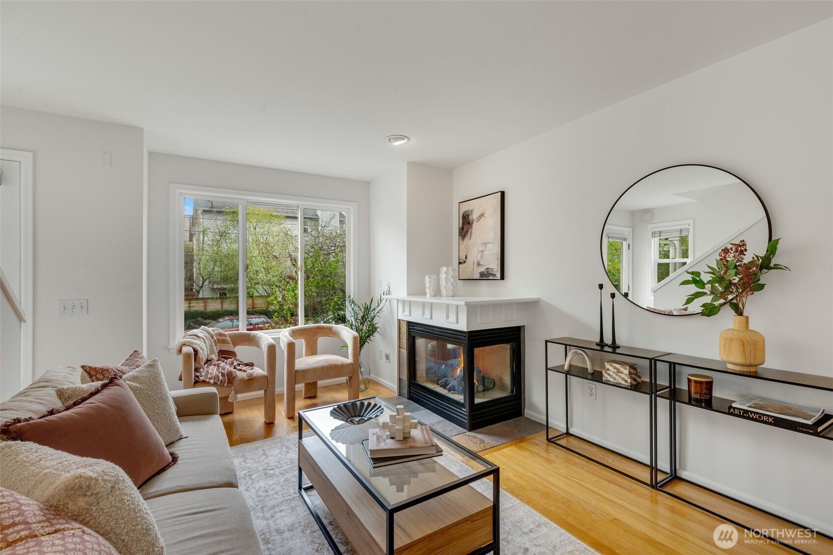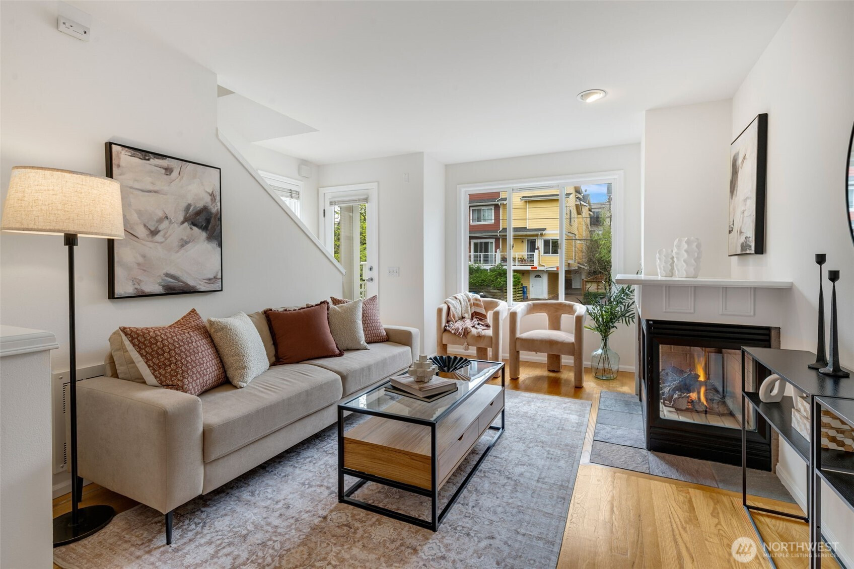 This immaculately maintained Craftsman townhouse invites you in with warmth and comfort. Pristine and tidy, the living spaces of this end-unit sit off the ground level for privacy and the interior details elevate everyday living – real hardwoods, gas stove and gas fireplace, open kitchen with stainless steel appliances, charming balcony, crown molding, jetted tub, vaulted ceilings and walk in closets all anchored by an elegant neutral color palette with new paint and new carpet throughout. Completely turnkey, large ticket items like new water heater and new roof have been taken care of for the next owner. And you’ll love the high value commodity of the 1 car garage that you can actually park in! Green Lake's natural beauty and urban amenities are your gateway to a vibrant life filled with unique shops, cool cafes and restaurants and is a central destination for wellness enthusiasts! Enjoy the 2.8 mile path around the lake by foot or wheels, play pickle ball or swim at the community center, explore the sports fields & 3 hole Pitch and Putt & the Green Lake Community Boat House! Just minutes to the Roosevelt Light Rail Station, PCC & University District. This location is outstanding. Life here is measured in more than sq. feet, it is the backdrop to a thriving lifestyle.
