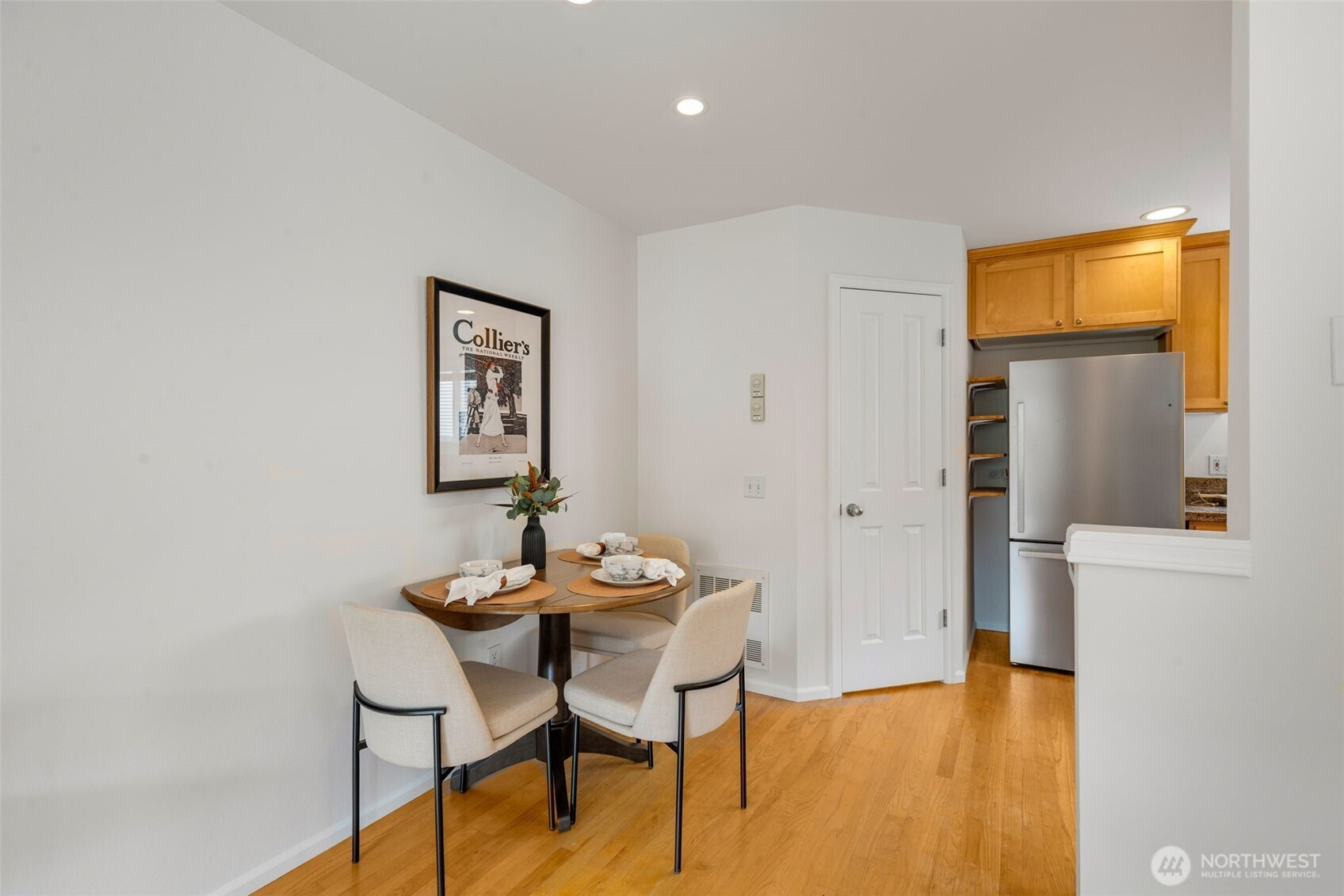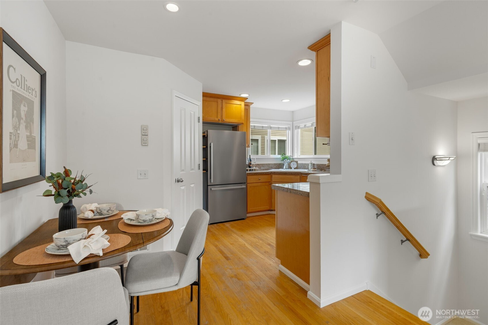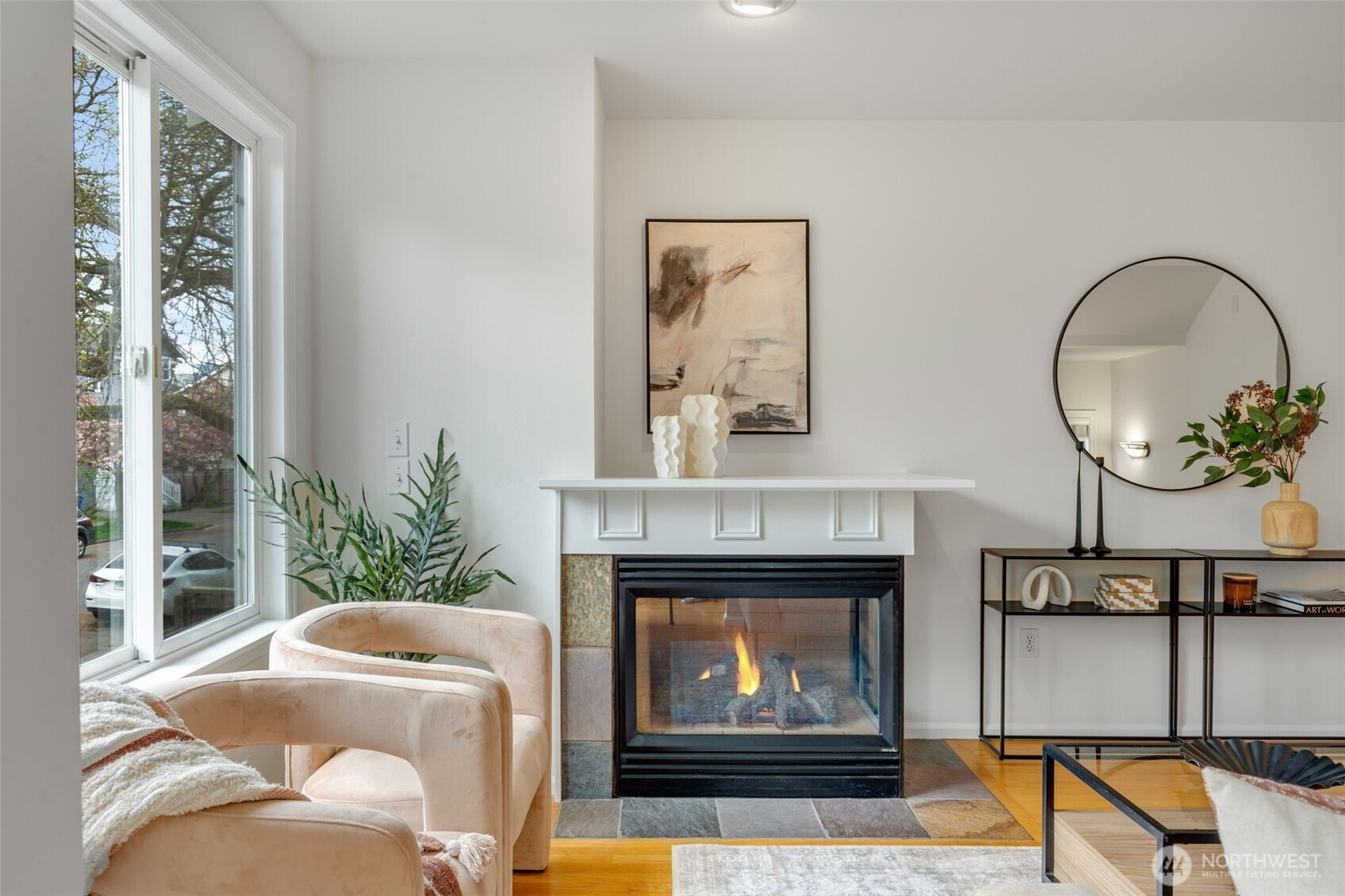 This immaculately maintained Craftsman townhouse invites you in with warmth and comfort. Pristine and tidy, the living spaces of this end-unit sit off the ground level for privacy and the interior details elevate everyday living – real hardwoods, gas stove and gas fireplace, open kitchen with stainless steel appliances, charming balcony, crown molding, jetted tub, vaulted ceilings and walk in closets all anchored by an elegant neutral color palette with new paint and new carpet throughout. Completely turnkey, large ticket items like new water heater and new roof have been taken care of for the next owner. And you’ll love the high value commodity of the 1 car garage that you can actually park in! Green Lake's natural beauty and urban amenities are your gateway to a vibrant life filled with unique shops, cool cafes and restaurants and is a central destination for wellness enthusiasts! Enjoy the 2.8 mile path around the lake by foot or wheels, play pickle ball or swim at the community center, explore the sports fields & 3 hole Pitch and Putt & the Green Lake Community Boat House! Just minutes to the Roosevelt Light Rail Station, PCC & University District. This location is outstanding. Life here is measured in more than sq. feet, it is the backdrop to a thriving lifestyle.