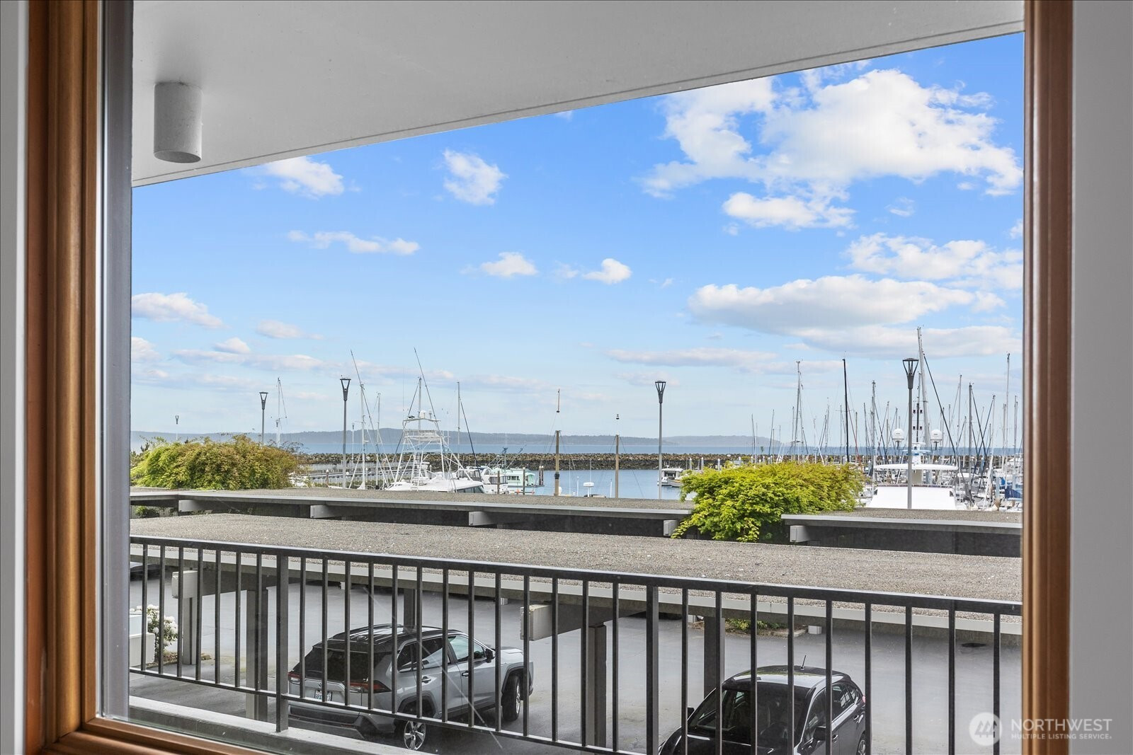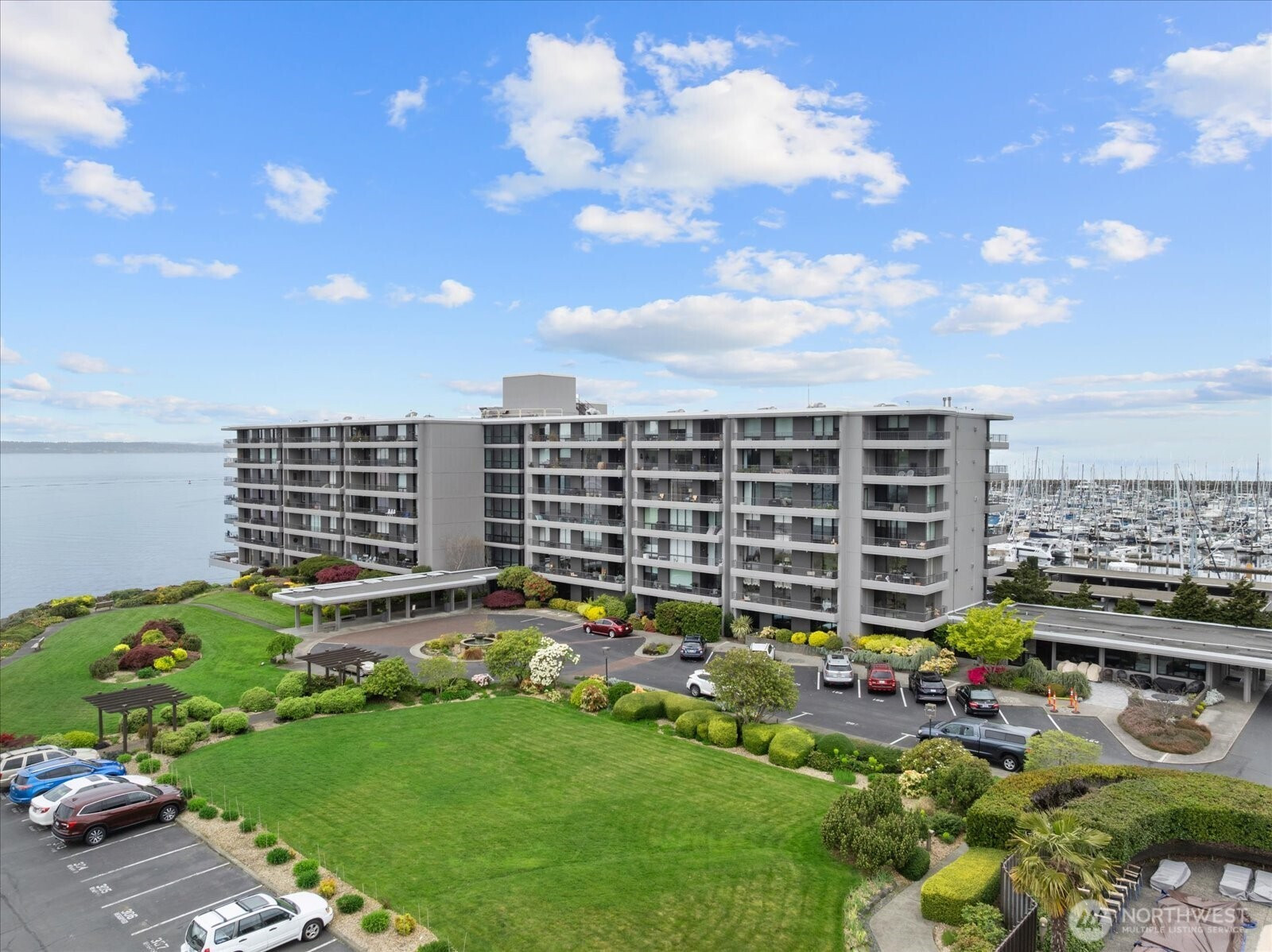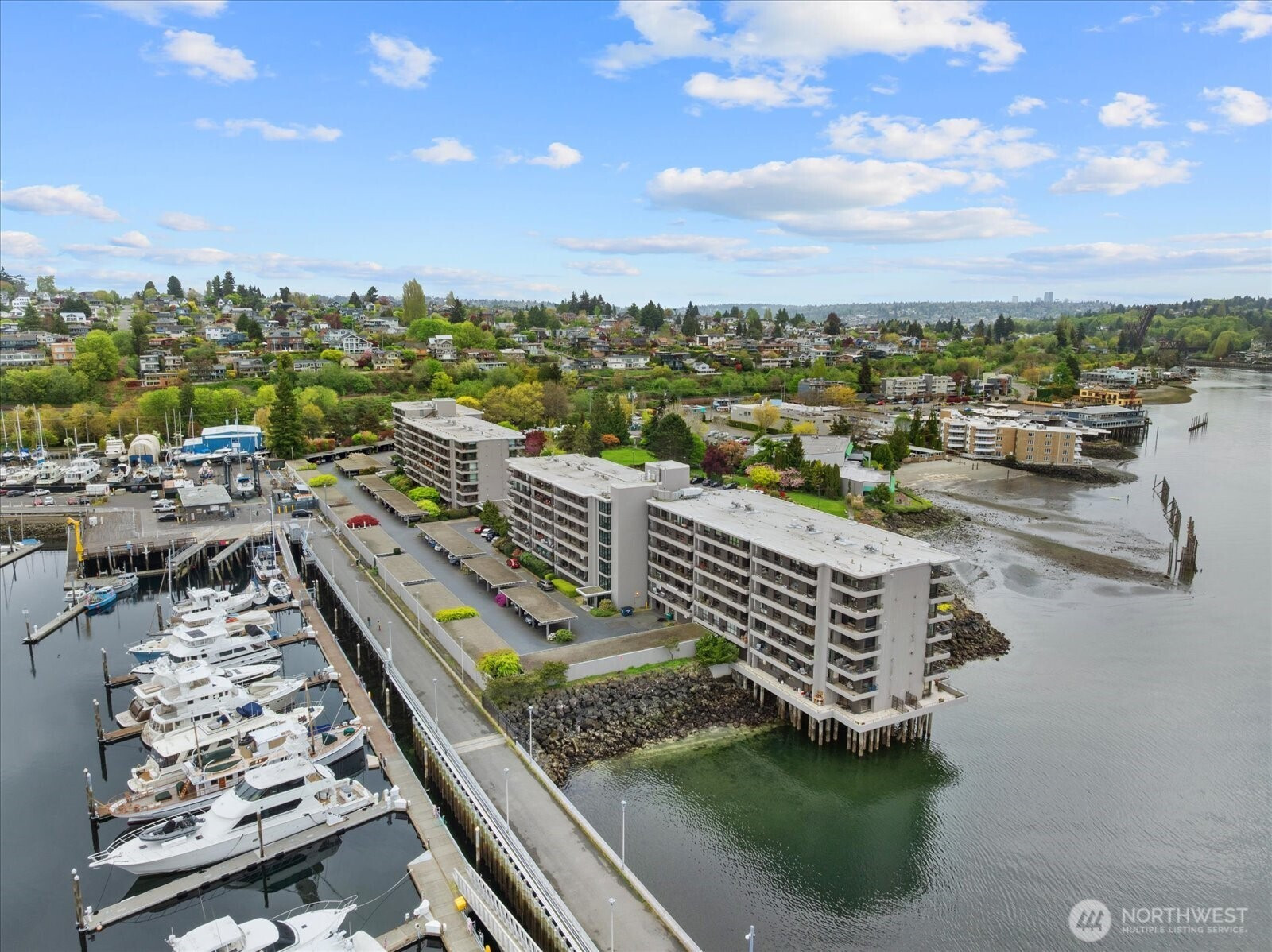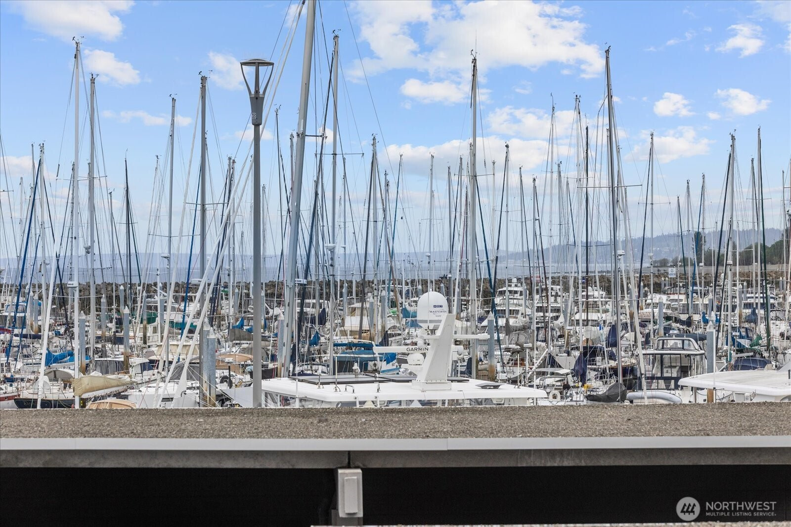 Experience true waterfront living at Sunset West, where panoramic views of Shilshole Marina and Puget Sound take center stage—sailboats gliding across the water while a sea of masts sways in rhythm with the breeze all set against the ever-changing silhouette of the Olympic Mountains. This light-filled home offers a spacious, open-concept layout with floor-to-ceiling windows that allow for unforgettable sunsets. A gorgeous chef’s kitchen featuring quartz countertops, custom fir cabinetry, and seamless flow to the dining area and private deck—ideal for outdoor dining, relaxing, or personalizing your own garden escape. Quartz surfaces continue into the baths, complemented by rich fir millwork for a warm, refined finish. Resort-style amenities span 11 acres of beautifully maintained grounds. Enjoy a waterfront pool and spa, sauna, fitness center, library, social and game rooms, big-screen TV lounge, expansive hobby shop with rentable workspace and lockers, children’s play area, and direct marina access. Additional features include secure entry, 24-hour security, EV charging, RV/boat parking, extra storage options, assigned parking space #167, car wash area and dedicated storage. Ideally located near Golden Gardens Beach Park, the Burke-Gilman Trail, and vibrant downtown Ballard’s dining, shopping, and entertainment. This is waterfront living, redefined.