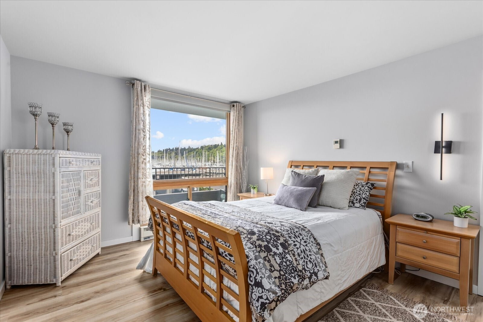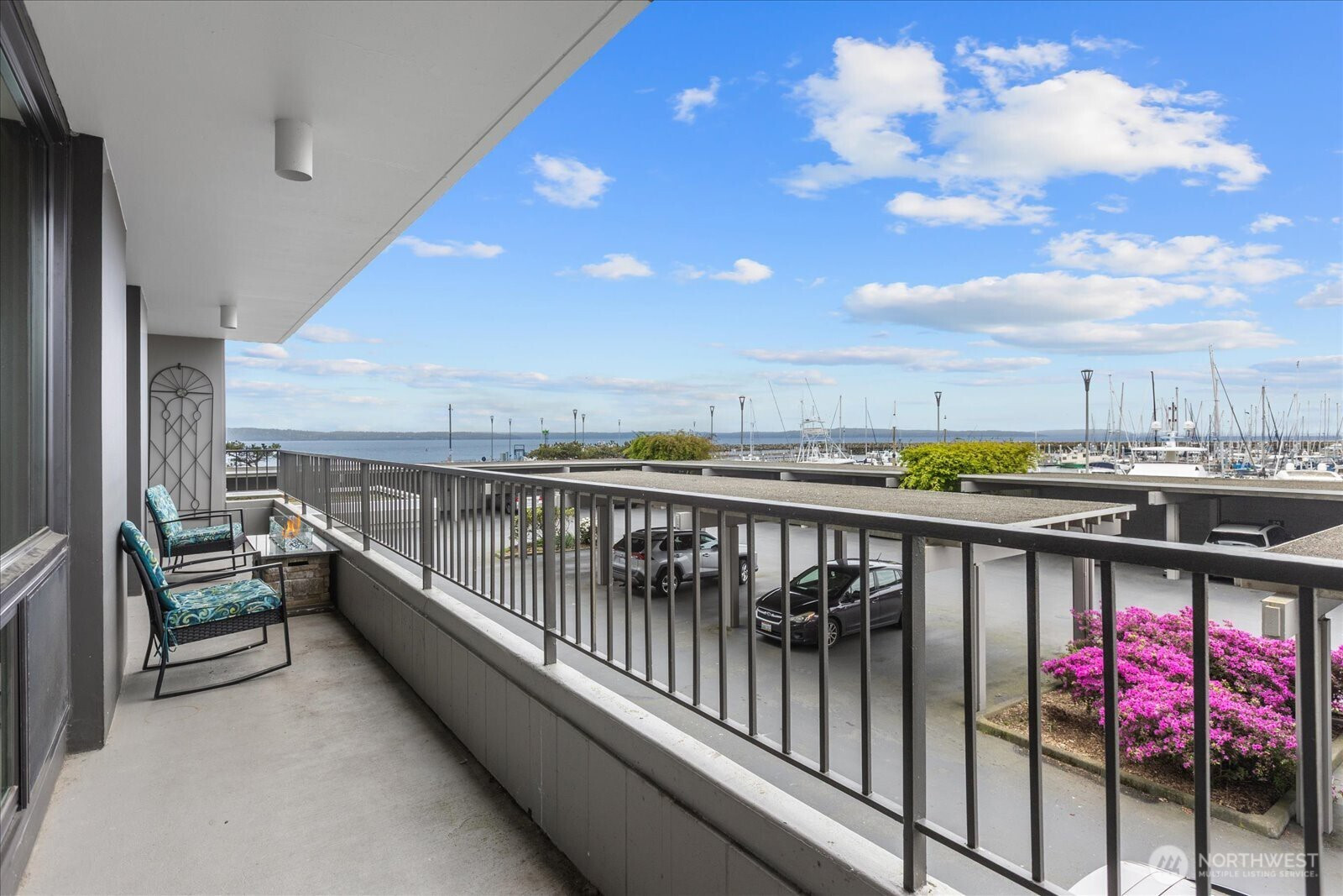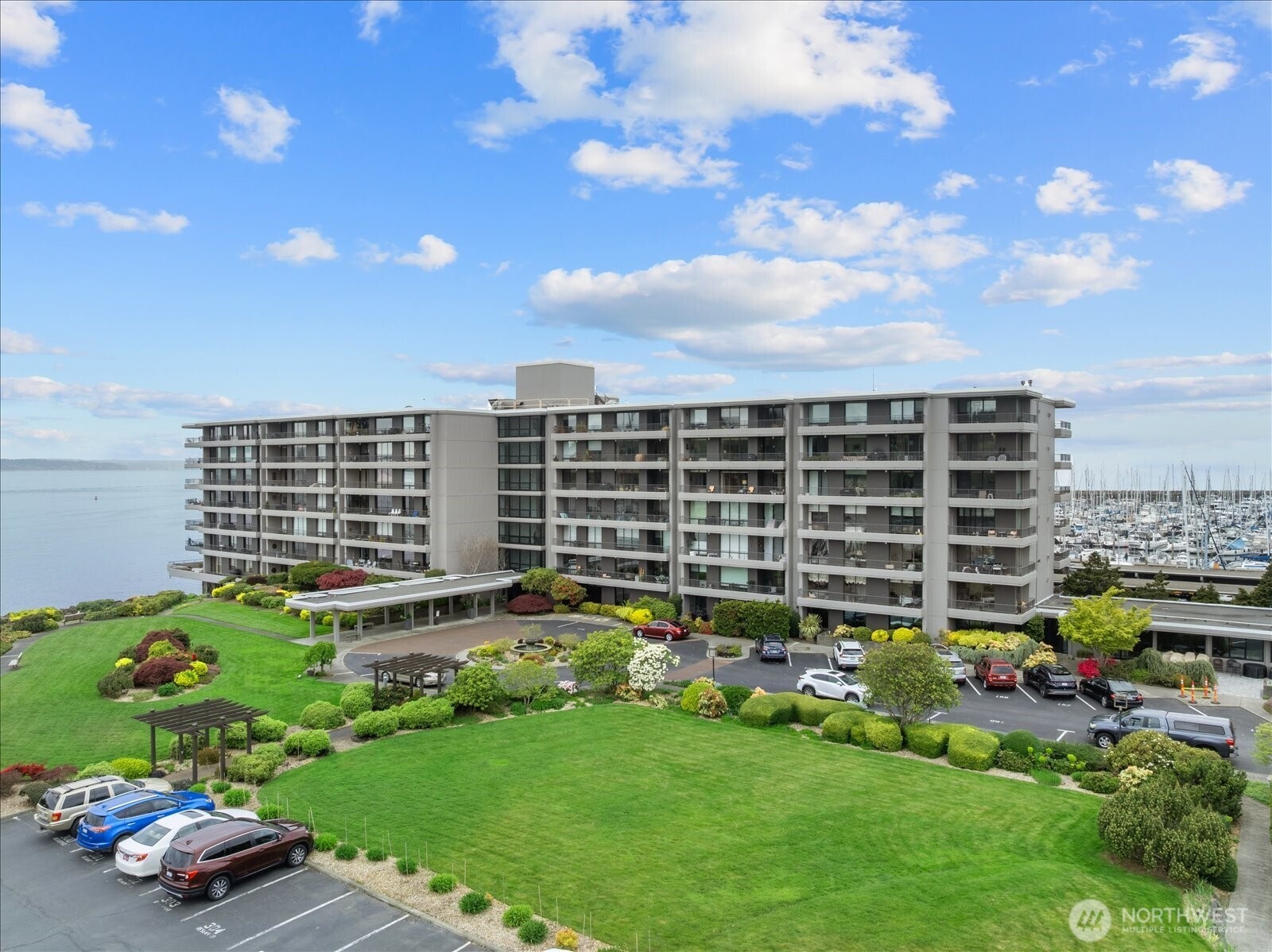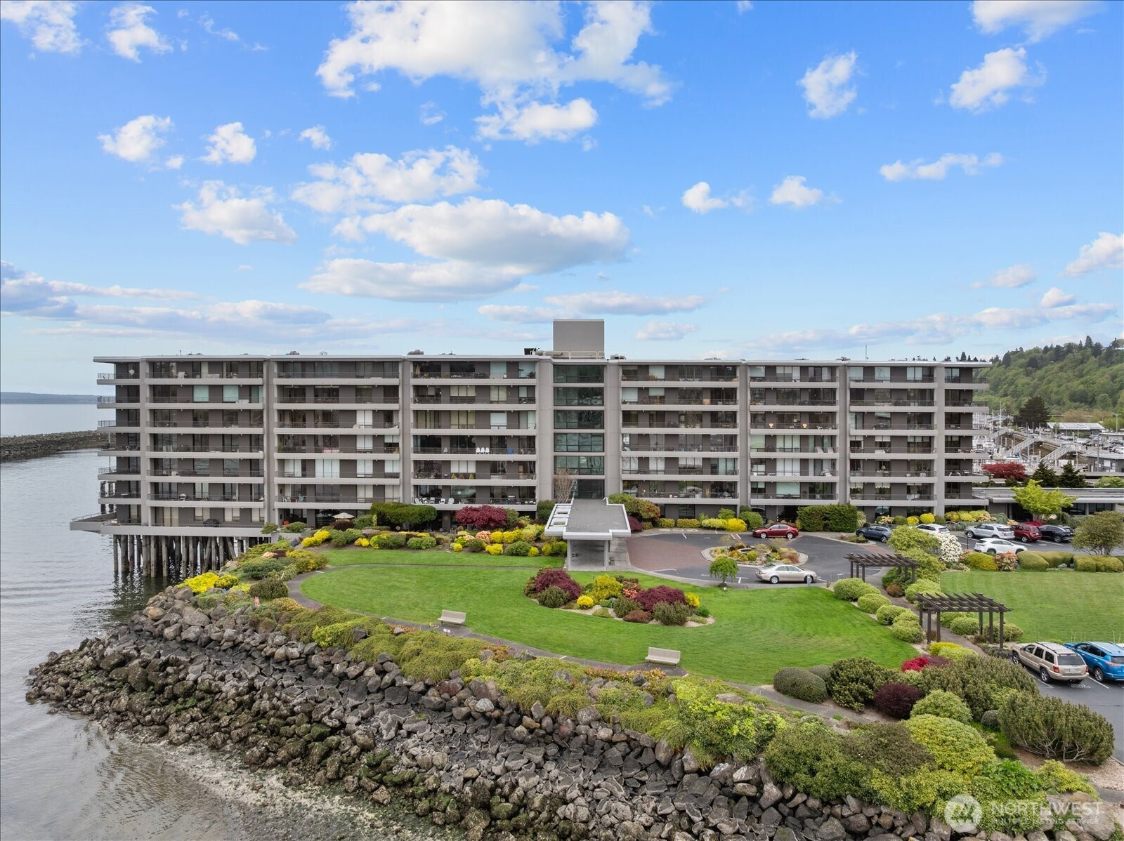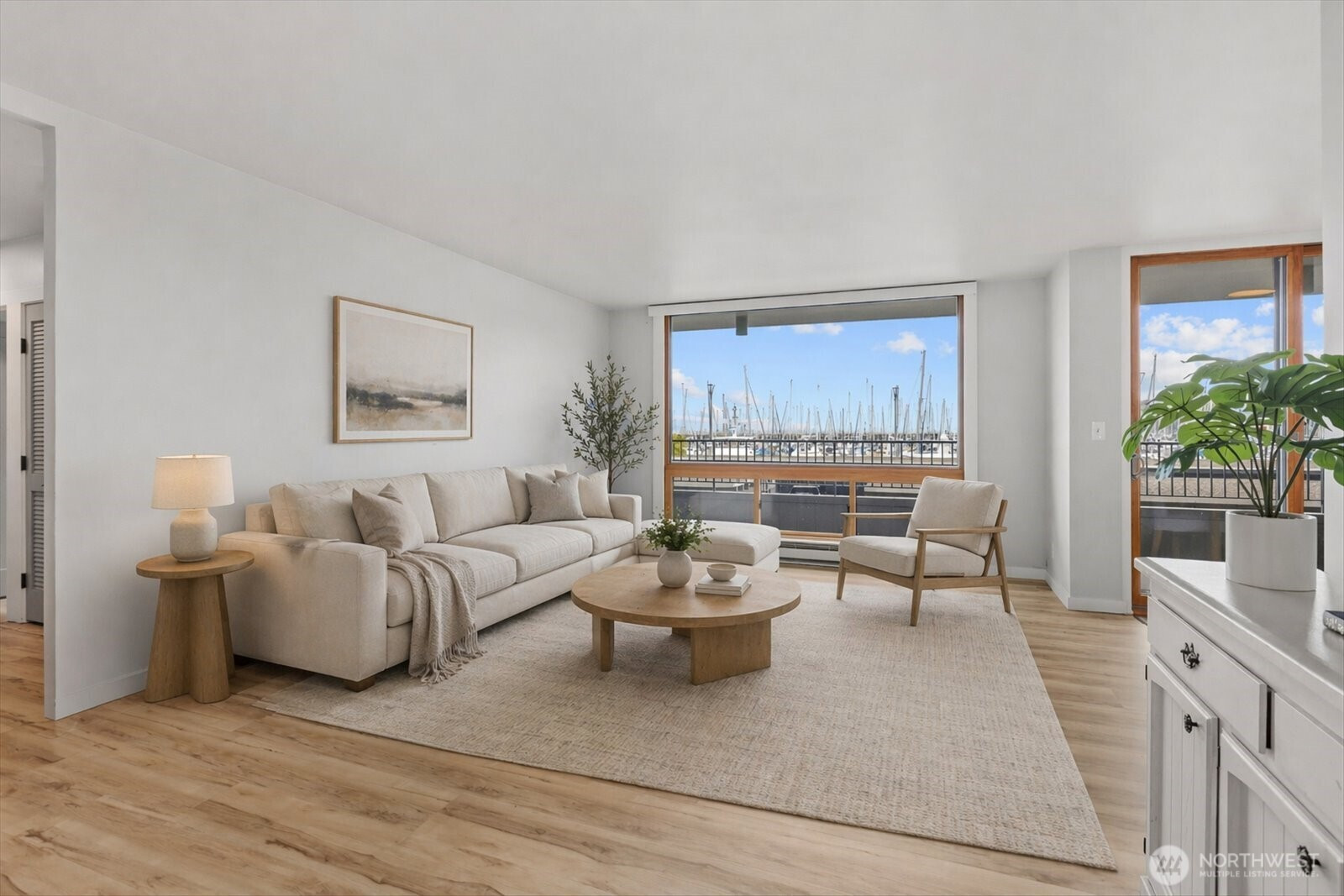 Experience true waterfront living at Sunset West, where panoramic views of Shilshole Marina and Puget Sound take center stage—sailboats gliding across the water while a sea of masts sways in rhythm with the breeze all set against the ever-changing silhouette of the Olympic Mountains. This light-filled home offers a spacious, open-concept layout with floor-to-ceiling windows that allow for unforgettable sunsets. A gorgeous chef’s kitchen featuring quartz countertops, custom fir cabinetry, and seamless flow to the dining area and private deck—ideal for outdoor dining, relaxing, or personalizing your own garden escape. Quartz surfaces continue into the baths, complemented by rich fir millwork for a warm, refined finish. Resort-style amenities span 11 acres of beautifully maintained grounds. Enjoy a waterfront pool and spa, sauna, fitness center, library, social and game rooms, big-screen TV lounge, expansive hobby shop with rentable workspace and lockers, children’s play area, and direct marina access. Additional features include secure entry, 24-hour security, EV charging, RV/boat parking, extra storage options, assigned parking space #167, car wash area and dedicated storage. Ideally located near Golden Gardens Beach Park, the Burke-Gilman Trail, and vibrant downtown Ballard’s dining, shopping, and entertainment. This is waterfront living, redefined.