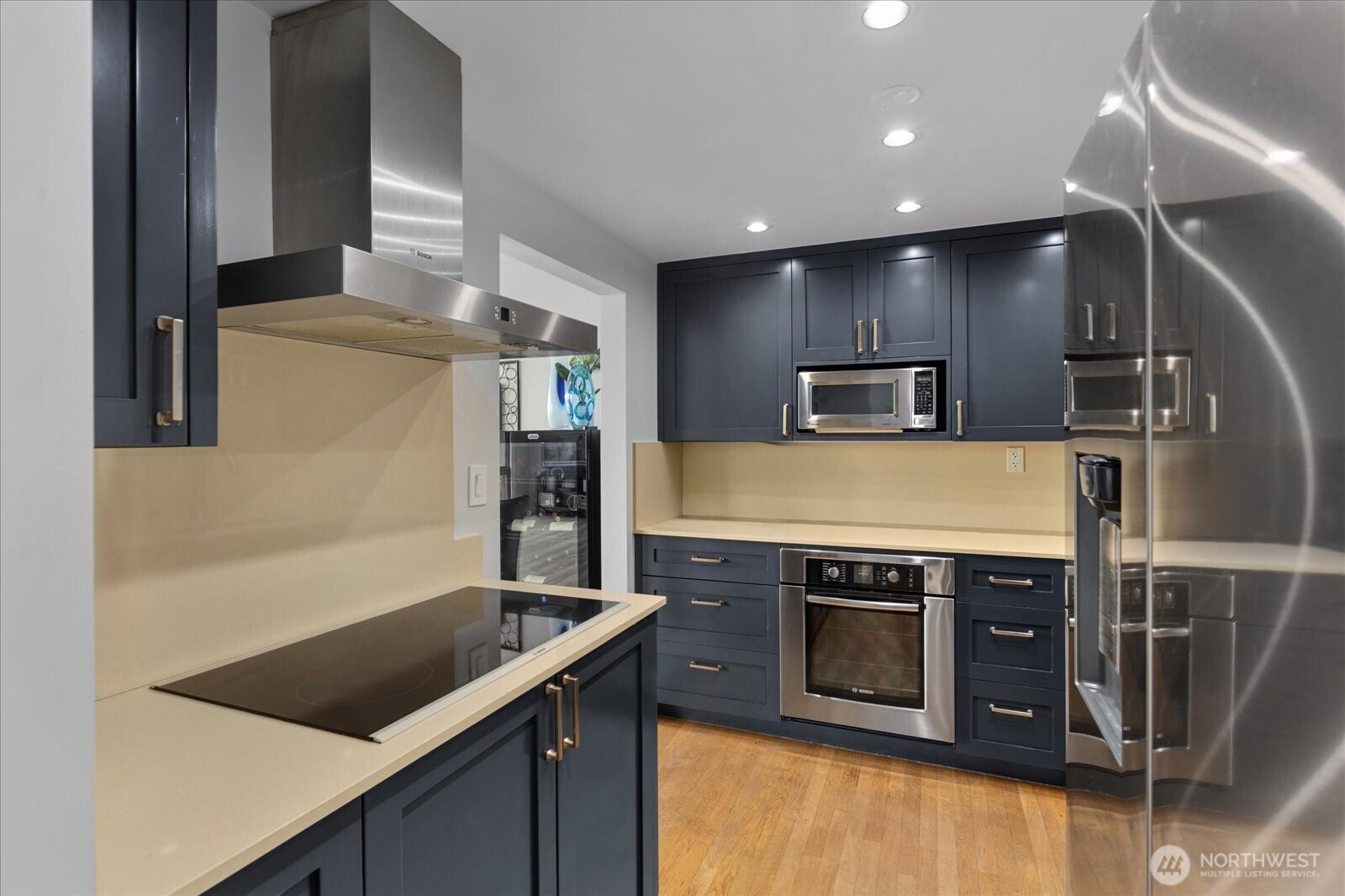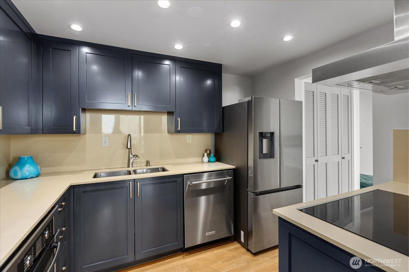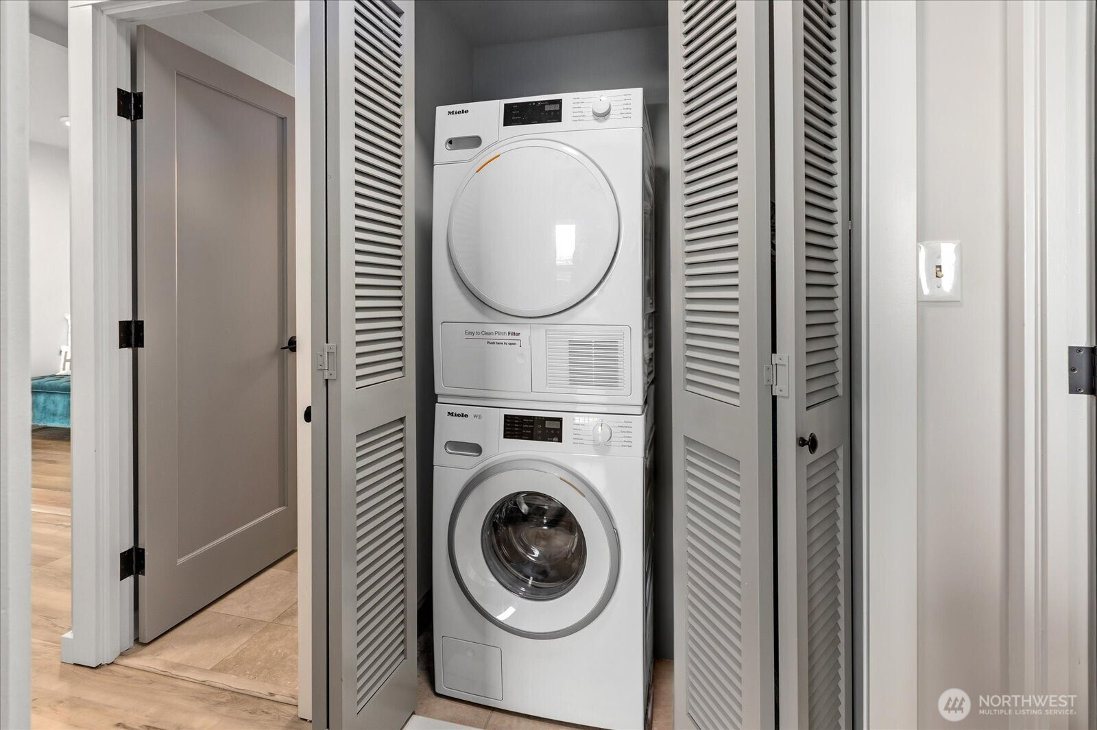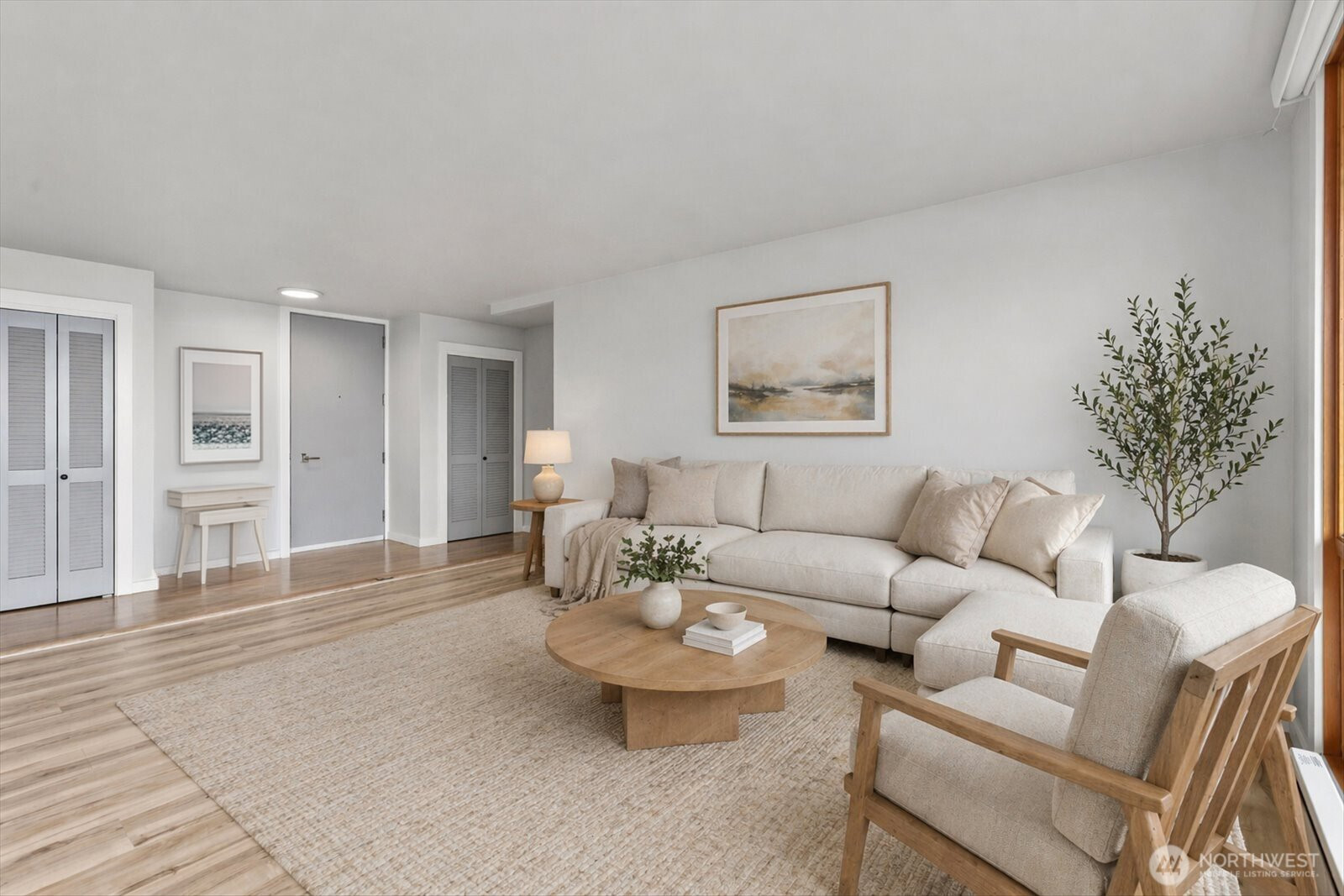 Experience true waterfront living at Sunset West, where panoramic views of Shilshole Marina and Puget Sound take center stage—sailboats gliding across the water while a sea of masts sways in rhythm with the breeze all set against the ever-changing silhouette of the Olympic Mountains. This light-filled home offers a spacious, open-concept layout with floor-to-ceiling windows that allow for unforgettable sunsets. A gorgeous chef’s kitchen featuring quartz countertops, custom fir cabinetry, and seamless flow to the dining area and private deck—ideal for outdoor dining, relaxing, or personalizing your own garden escape. Quartz surfaces continue into the baths, complemented by rich fir millwork for a warm, refined finish. Resort-style amenities span 11 acres of beautifully maintained grounds. Enjoy a waterfront pool and spa, sauna, fitness center, library, social and game rooms, big-screen TV lounge, expansive hobby shop with rentable workspace and lockers, children’s play area, and direct marina access. Additional features include secure entry, 24-hour security, EV charging, RV/boat parking, extra storage options, assigned parking space #167, car wash area and dedicated storage. Ideally located near Golden Gardens Beach Park, the Burke-Gilman Trail, and vibrant downtown Ballard’s dining, shopping, and entertainment. This is waterfront living, redefined.