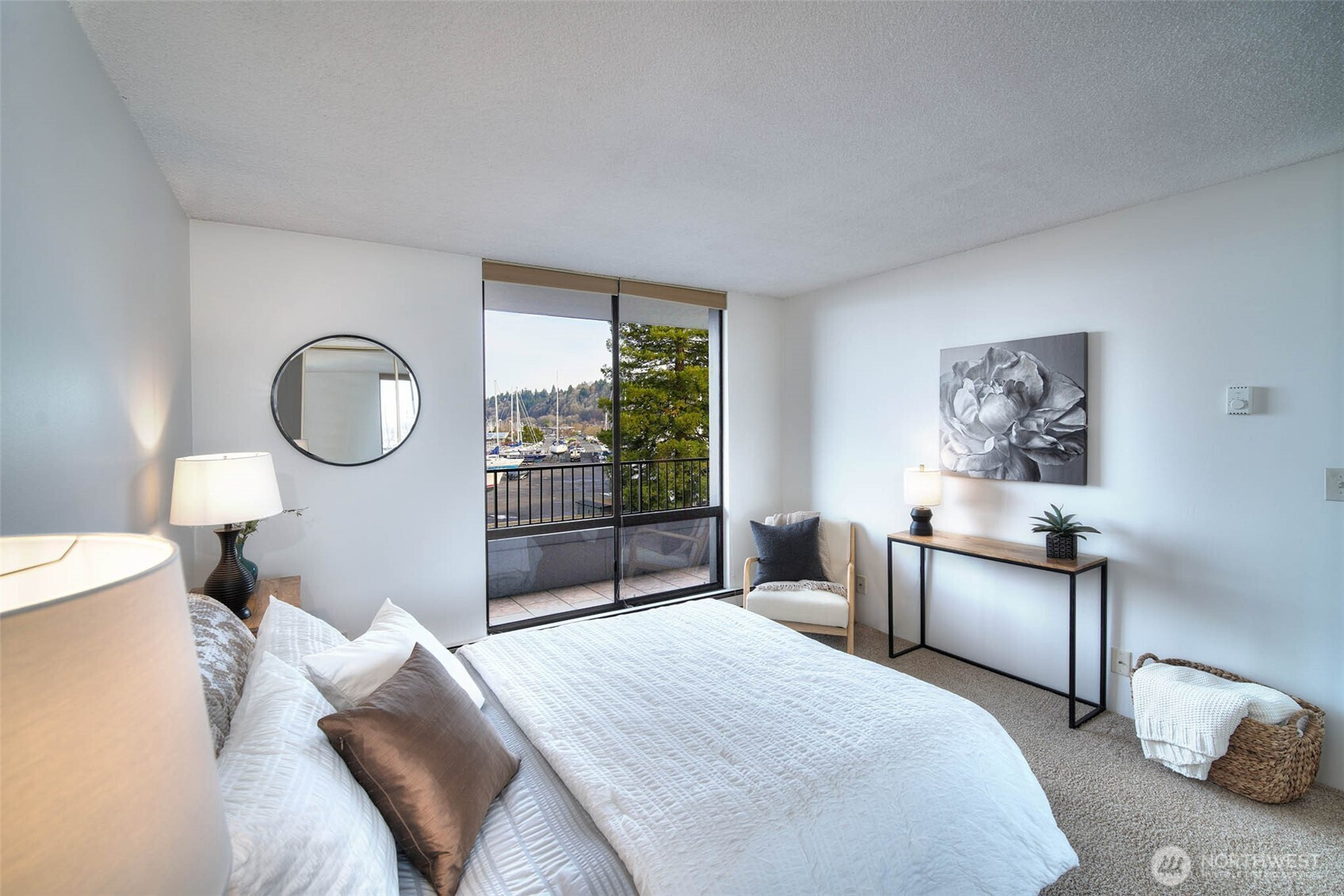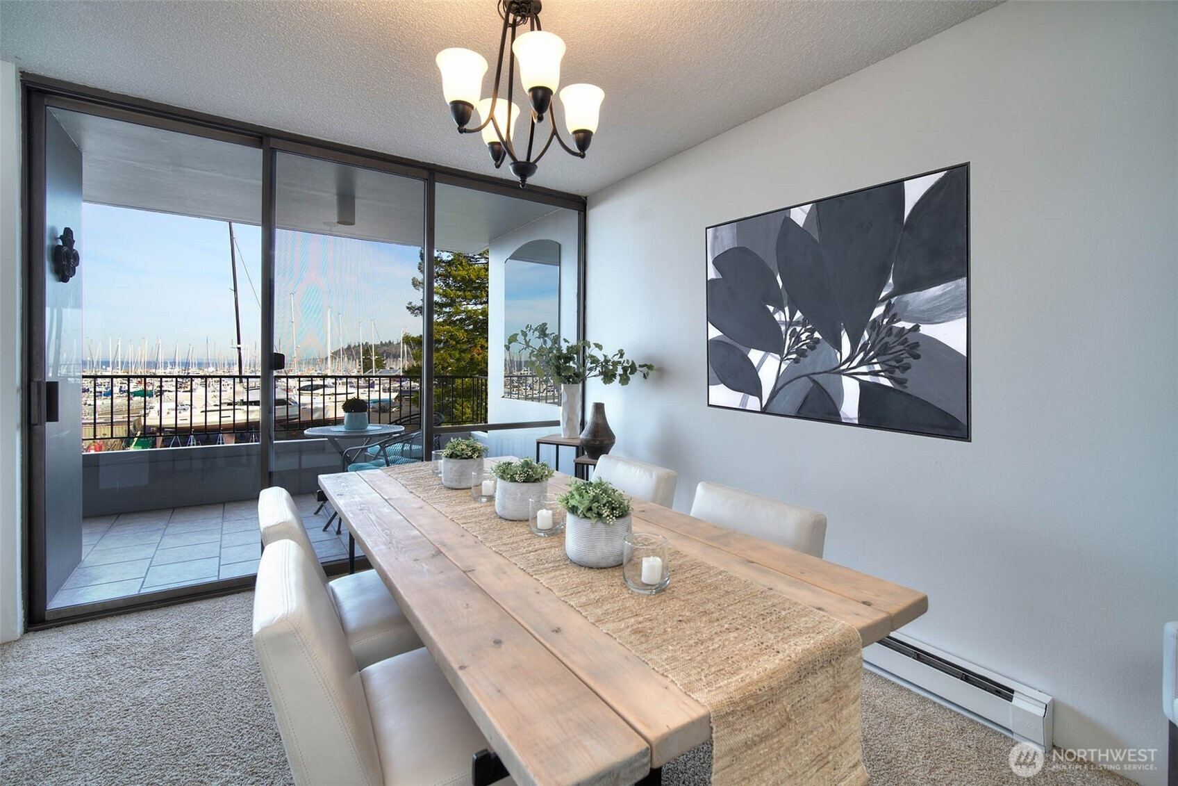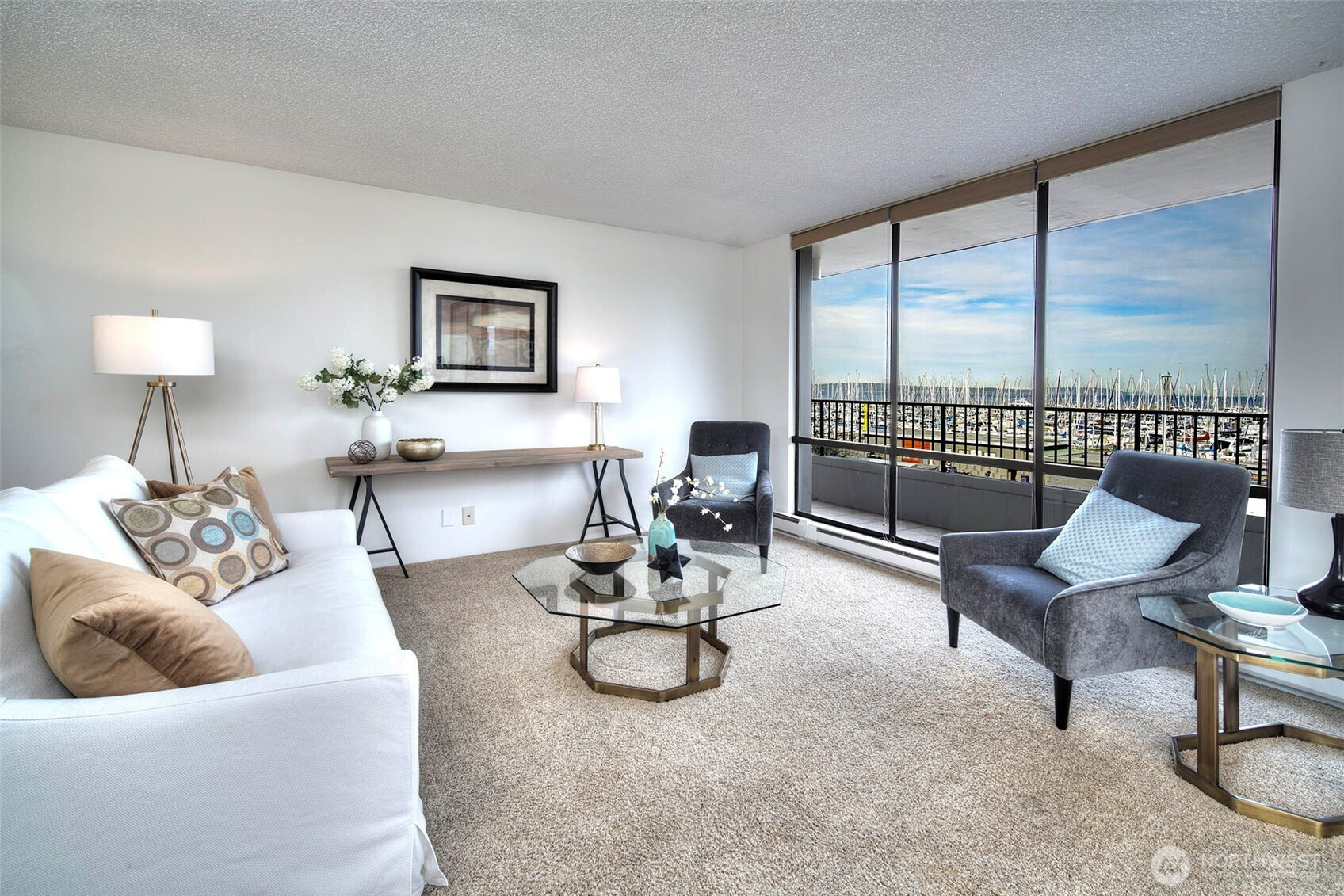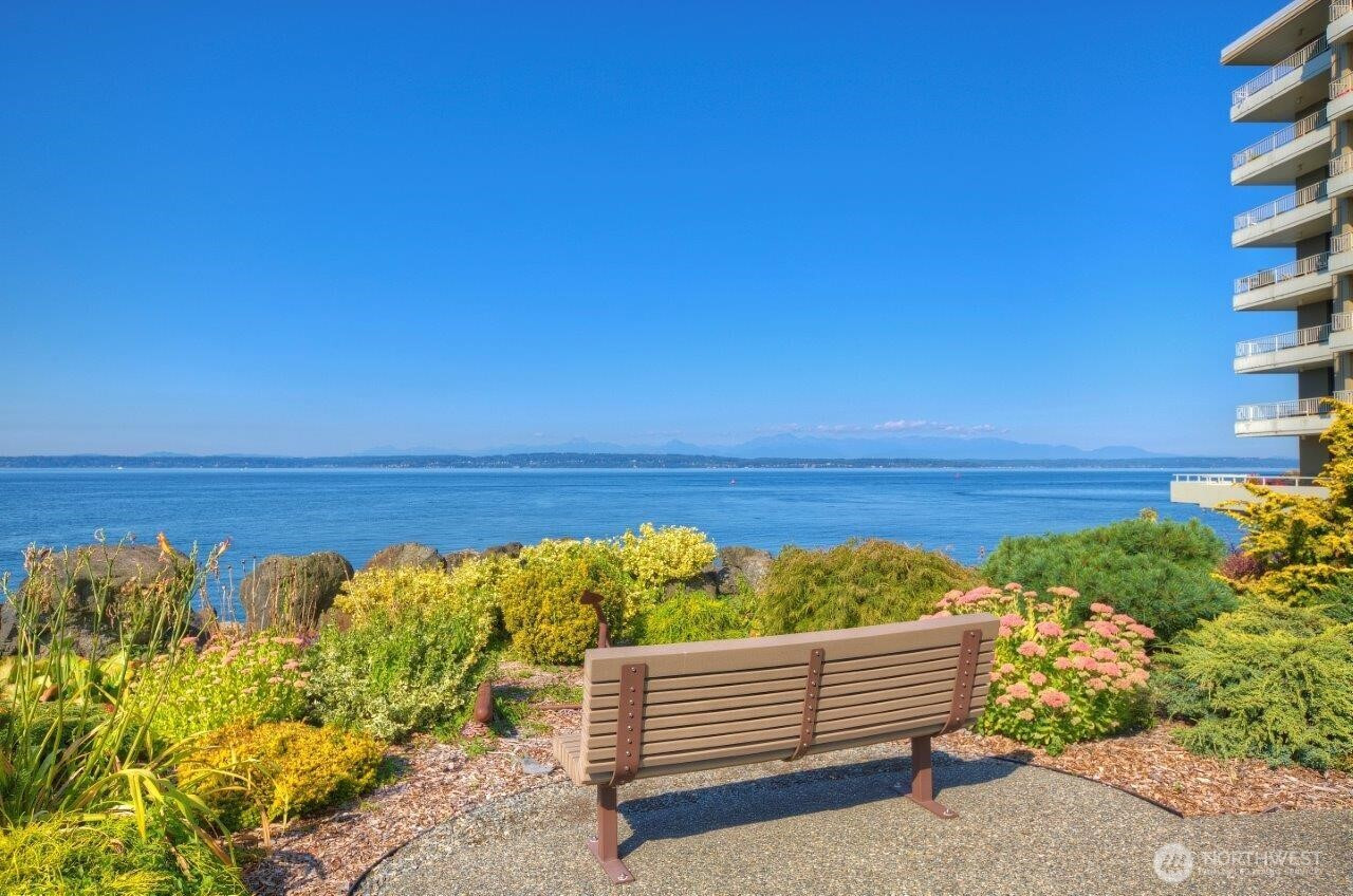 You'll never tire of watching the dancing masts of Shilshole Marina and the billowing sails of boats traversing the Sound. This chic, thoughtfully remodeled 1 bedroom retreat offers a front-row seat to it all. Step onto the deck to take in views of the sun setting behind the snow-capped Olympics, whether you're enjoying a leisurely supper al fresco or tending to your thriving container garden. Explore Sunset West's many amenities including 24 hour security, outdoor pool & spa, game room, fully equipped hobby shop, exercise and party rooms, RV/boat parking, sauna, and electric car charging stations. Embraced by 11 acres of manicured grounds, a stone's throw to Ray's Boathouse, Golden Gardens Park, the Burke Gilman Trail and minutes to downtown Ballard...... It's Resort Living - In City!