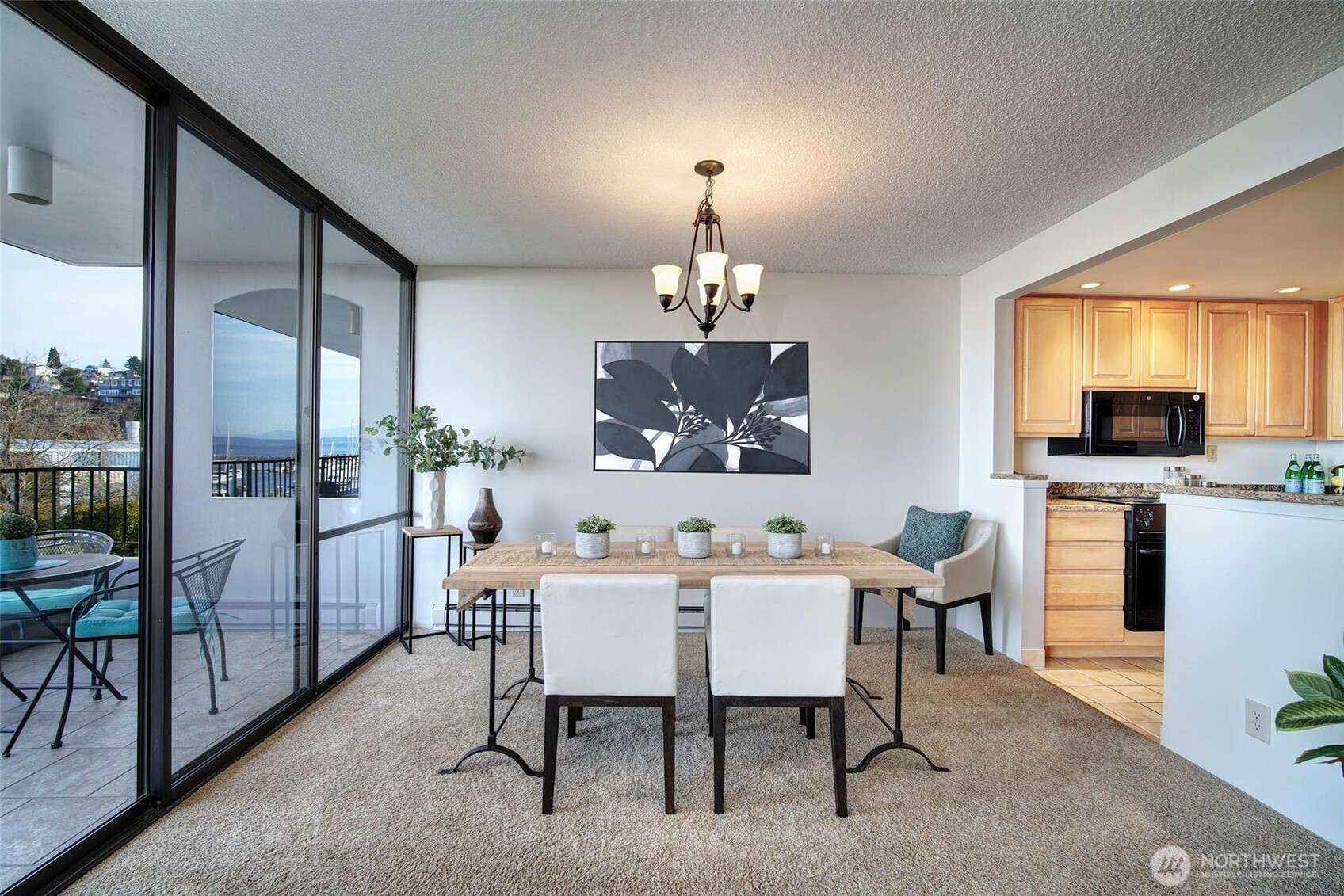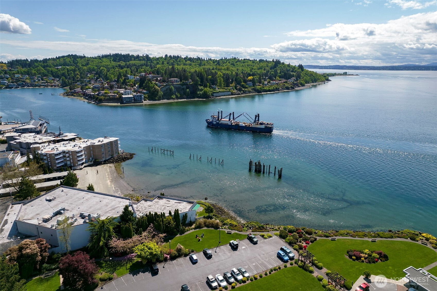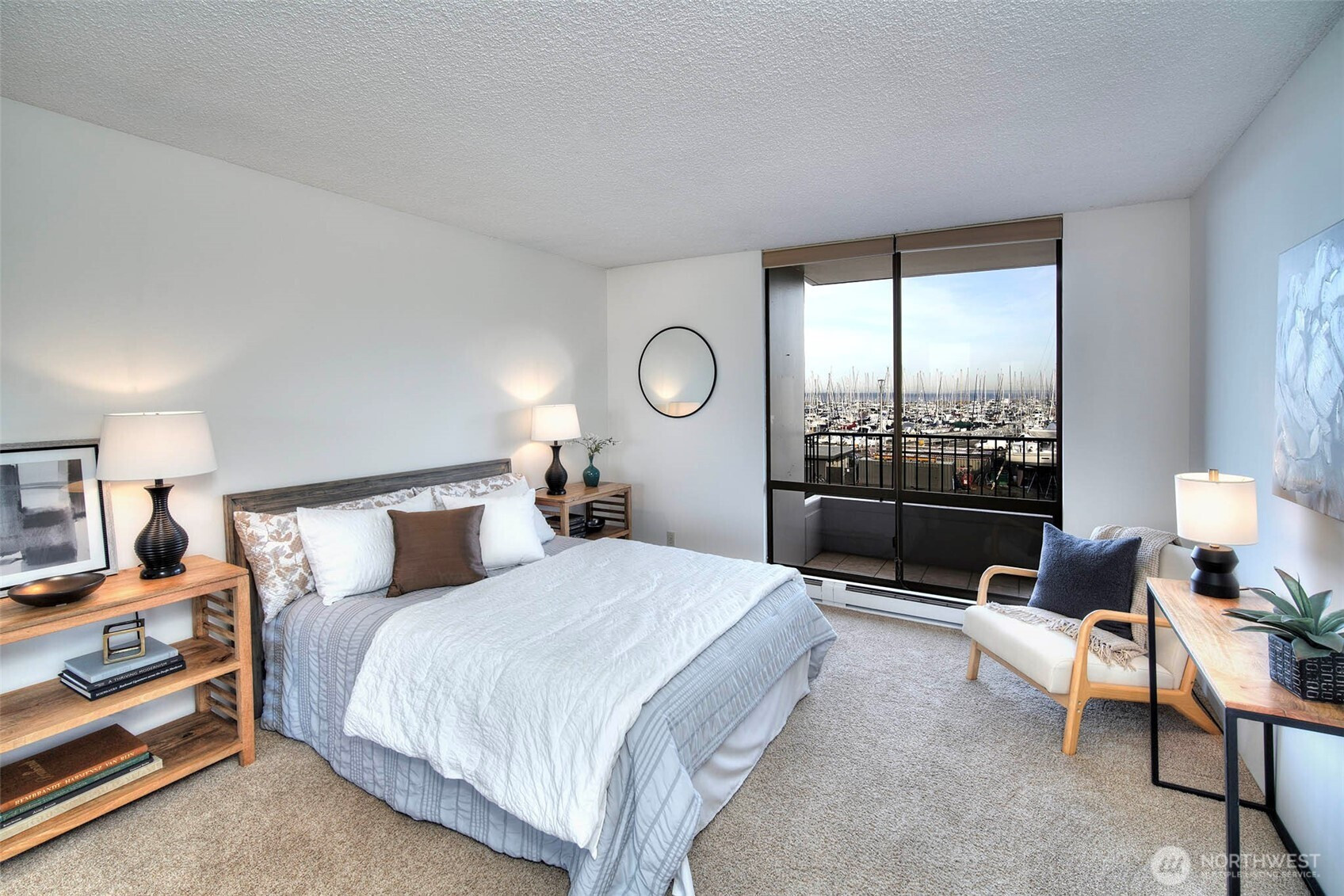You'll never tire of watching the dancing masts of Shilshole Marina and the billowing sails of boats traversing the Sound. This chic, thoughtfully remodeled 1 bedroom retreat offers a front-row seat to it all. Step onto the deck to take in views of the sun setting behind the snow-capped Olympics, whether you're enjoying a leisurely supper al fresco or tending to your thriving container garden. Explore Sunset West's many amenities including 24 hour security, outdoor pool & spa, game room, fully equipped hobby shop, exercise and party rooms, RV/boat parking, sauna, and electric car charging stations. Embraced by 11 acres of manicured grounds, a stone's throw to Ray's Boathouse, Golden Gardens Park, the Burke Gilman Trail and minutes to downtown Ballard...... It's Resort Living - In City!