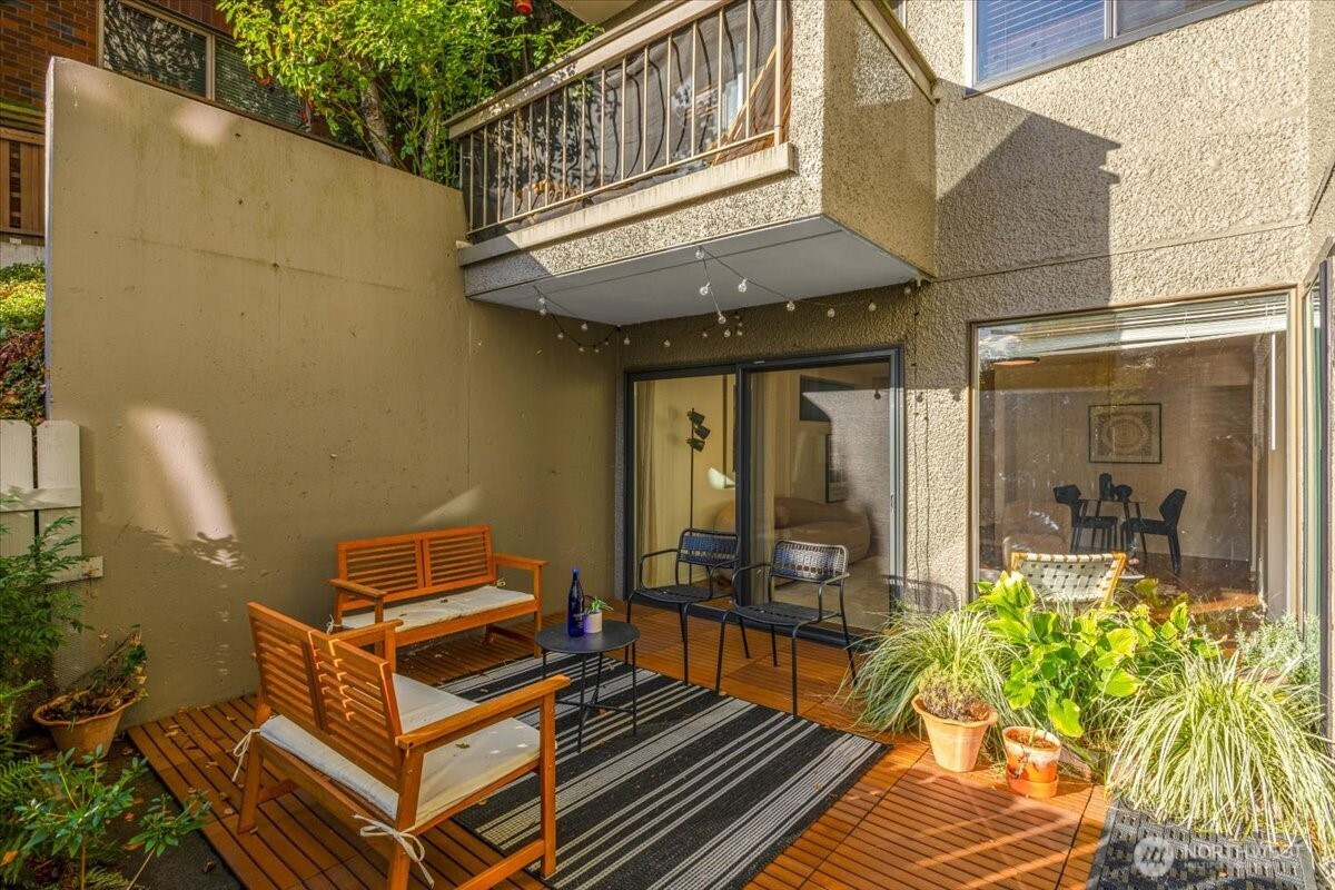 Experience elevated Queen Anne living in this ground-level 1-bedroom condo featuring two spacious living areas, private patio, and direct access to your assigned parking spot—no stairs required. Located in a well-managed building with strong reserves and a recent HOA dues reduction, this home offers peace of mind and financial stability. Enjoy hardwood floors, oversized windows, and easy access to Kerry Park, Climate Pledge Arena, dining, and public transit. Perfect for first-time buyers, remote workers, or those seeking a stylish in-city retreat. Pet-friendly building with rental cap in place. Discover comfort, location, and lifestyle in this boutique Queen Anne community.