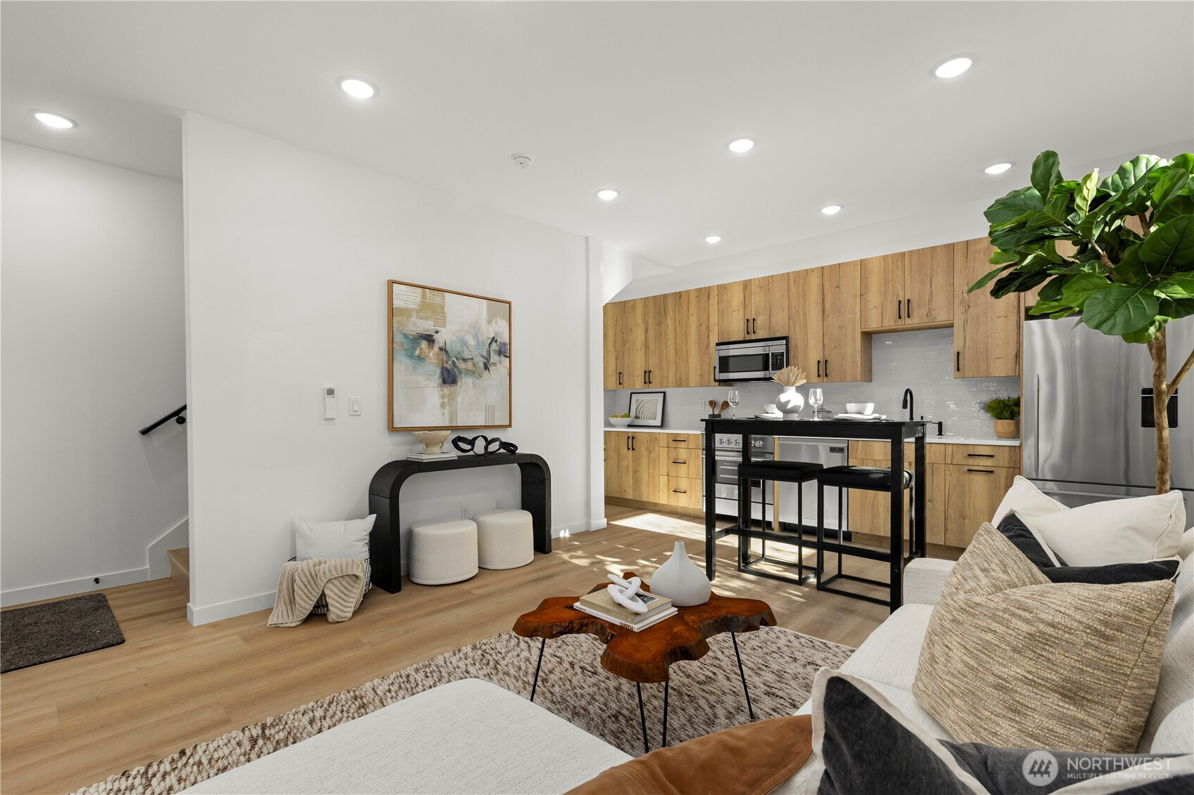 Special 3.25% Interest Rate Available*! Welcome to The Reserve II by MRN Homes—a rare, move-in-ready new construction offering just 1.5 blocks from iconic Green Lake, set on a peaceful residential street. This is elevated Seattle living at its finest, where lake mornings, café strolls, and vibrant city access come together seamlessly. Designed for modern luxury living, this light-filled residence features an open-concept layout perfect for entertaining and everyday ease. The chef’s kitchen impresses with Fisher & Paykel appliances, sleek quartz countertops, and custom cabinetry, creating a polished yet inviting heart of the home. Upstairs, unwind in the serene primary suite with a spa-inspired bath and walk-in closet, complemented by a generous second bedroom ideal for guests or a stylish home office. Crowning it all is a full-size rooftop deck with gas, water, and electric hookups—your private retreat for sunset gatherings, summer dinners, or post-lake relaxation. With a Walk Score of 84, enjoy effortless access to beloved neighborhood cafés, Green Lake Playfield, Woodland Park Zoo, UW, and quick connections to Downtown Seattle. Opportunities like this—new construction in one of Seattle’s most iconic neighborhoods are truly rare—don't miss it! *Terms Apply