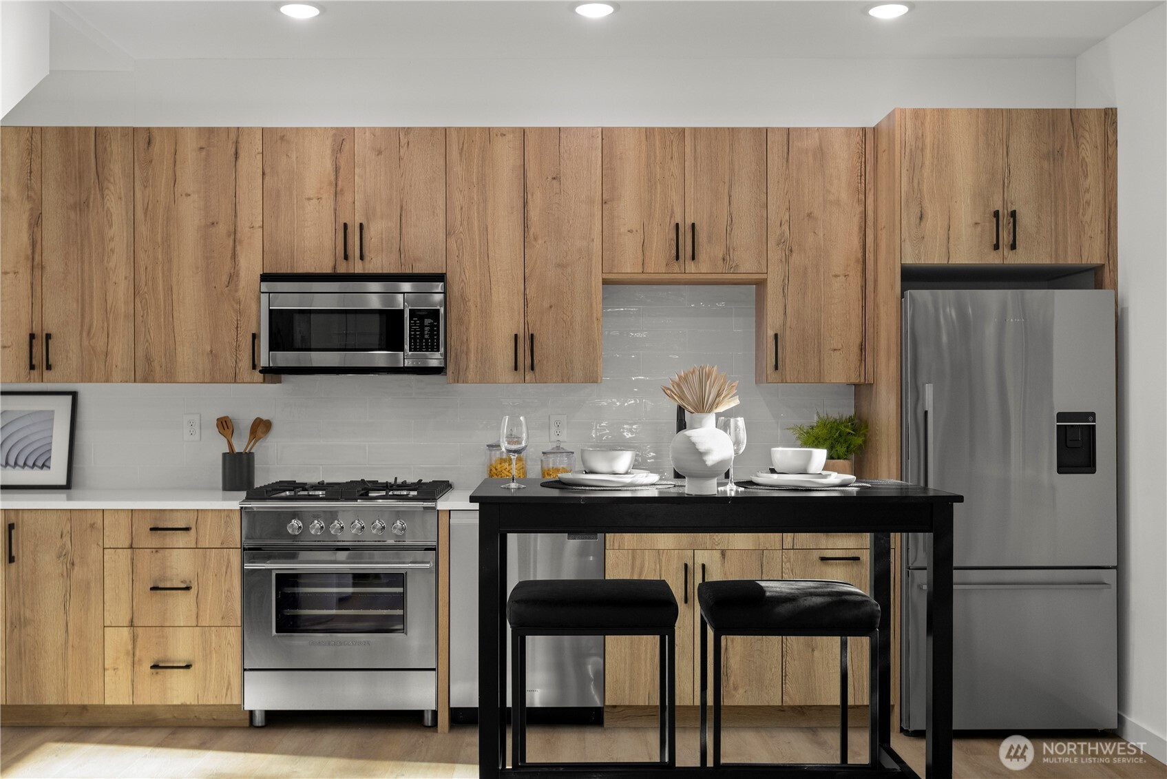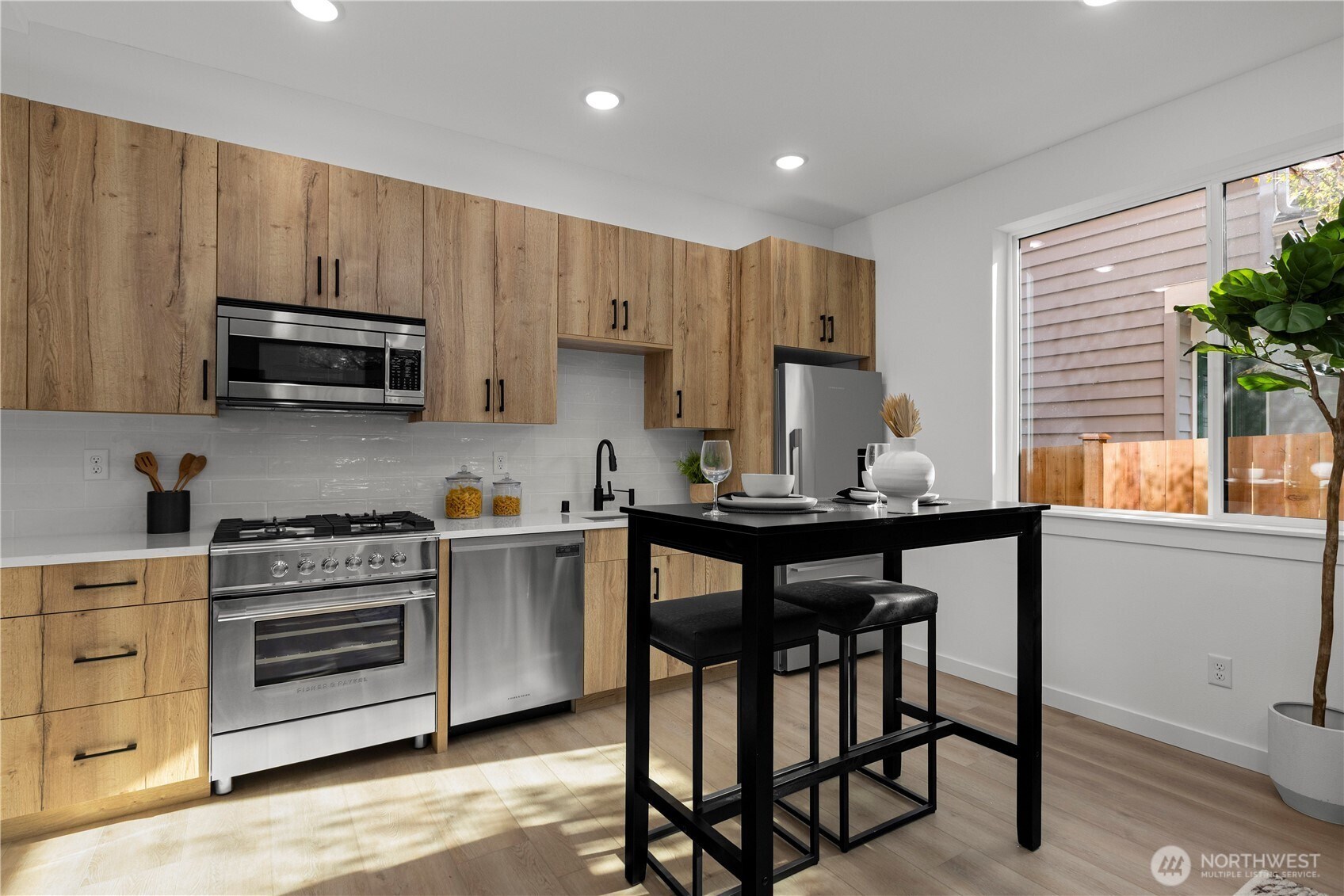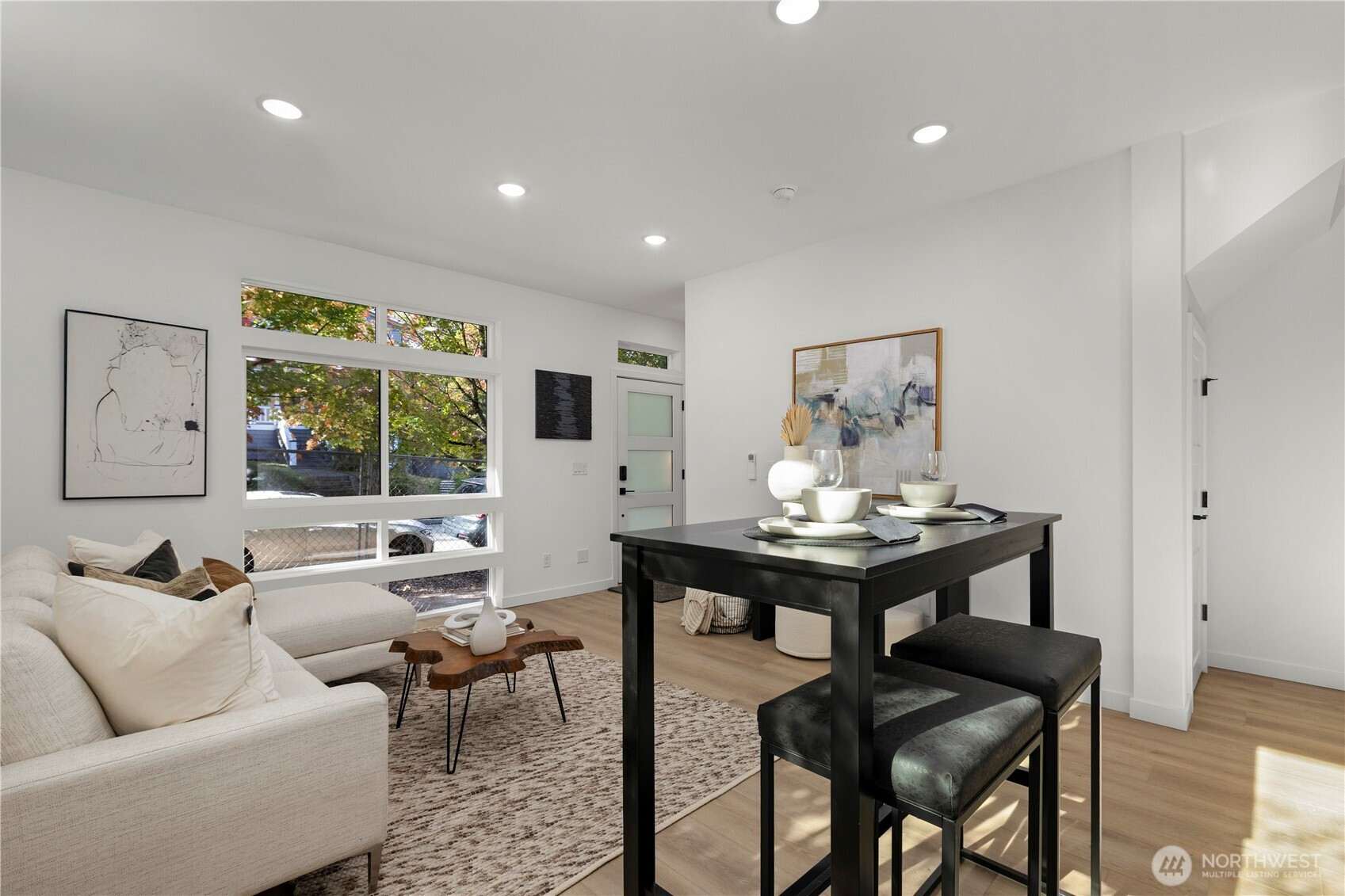 $10,000 CREDIT TOWARD CLOSING COSTS or LOW RATE. Live at The Reserve I by MRN Homes— just 1.5 blocks from iconic Green Lake, tucked along a quiet residential street yet moments from everything. This light-filled home offers a bright open-concept layout designed w/ample wrapped around windows. The chef’s kitchen features premium Fisher & Paykel appliances, quartz countertops, and locally crafted custom cabinetry. Upstairs, the spacious primary suite offers a beautifully appointed bath, complemented by a generous second bedroom and a flex space perfect for a home office. A full-size rooftop deck with gas, water, and electric creates the perfect outdoor retreat for entertaining. Enjoy effortless access to Green Lake, neighborhood cafés, PCC, and the vibrant Green Lake corridor. Minutes to Woodland Park Zoo, UW, Roosevelt Light Rail, and the beloved Wallingford & Stone Way café scene, with quick connections to I-5. A truly prime location—peaceful yet incredibly connected.