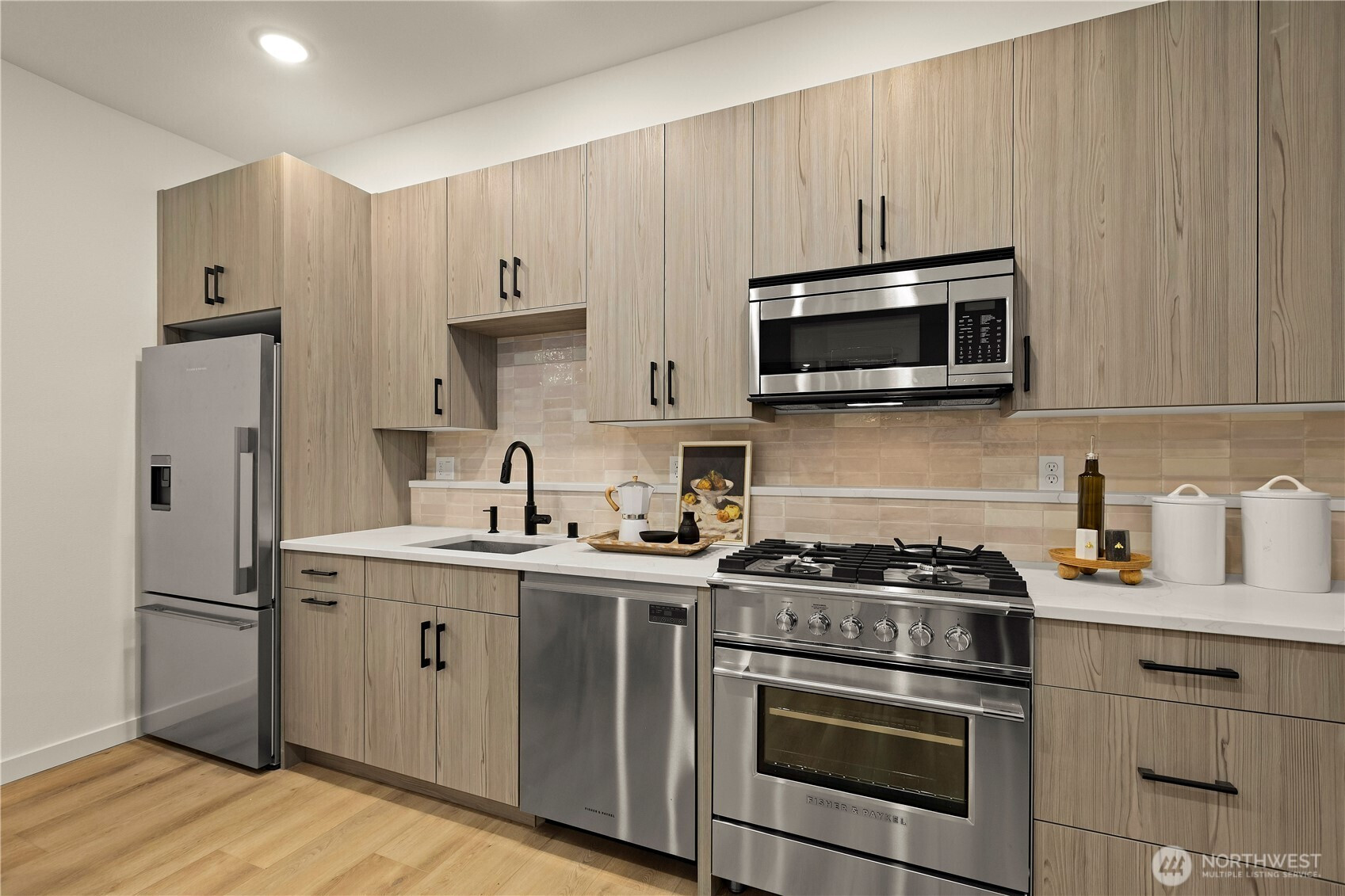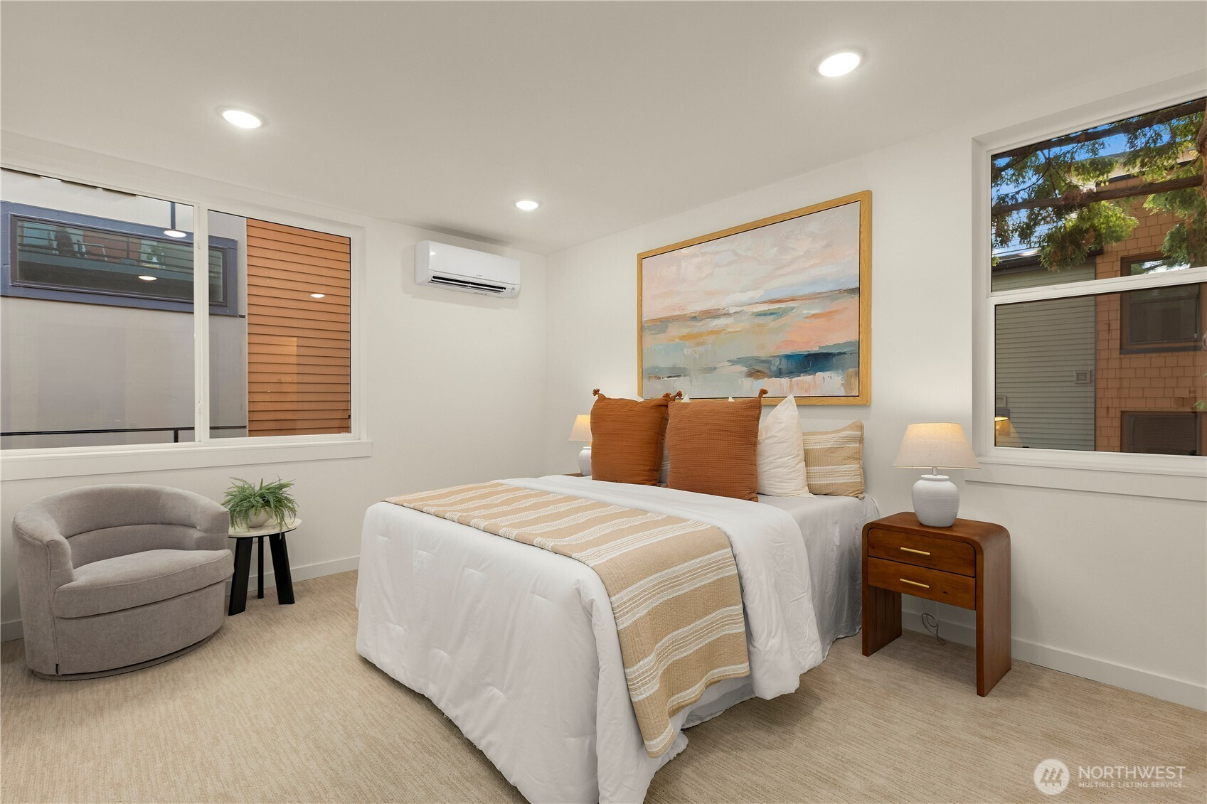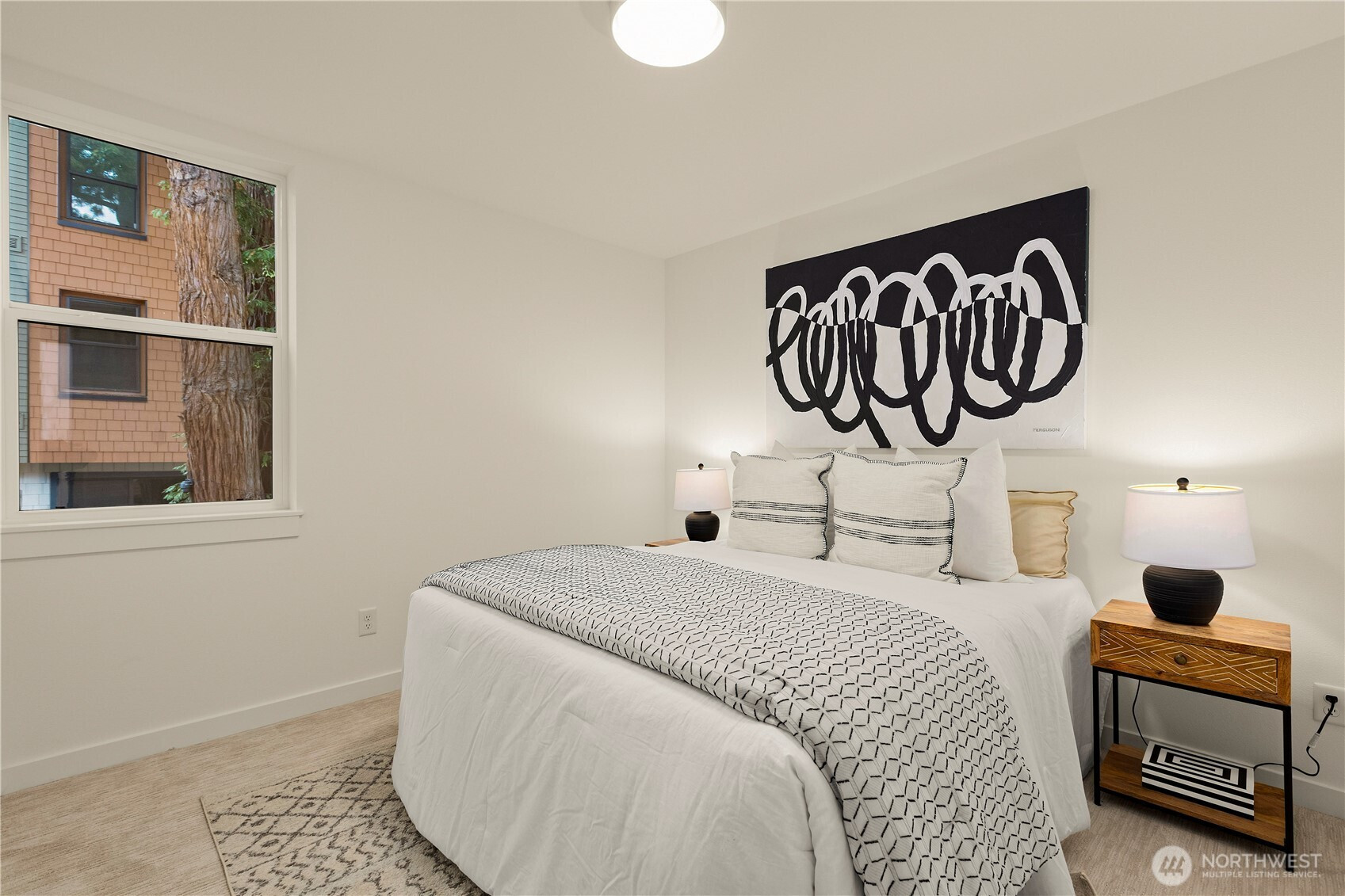 Rare opportunity steps from Seattle’s iconic Green Lake shoreline. Enjoy the best of both worlds: a peaceful residential enclave near bustling cafés, boutique shops & scenic trails. Nestled on a quiet, tree-lined street, this corner home feat. a luminous open concept centered around a chef’s kitchen w/Fisher & Paykel appliances, custom cabinetry & quartz counters. Walls of glass fill the home w/light. Top floor primary suite w/generous closet & luxe bath. Second bedroom w/bath on upper floor. Full-size rooftop deck equipped w/gas, electric & water hookups! Moments to the Roosevelt corridor & Light Rail - ideal for both living & long-term investment! NOVEMBER ONLY— $20,000 bonus + 1% credit w/preferred lender for closing costs or lower rate!