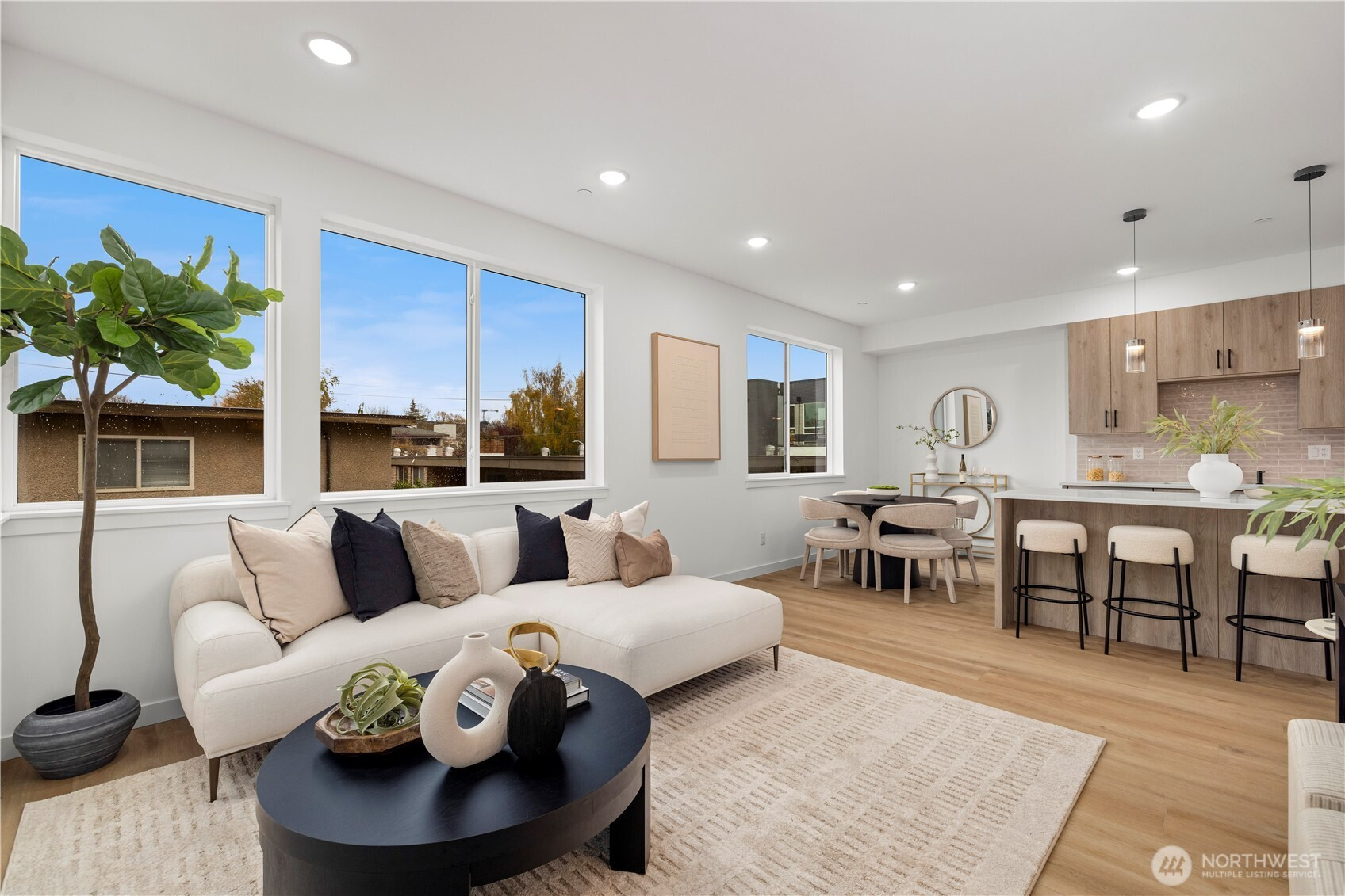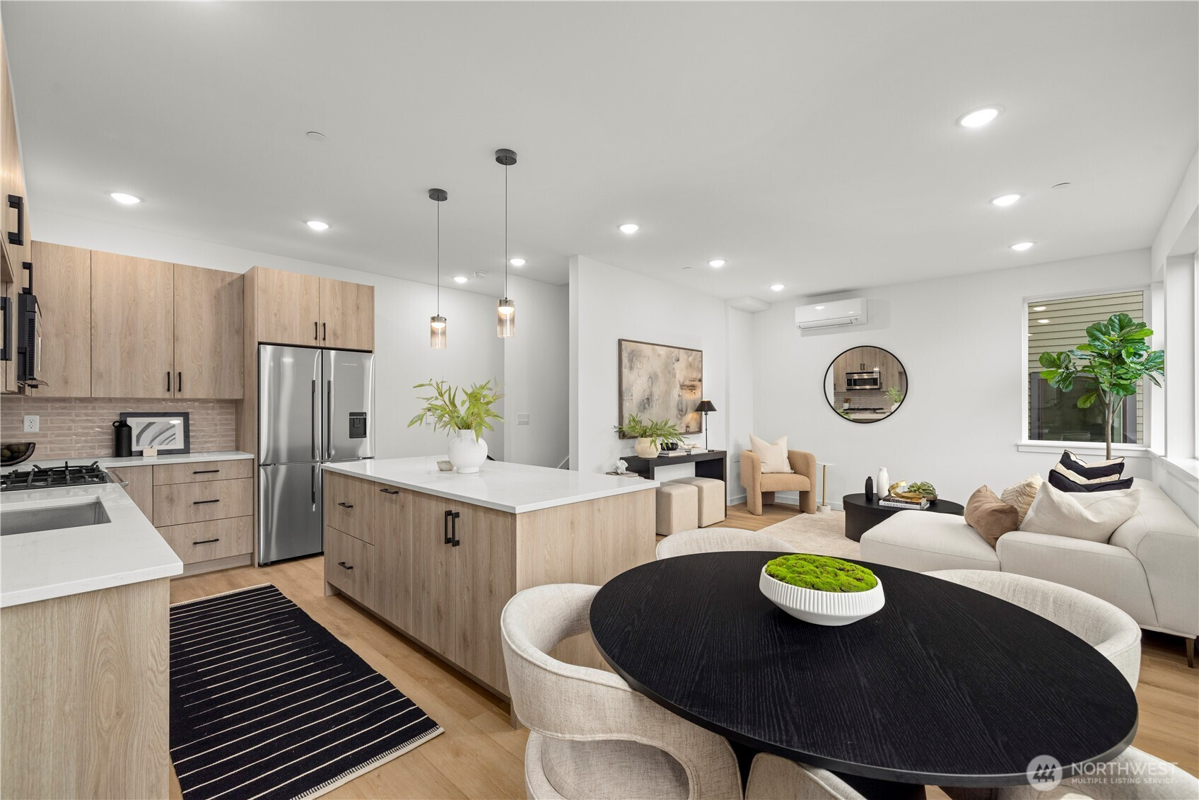 $25,000 TO LOW RATE or CLOSING COSTS. Live at The Reserve I by MRN Homes—exceptional new construction just 1.5 blocks from iconic Green Lake, tucked along a quiet residential street yet moments from everything. One of only two homes of its kind, offering approx. 1,600 sq ft and living like a true single-family home. COVERED EV-READY PARKING INCLUDED. Bright open-concept main level features a chef’s kitchen with Fisher & Paykel appliances, gas range, quartz counters, grand island with eating bar, abundant custom cabinetry, and dining space. Efficient mini-split heating & A/C provide year-round comfort. Upstairs, three spacious bedrooms create a peaceful retreat, highlighted by a stunning primary suite with spa-inspired 5-piece bath, soaking tub, and walk-in closet. The expansive rooftop deck with gas, water & electric offers the perfect outdoor escape. Enjoy effortless access to Green Lake, neighborhood cafés, PCC, and the vibrant Green Lake corridor. Minutes to Woodland Park Zoo, UW, Roosevelt Light Rail, and the beloved Wallingford scene, with quick connections to I-5. A truly prime location—peaceful yet incredibly connected. New construction this close to the lake is exceptionally rare. 4-Star Built Green.