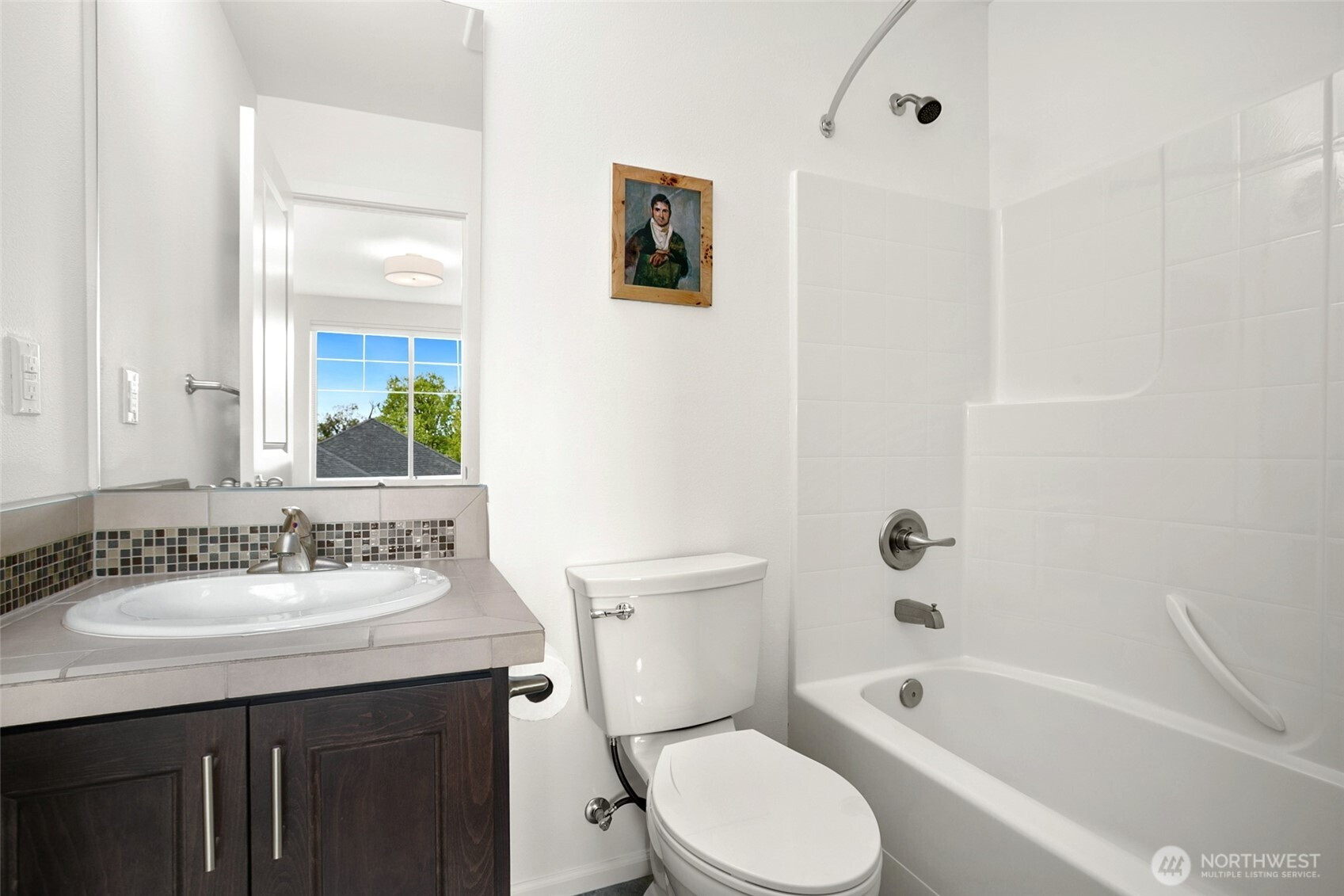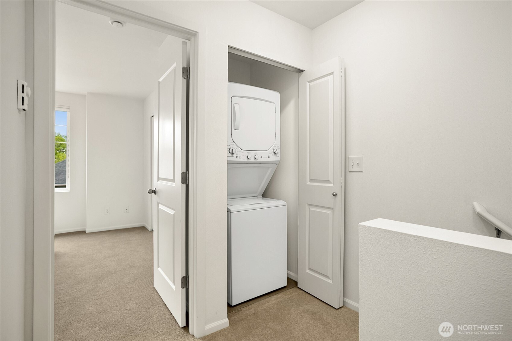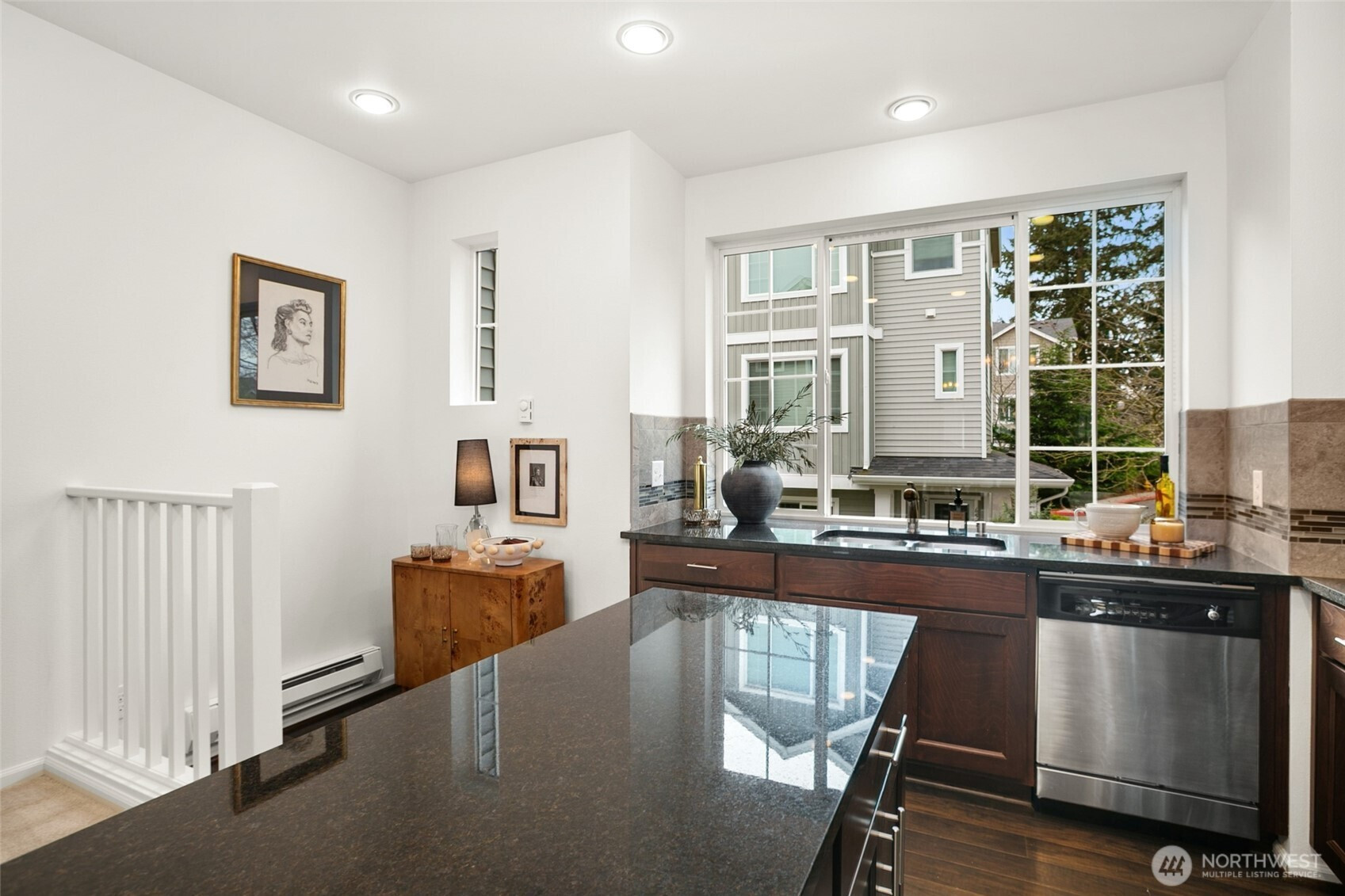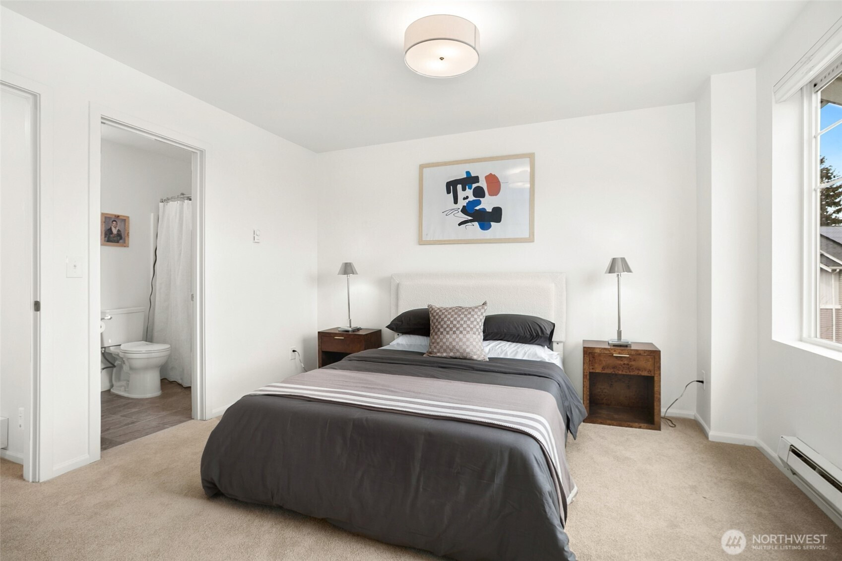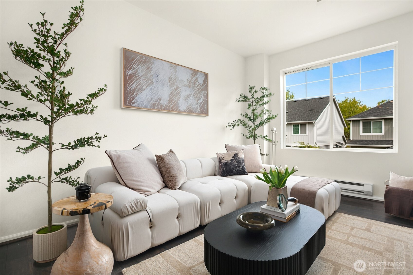 Begin your mornings with coffee and a quiet walk through tree-lined paths, where your neighborhood's parks, trails, and open green space feel like an extension of home. Nestled in West Seattle’s connected and green-designed High Point community, this townhome offers desirable location, convenience and turn-key livability. Gather in a light-filled main level where kitchen, dining, and living spaces flow effortlessly together, refreshed with all new interior paint, new carpeting, and stainless appliances, including a new refrigerator and range. Large windows bring in soft natural light throughout the day. New window coverings were installed in both bedrooms and lower level den for comfort and privacy. Upstairs, two ensuite bedrooms offer flexibility, each with its own bath and generous closets. The entry level features a versatile bonus space, ideal for a home office, workout area, or creative studio. An attached one-car garage with additional driveway parking adds everyday ease. Life here extends beyond your front door, with neighborhood parks, community spaces, and West Seattle favorites just minutes away.