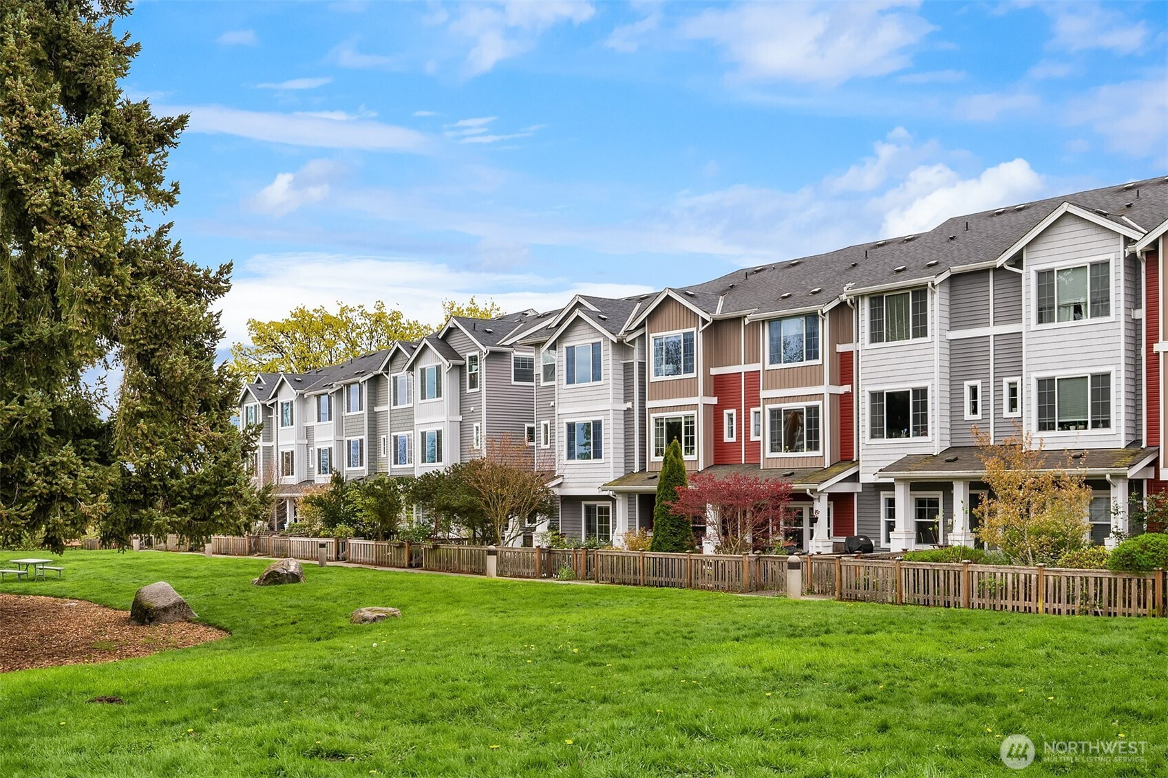 Captivating 3 bedroom townhome in one of West Seattle's most desired neighborhoods, High Point. High Point champions progress being the first Energy Star- Certified multifamily community in the nation! Get the best lot on the block, corner lot with more yard space, privacy and natural light than a middle unit. Entry level has a second primary bedroom with full en-suite bathroom, perfect for guests, home office, multi generation living and more. Main floor boast open concept kitchen with a huge kitchen island, quartz countertops, all new high-end appliances and plenty of counterspace. Living room is framed by an abundance of windows flooding the space with natural light, new mini split/AC has been installed for those hot summer days. Large primary bedroom with en-suite bathroom, guest bedroom, full bathroom and a bonus flex space, perfect place for your home office. Heat pump and ducts were installed upstairs so the whole upstairs has AC. New top-down blinds installed throughout. 1 car garage and parking pad for 2nd car, tons of street parking nearby. Cute yard with blueberry and raspberry plants, space to bbq and relax. The home faces a large grassy greenspace which feels like an extension of your yard, equipped with picnic benches. Close to many of the High Point parks, playgrounds and trails. Great location, minutes restaurants, shopping and many of Seattle's best spots, and amenities; easy access to freeways and public transportation.