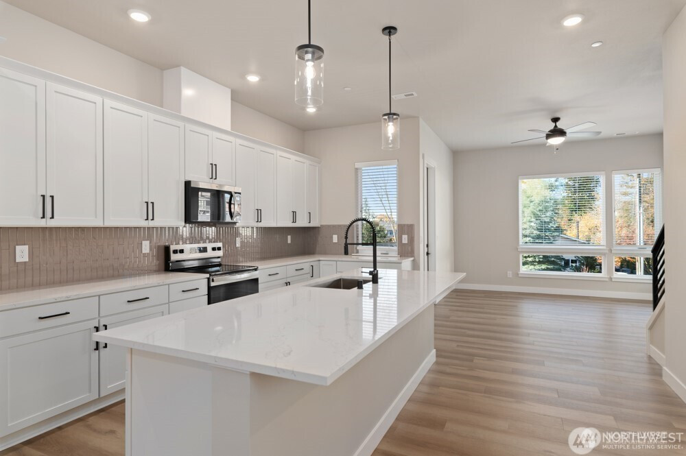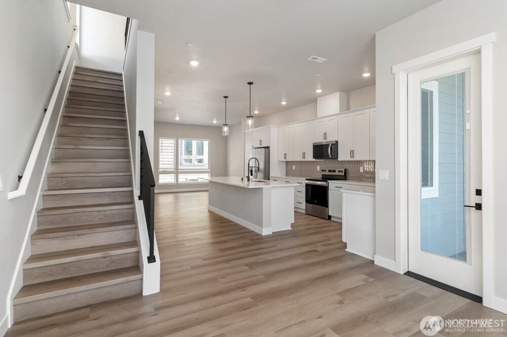 The Madelyn makes an immediate impression with a design that combines charm, convenience, and versatility right from the start. Step through the covered porch into a welcoming foyer that introduces the home’s inviting atmosphere. Just beyond, a private bedroom with an en-suite bath offers a flexible space that can serve as a guest retreat, a quiet home office, or a private hideaway for extended living. Paired with easy garage access, the first floor is designed to adapt to your needs while setting the tone for the stylish living spaces above.