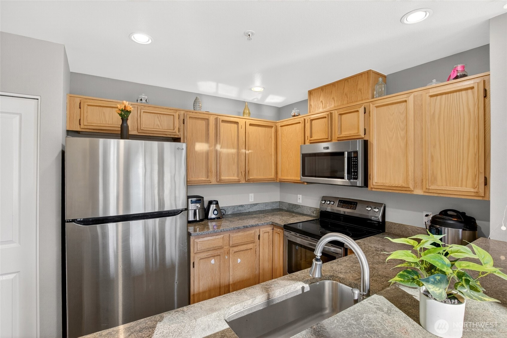 Welcome to a bright and inviting townhome that blends comfort, style, and everyday convenience. Step inside to soaring vaulted ceilings and abundant natural light that create an open, uplifting atmosphere. The thoughtfully designed kitchen offers generous counter space and a welcoming breakfast bar, making cooking and entertaining effortless. This home features two spacious ensuite bedrooms, each with its own private bathroom—perfect for roommates, guests, or anyone who values personal space and comfort. Wide-plank flooring adds a clean, modern feel throughout the main living areas, and a private one-car garage provides secure parking and additional storage. Located in the heart of downtown Kent, this home puts you close to everything. You’re just a few blocks from Kent Station, offering quick access to transit, dining, shopping, and entertainment—an ideal setup for commuters and anyone who enjoys a walkable lifestyle. The community offers an impressive lineup of amenities, including a clubhouse, fitness center, sports court, and an outdoor pool for summertime relaxation. Whether you’re unwinding after work or enjoying a weekend at home, there’s something for everyone. Exciting exterior upgrades are also on the horizon, including new siding, windows, doors, and gutters. These improvements will enhance curb appeal, improve energy efficiency, and support long-term property value. This townhome delivers the perfect blend of comfort, convenience, and lifestyle.