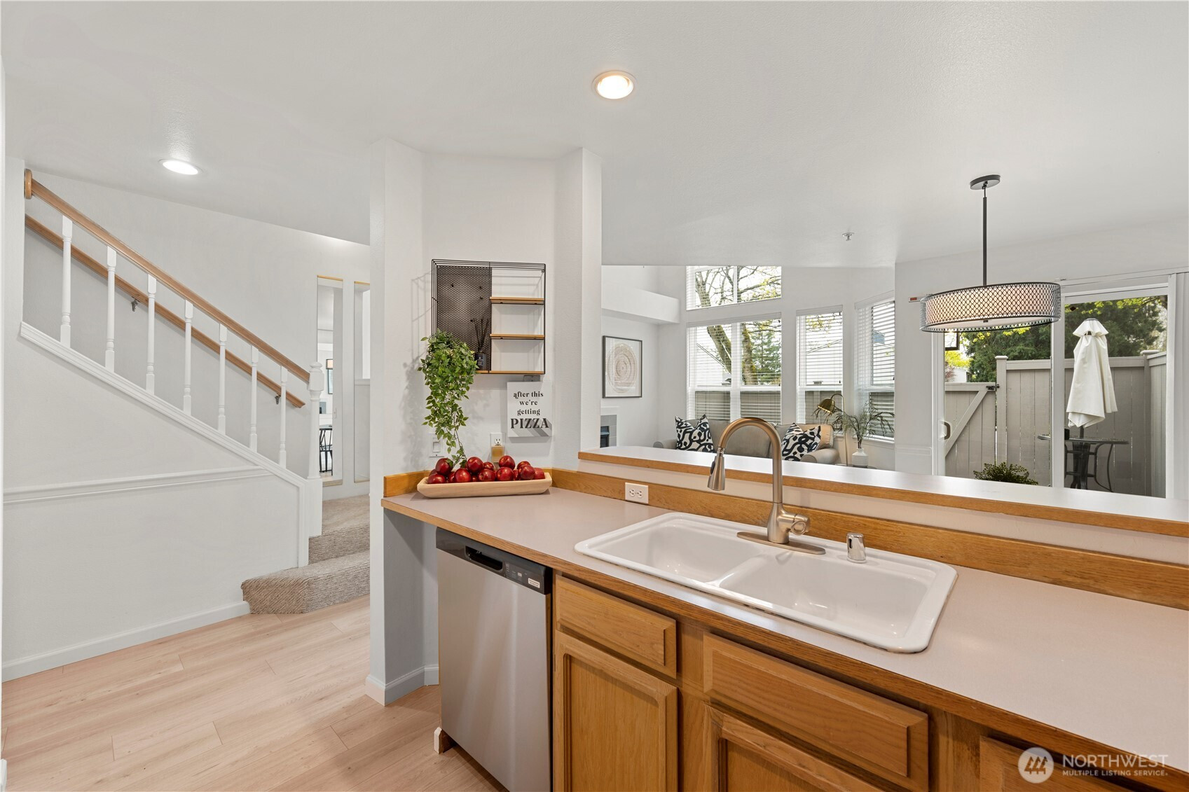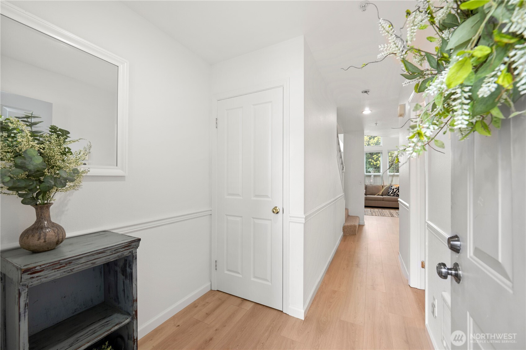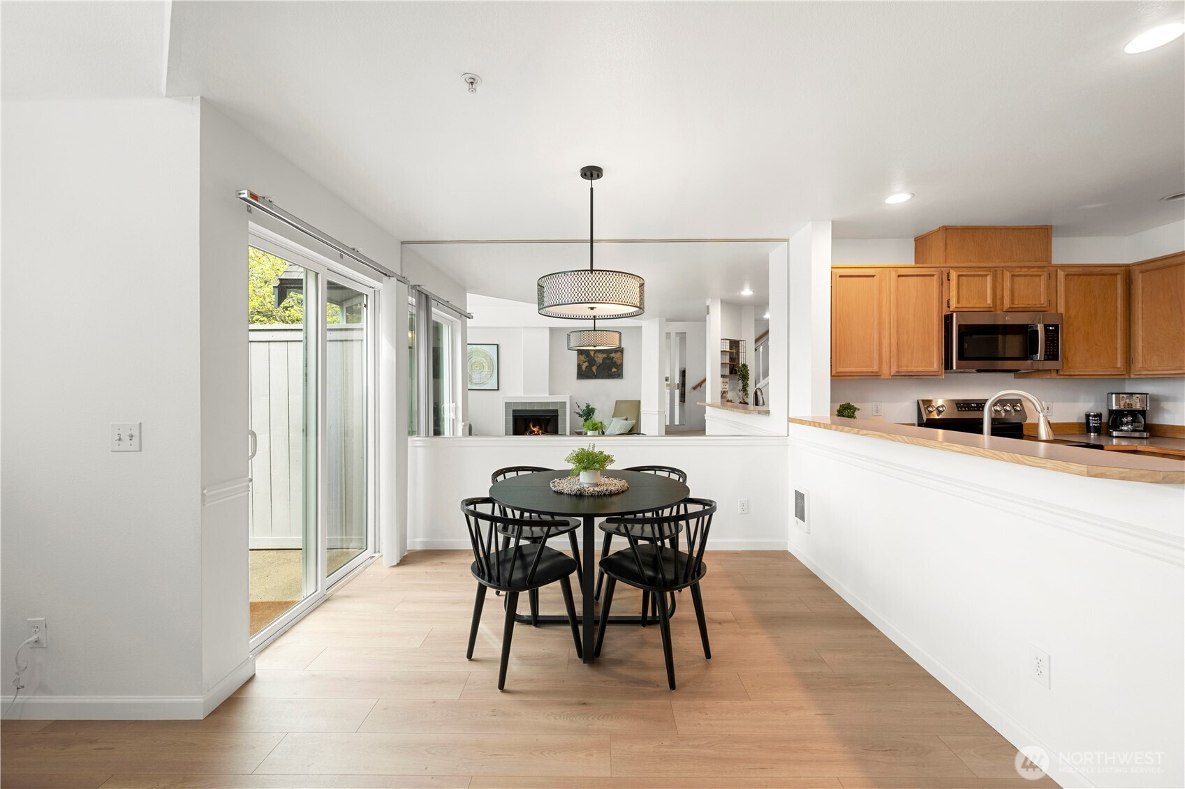 Welcome to this bright and inviting two-story condo located in the desirable Village on James. A gated community known for convenience and comfort. HOA dues include water, sewer, natural gas, garbage, road maintenance, and access to community amenities. The main level features an open, light-filled layout with all-new kitchen appliances, a comfortable living room with a gas fireplace, and vaulted ceilings that create an airy feel. Enjoy all-new flooring throughout, adding a fresh, modern touch. Step outside to your private patio, perfect for morning coffee or evening relaxation. An individual one-car garage offers plenty of storage. Upstairs, you’ll find two well-appointed bedrooms, each with its own bathroom, including a generous primary suite with a walk-in closet. Community amenities include an outdoor pool, hot tub, cabana, and exercise room, ideal for year-round enjoyment. All of this in a fantastic location near Kent Station, shopping, dining, and major freeways, making commuting and daily errands a breeze. All furniture currently in the home is available to stay with the home.