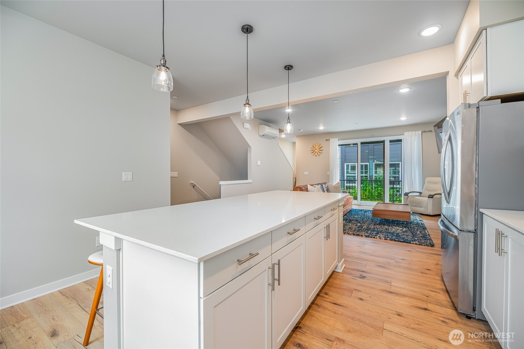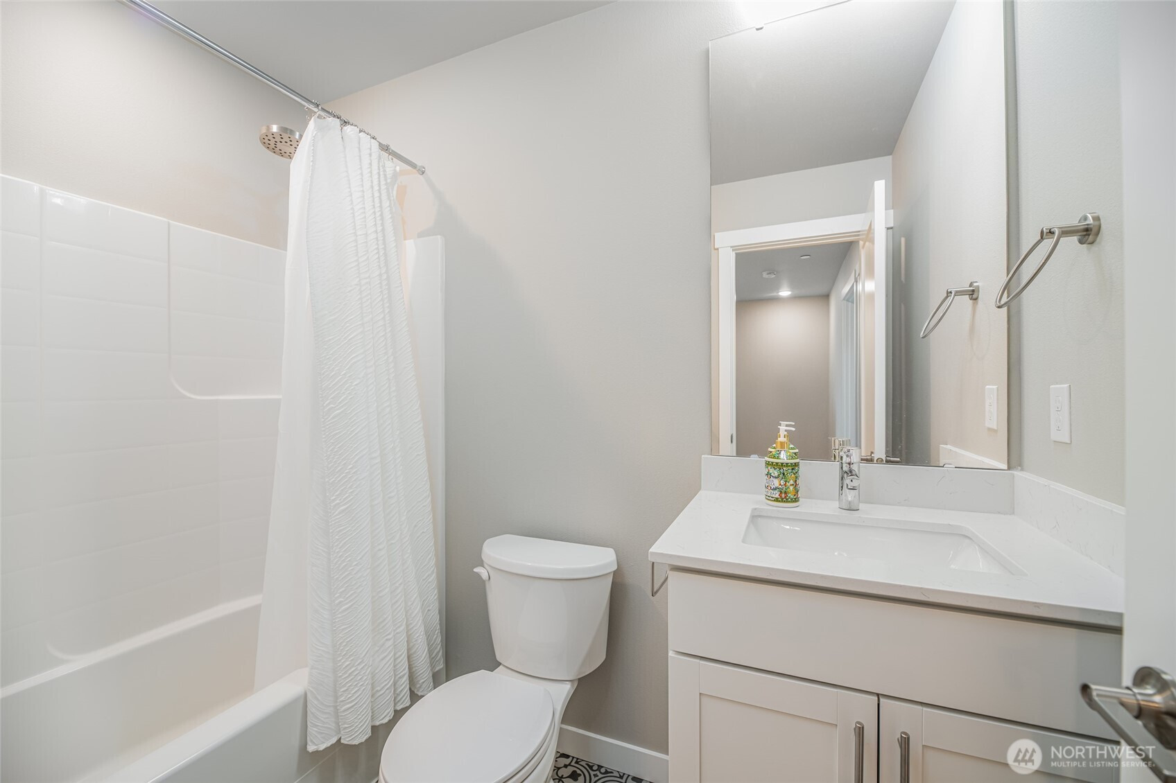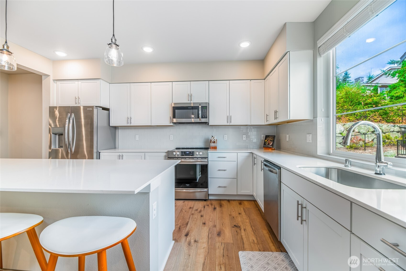 This home offers a thoughtfully planned space in the sought-after Northshore School District! The open-concept main floor features durable Evoke flooring, a spacious kitchen with an oversized island perfect for entertaining, and a large living area with an electric fireplace. The primary suite includes a spa-like bath, while the covered, heated outdoor living space is ideal year-round. An entry-level bedroom with private bath provides flexibility for guests or a home office. Community amenities include a private dog park, playground, and shared open spaces. Conveniently located near I-5 and I-405, this home blends modern style, function, and connectivity in one perfect package! Low HOA covers insurance, gutter cleaning, and pest control.