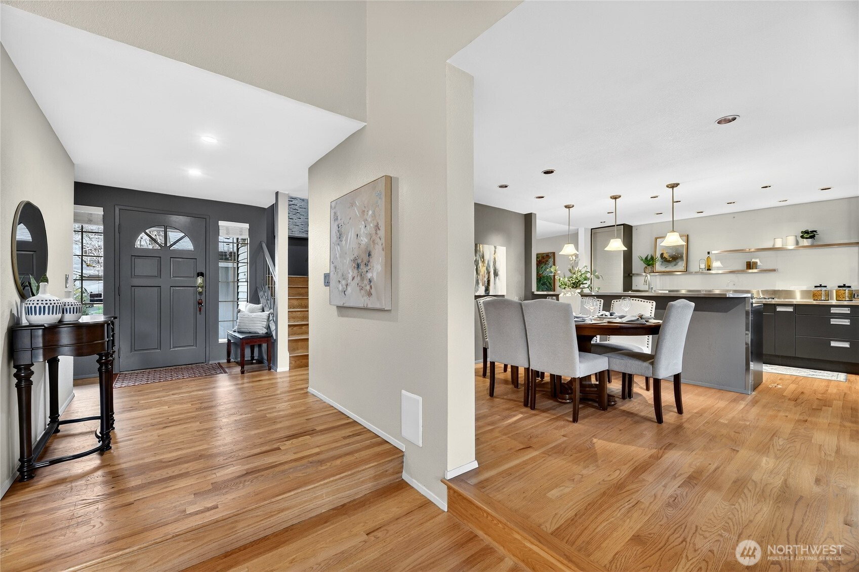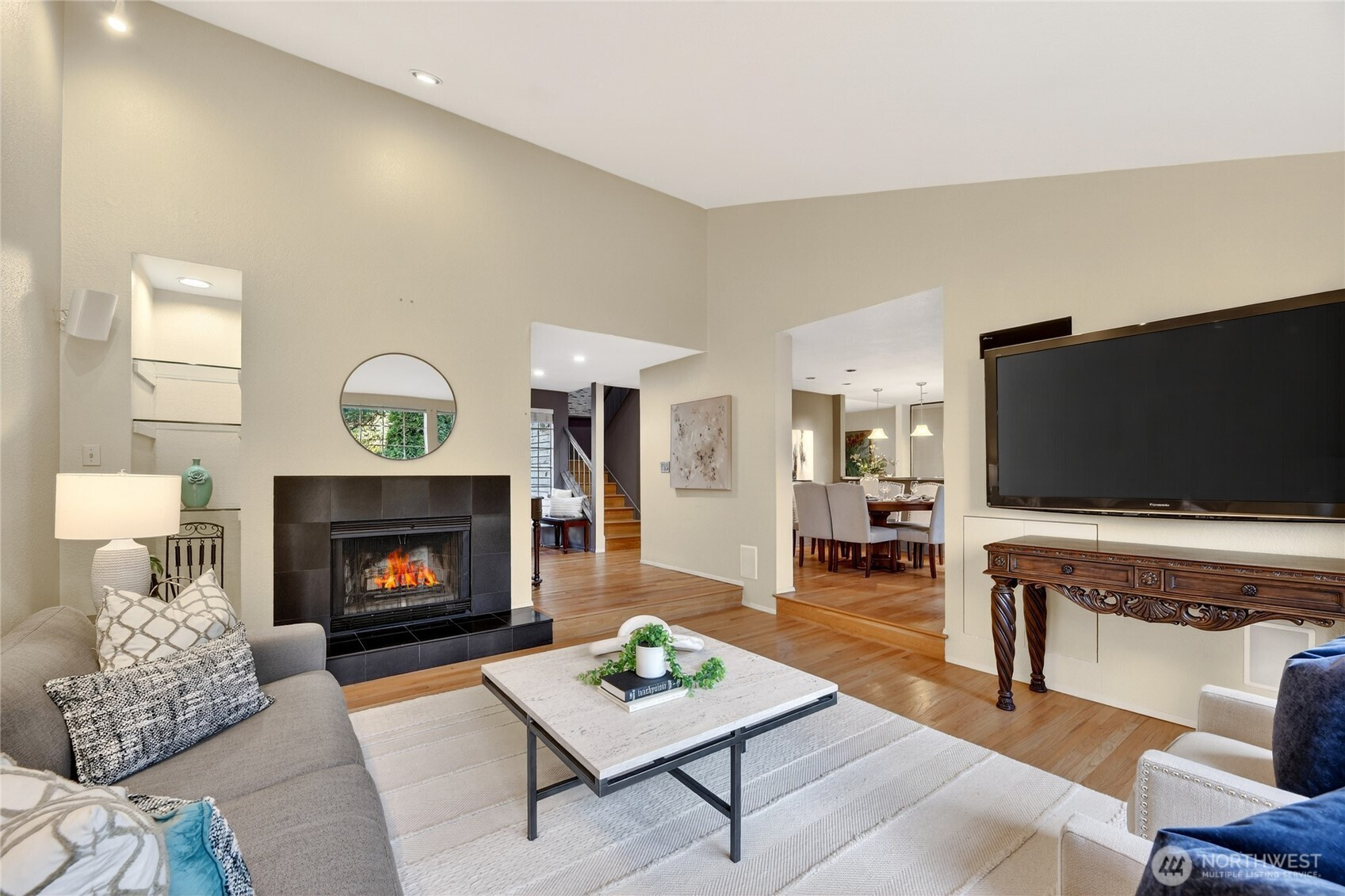 Elegant & impeccably maintained townhome nestled within sought-after Pembrook Meadows community in Bellevue’s desirable Newport Hills. Tucked away on a quiet cul-de-sac & surrounded by beautifully maintained grounds, this residence offers one of the community’s largest & most desirable floorplans with 1,860 SF of thoughtfully designed living space.The home welcomes you w/warm hardwood floors & a gracious sunken living room centered around a classic fireplace & framed by expansive windows that fill the space w/natural light. The beautifully updated chef’s kitchen features stainless appliances, modern cabinetry & generous workspace, creating a sophisticated setting for everyday living & entertaining. The kitchen flows seamlessly to the dining area & comfortable family room, while two sets of French doors open to a private patio & peaceful yard surrounded by mature landscaping—ideal for outdoor dining or relaxing evenings. Upstairs, the spacious primary suite offers vaulted ceilings & a serene retreat, complemented by a well-appointed bath with soaking tub & separate shower. A second bedroom & additional bath provide flexibility for guests or a home office. Residents enjoy resort-style amenities including clubhouse, heated pool, tennis & pickleball courts set in beautifully maintained community grounds. Detached two-car garage, driveway & guest parking nearby. Ideally located minutes to parks, shopping, dining, coffee shops & downtown Bellevue with easy access to I-405 & I-90.