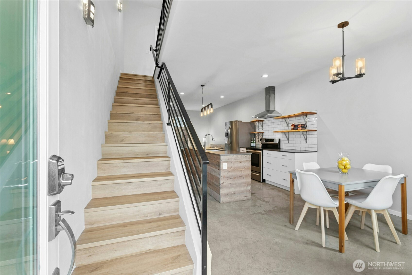 Like-New. Experience modern industrial living in the heart of vibrant Georgetown. This stunning townhome blends sustainability w/ style, featuring concrete floors, reclaimed wood accents, all new interior paint & LVP flooring/stairs at other levels. Enjoy flexible living w/ 2 bedrooms plus an office room, for work or guests. The primary suite opens to a spacious covered deck, while the fenced yard/patio offers space for entertaining. You’ll find two beautifully appointed ¾ baths w/ heated floors upstairs & a powder room at main level. Good parking w/ dedicated space in the alley. Located on the bus line & just steps from Georgetown’s eclectic restaurants, breweries & shops. Easy access to I-5, Hwy 99 & DT Seattle makes commuting a breeze.