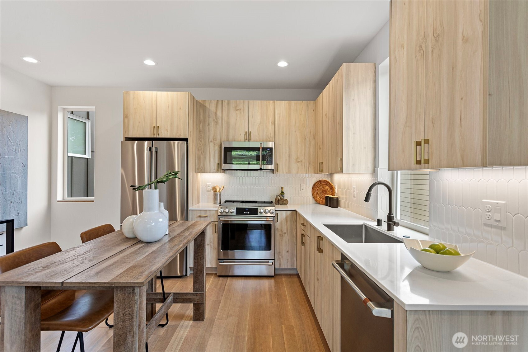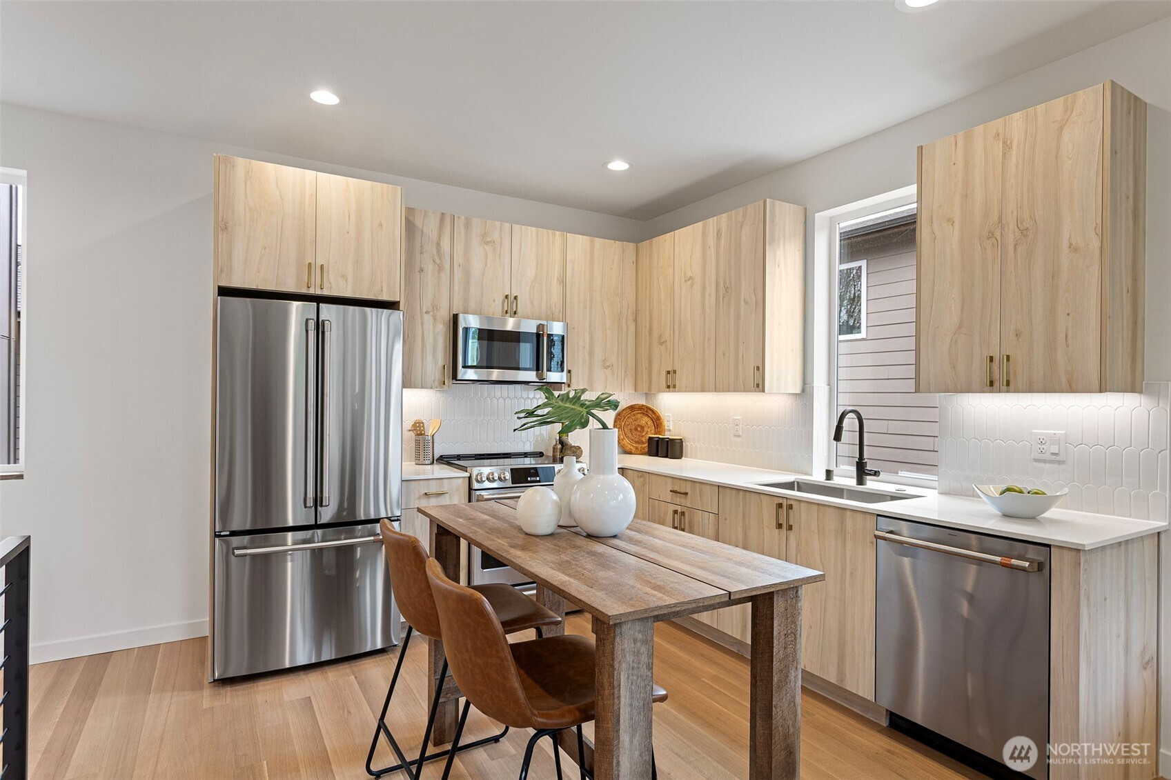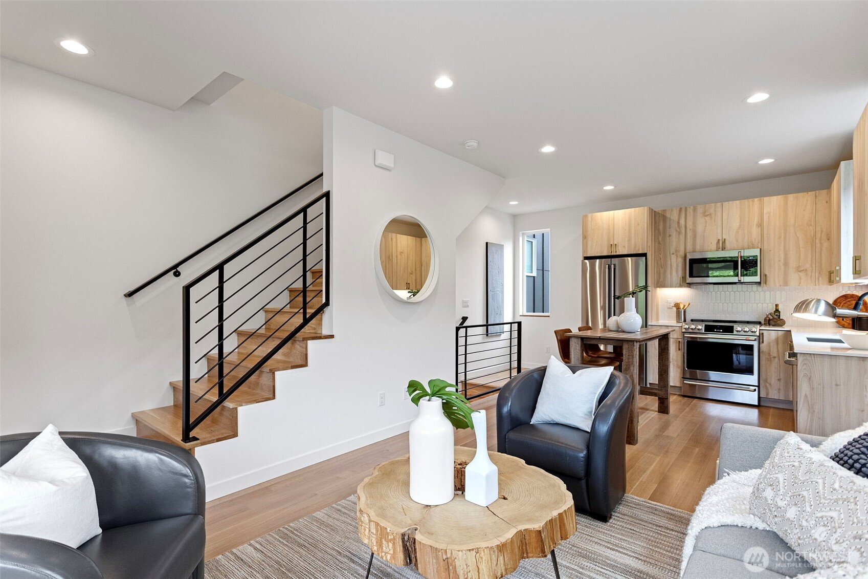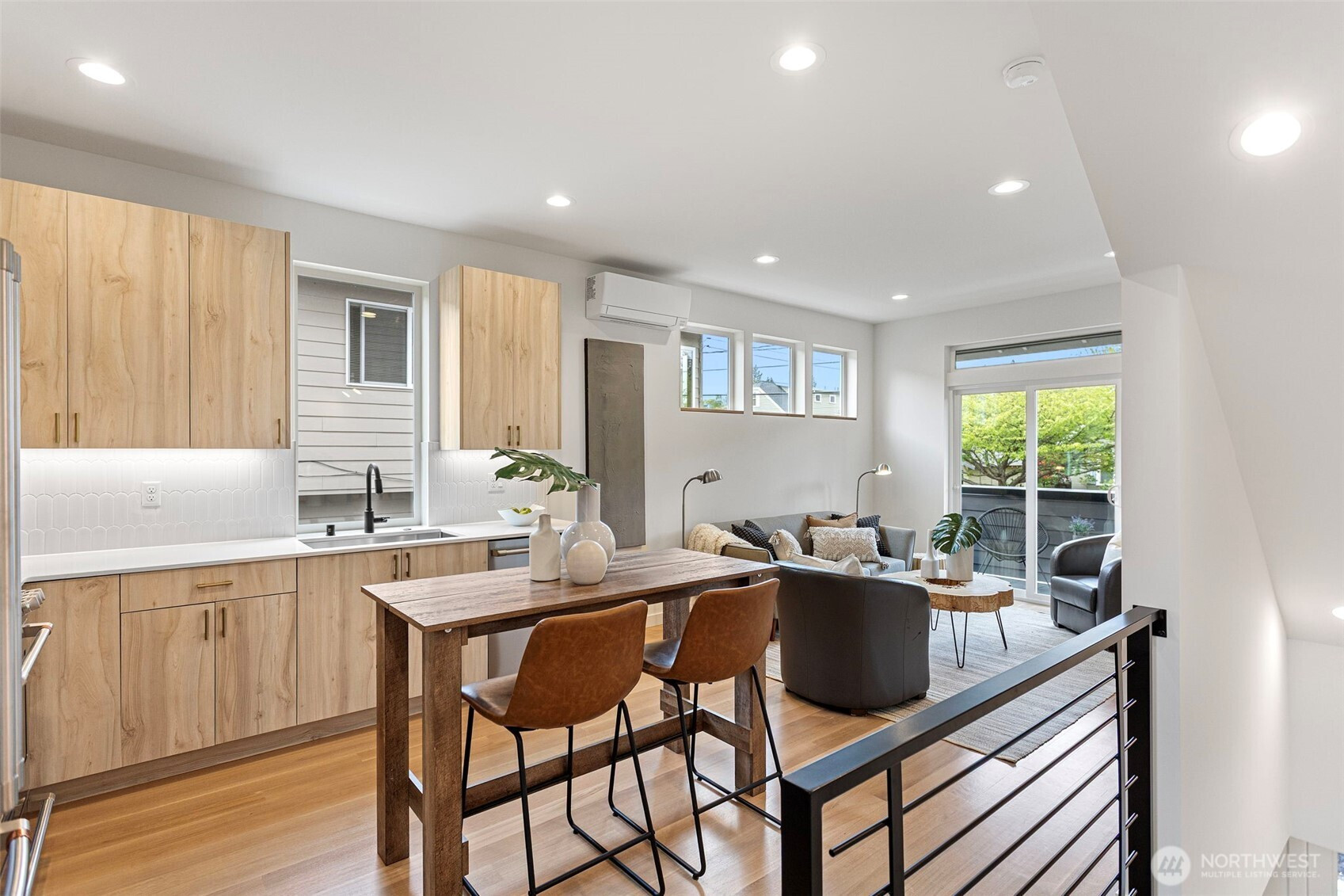Experience elevated modern living in this impeccably crafted and perfectly located new construction home in the sought-after Loyal Heights neighborhood by Pivotal Homes. Designed with both sophistication and practicality in mind, this residence features 2 bedrooms and 2.25 baths, offering a seamless blend of contemporary style and everyday livability. Dramatic vaulted ceilings and expansive full-height windows bathe the home in natural light, enhancing the open-concept design and showcasing the beautiful real hardwood floors throughout. The thoughtfully appointed kitchen has high-quality finishes and effortlessly connects to the main living area—ideal for both entertaining and unwinding. On the main level, a flexible space serves perfectly as a storage area/office/or play room, adding versatility to the layout. Additional features include A/C units in the bedrooms, convenient parking with EV charging, and an unbeatable location just minutes from Ballard’s vibrant shops, dining, and nightlife. A rare opportunity to enjoy modern design, sustainable living, and urban convenience in one exceptional home.