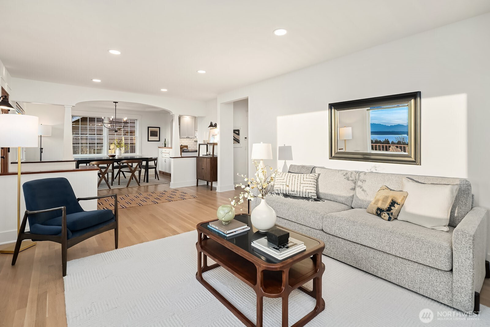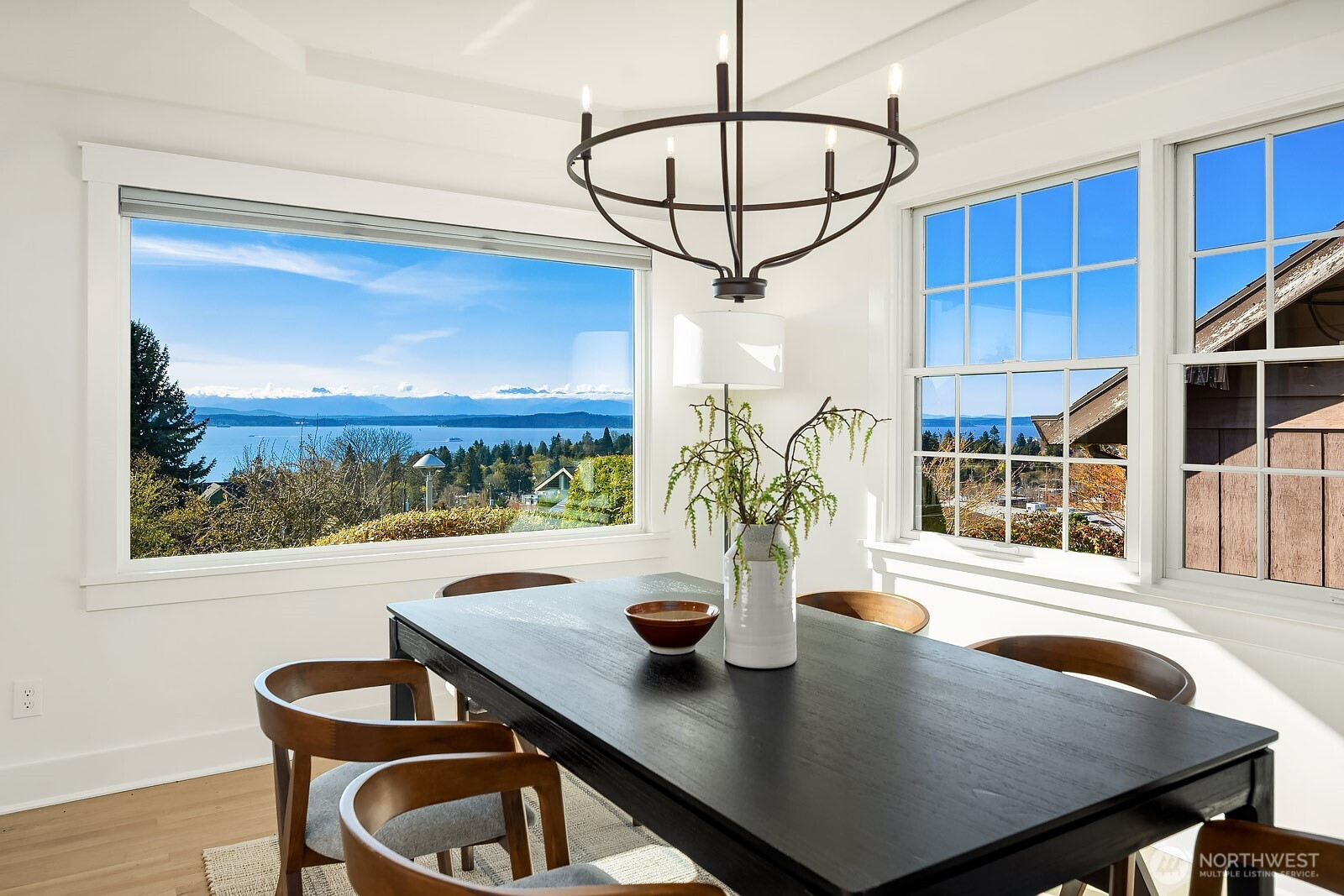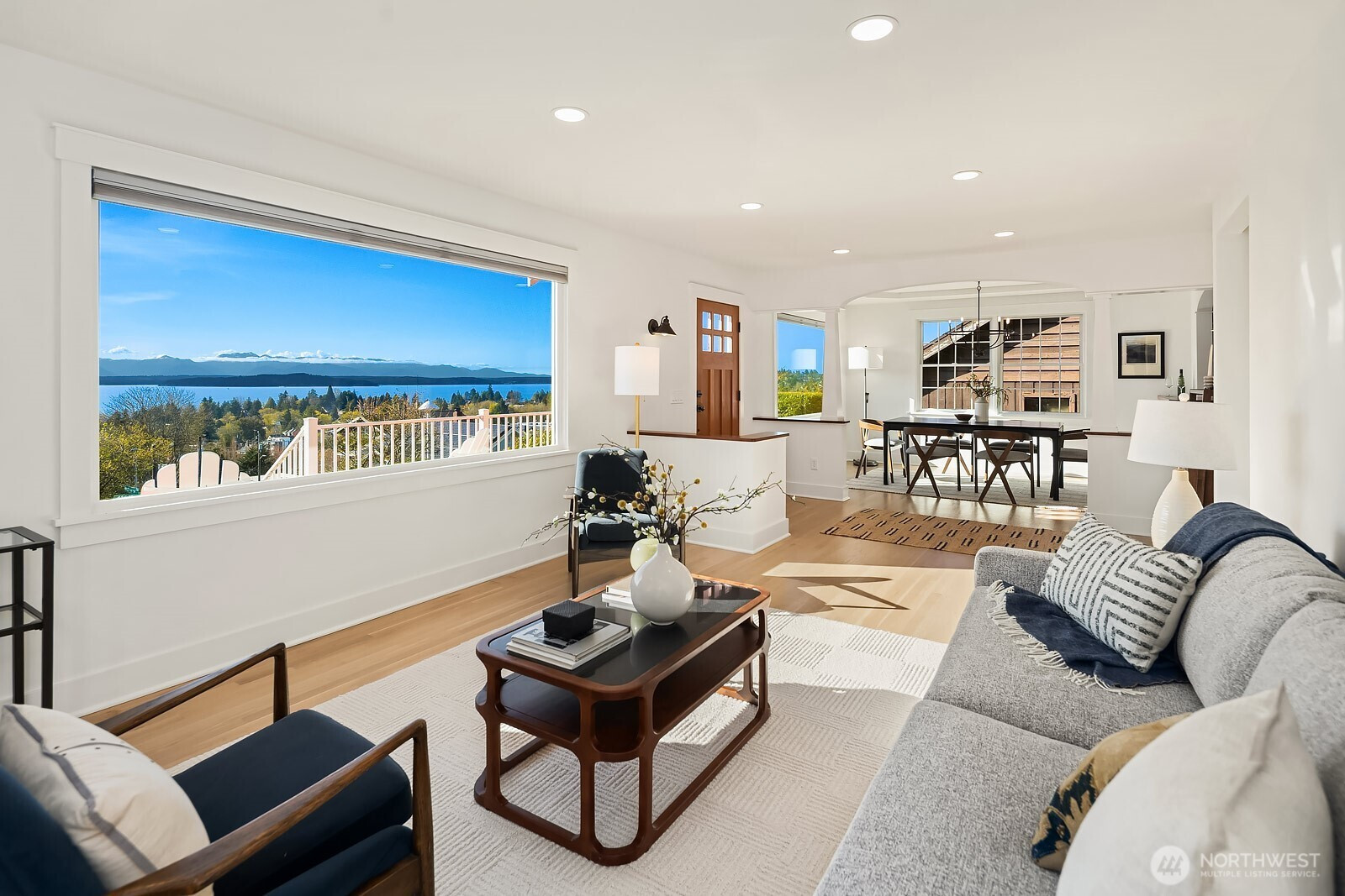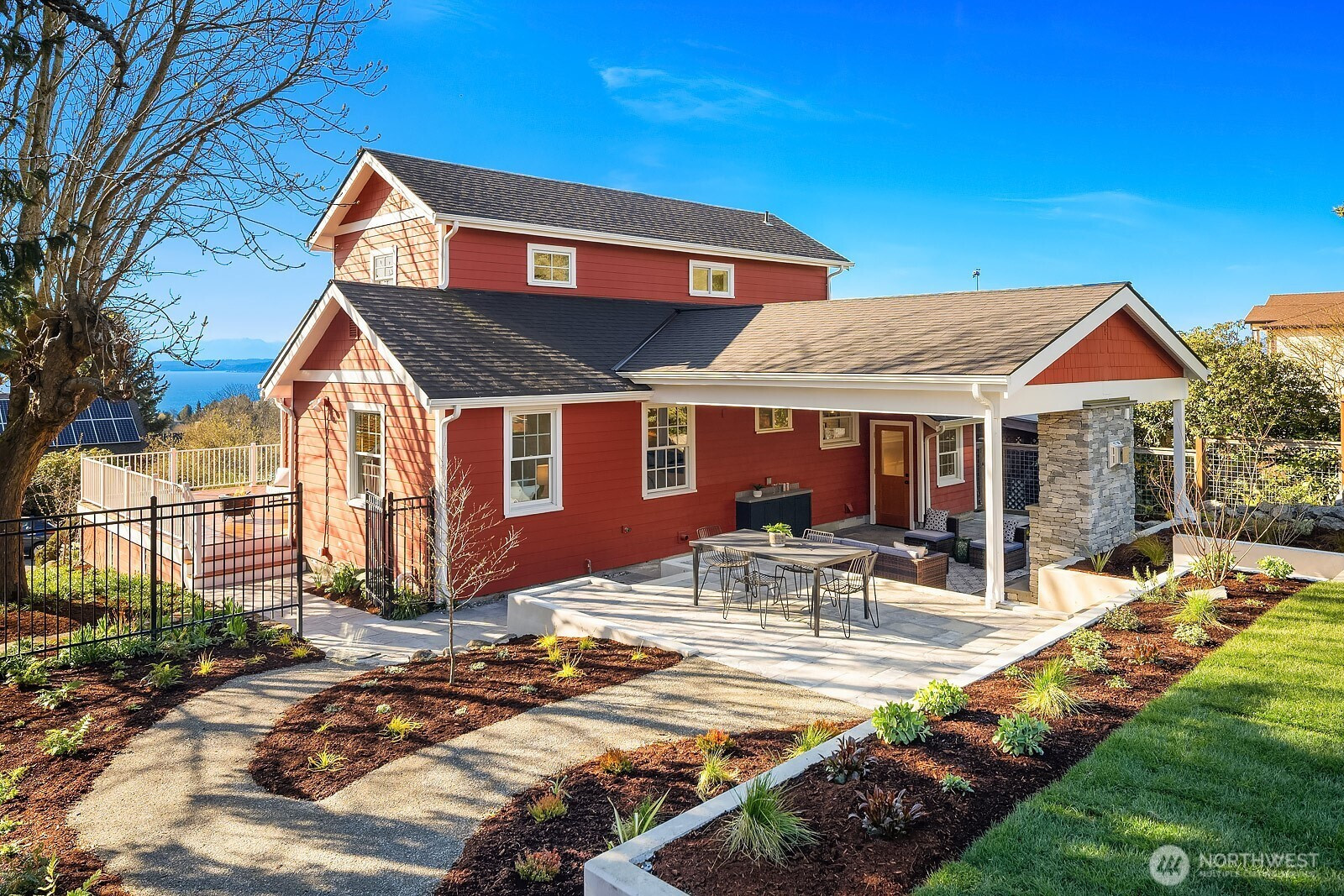 Perched atop Gatewood Hill with sweeping, unobstructable Puget Sound & Olympic Mountain views, this extensively remodeled Craftsman is a rare offering that pairs timeless character with thoughtful, system-level upgrades. The outdoor spaces are as functional as they are inviting. A spacious front deck is perfectly positioned for sunset views over the Olympics, while the covered back patio with a gas fireplace extends your living space year-round. The beautifully reworked grounds feature new hardscape, a generous lawn, and garden spaces on a nearly 11,000 SF lot. Inside, white oak hardwood floors, large windows, and abundant natural light create inviting spaces that feel connected to the outdoors. The upper level serves as a private retreat with commanding views, while the lower level offers flexible living space. Lovingly rebuilt over time, this home goes far beyond cosmetic updates. Major improvements include new siding, windows, roof, floors, electrical, plumbing, sewer, and drainage—along with rare in-floor hydronic radiant heat for efficient, even comfort throughout. Located just above Morgan Junction, with easy access to Lincoln Park, the Fauntleroy Ferry, local coffee shops, restaurants, and everyday amenities. Pacific Northwest living at its finest.