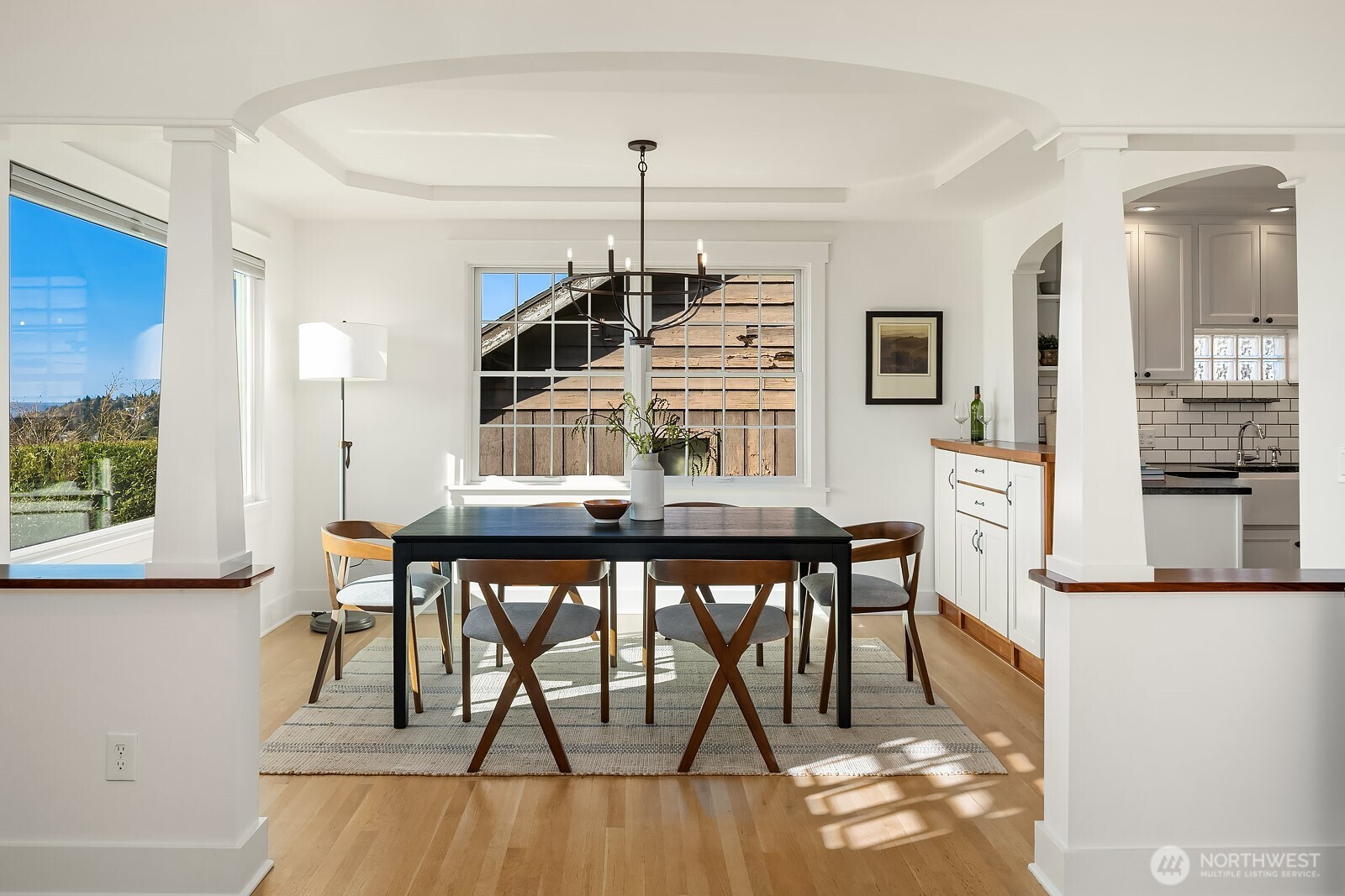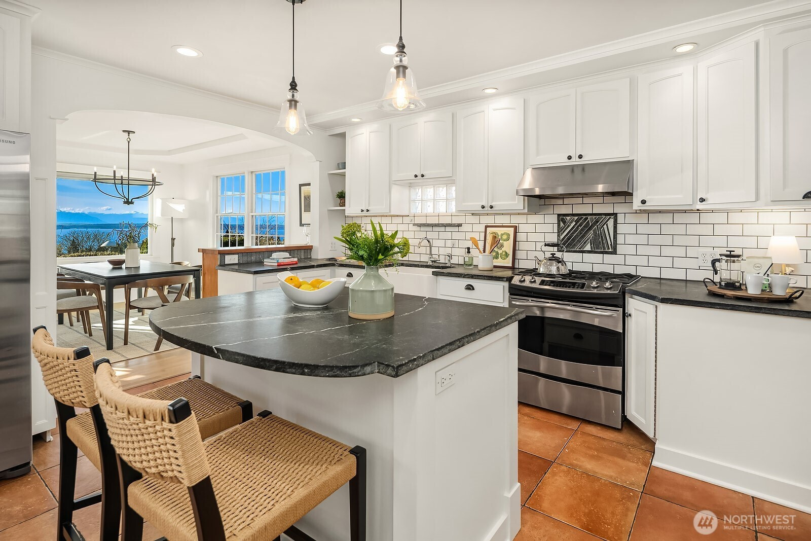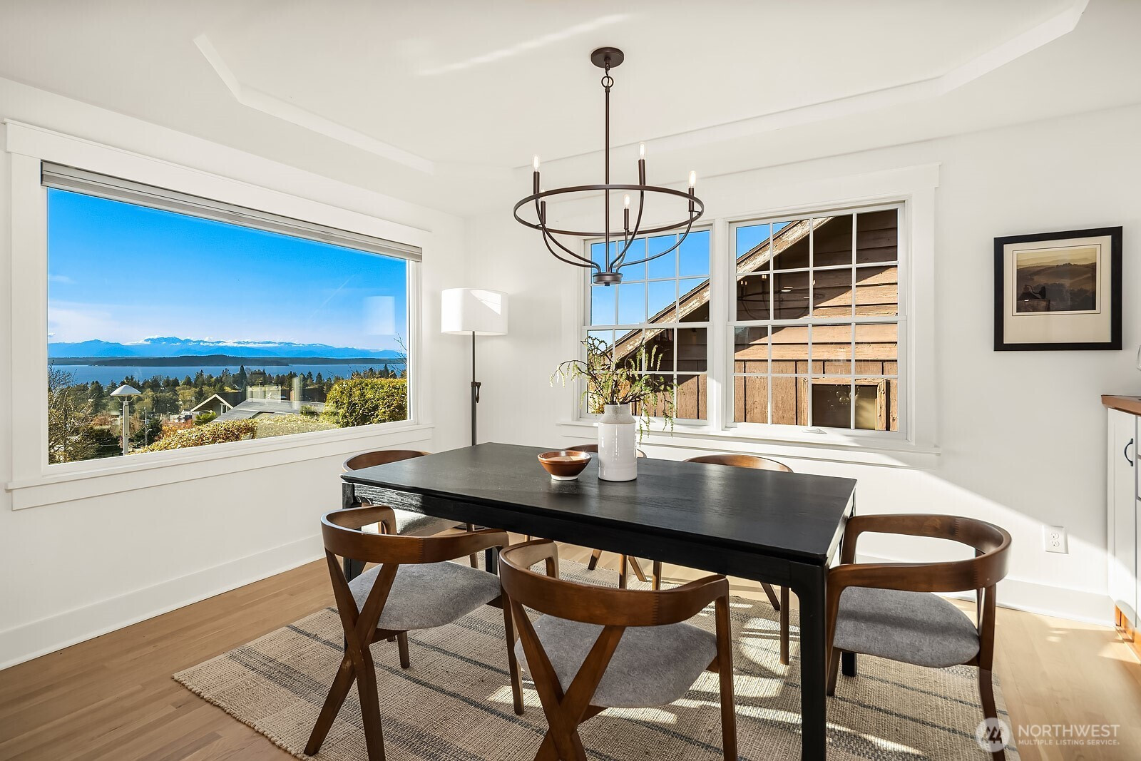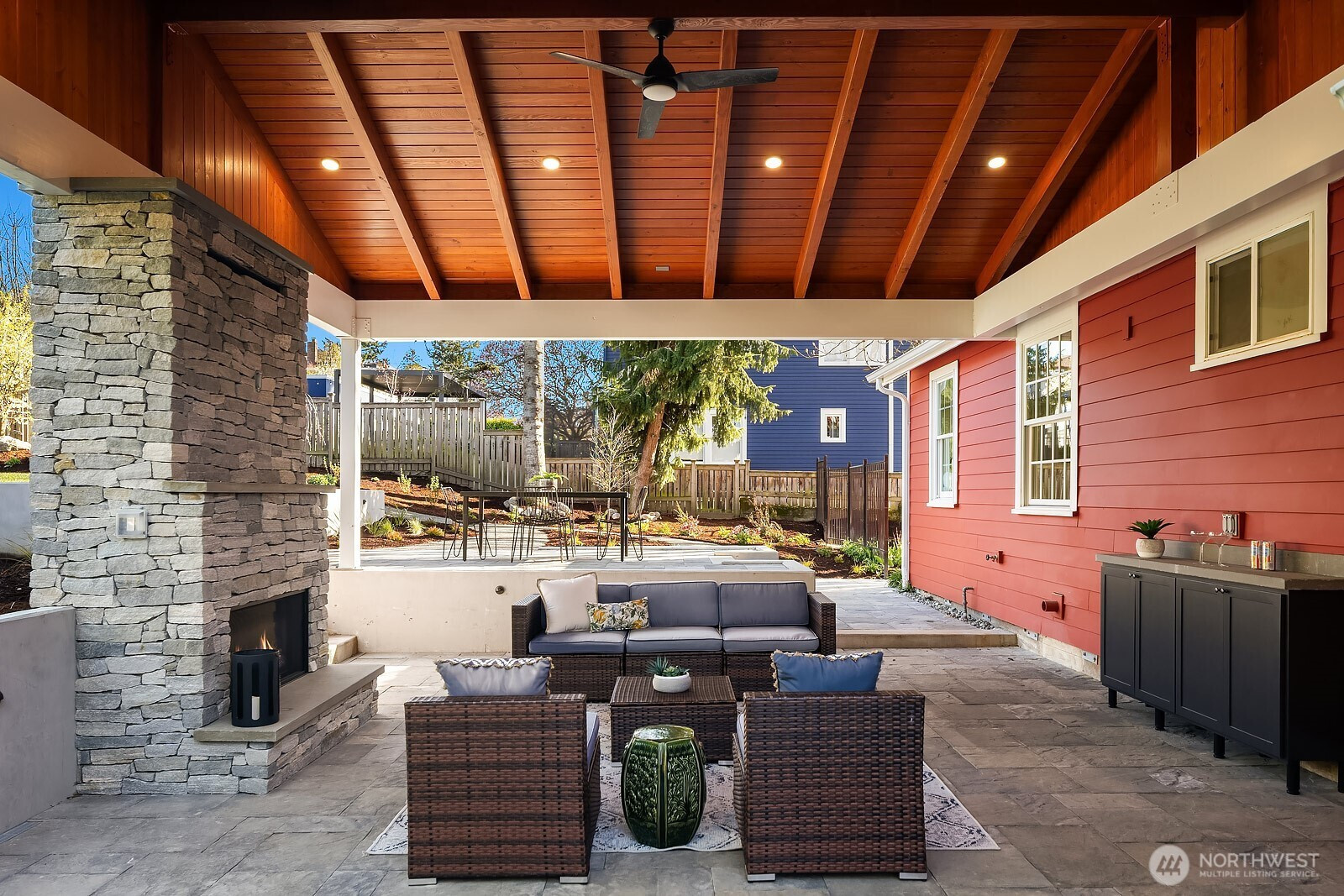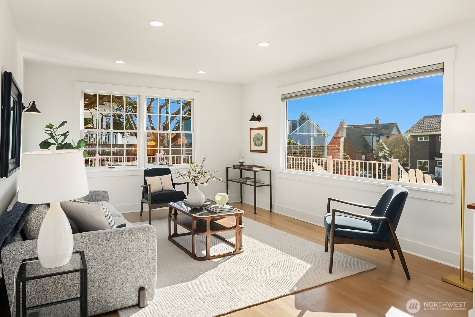 Perched atop Gatewood Hill with sweeping, unobstructable Puget Sound & Olympic Mountain views, this extensively remodeled Craftsman is a rare offering that pairs timeless character with thoughtful, system-level upgrades. The outdoor spaces are as functional as they are inviting. A spacious front deck is perfectly positioned for sunset views over the Olympics, while the covered back patio with a gas fireplace extends your living space year-round. The beautifully reworked grounds feature new hardscape, a generous lawn, and garden spaces on a nearly 11,000 SF lot. Inside, white oak hardwood floors, large windows, and abundant natural light create inviting spaces that feel connected to the outdoors. The upper level serves as a private retreat with commanding views, while the lower level offers flexible living space. Lovingly rebuilt over time, this home goes far beyond cosmetic updates. Major improvements include new siding, windows, roof, floors, electrical, plumbing, sewer, and drainage—along with rare in-floor hydronic radiant heat for efficient, even comfort throughout. Located just above Morgan Junction, with easy access to Lincoln Park, the Fauntleroy Ferry, local coffee shops, restaurants, and everyday amenities. Pacific Northwest living at its finest.