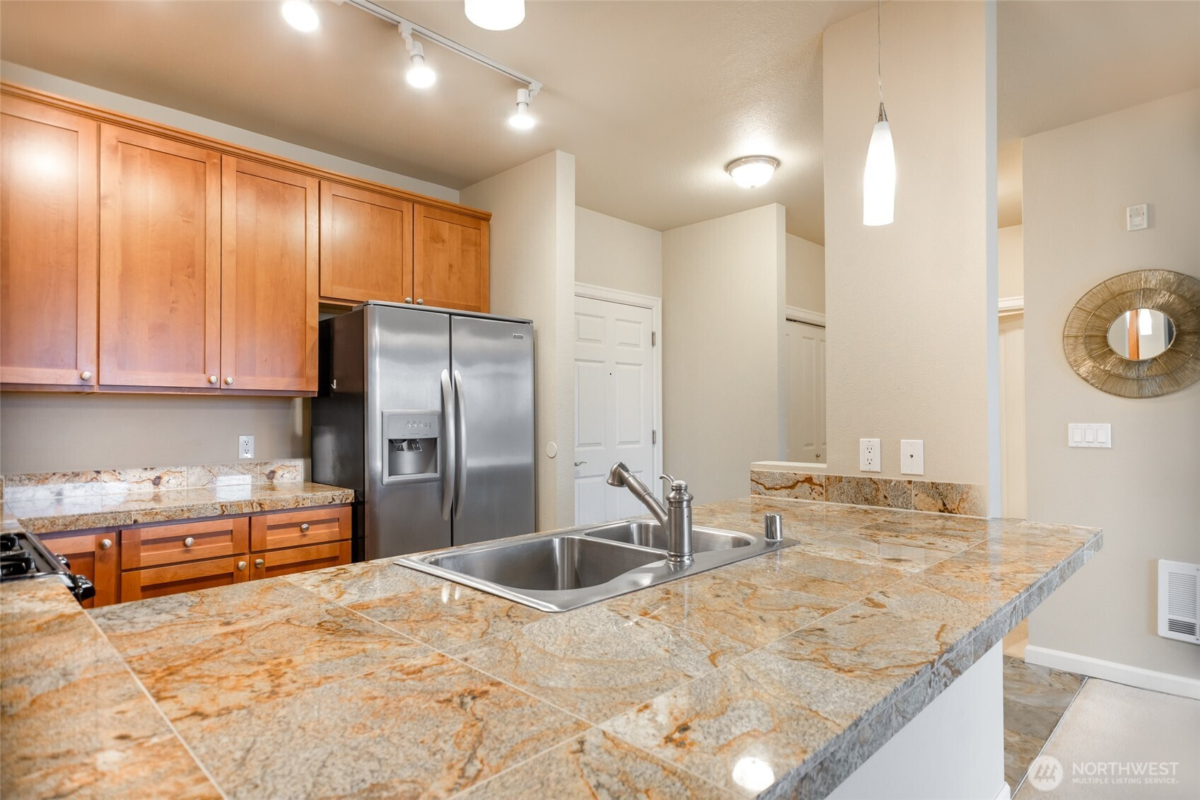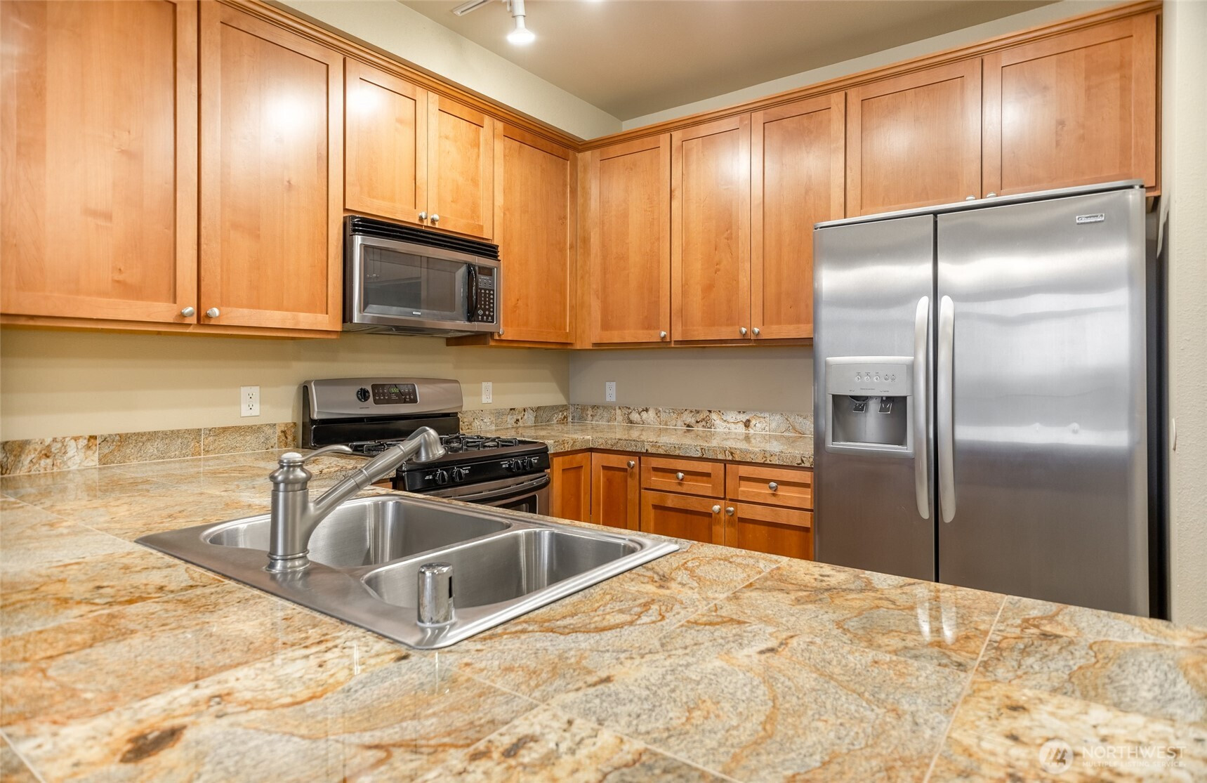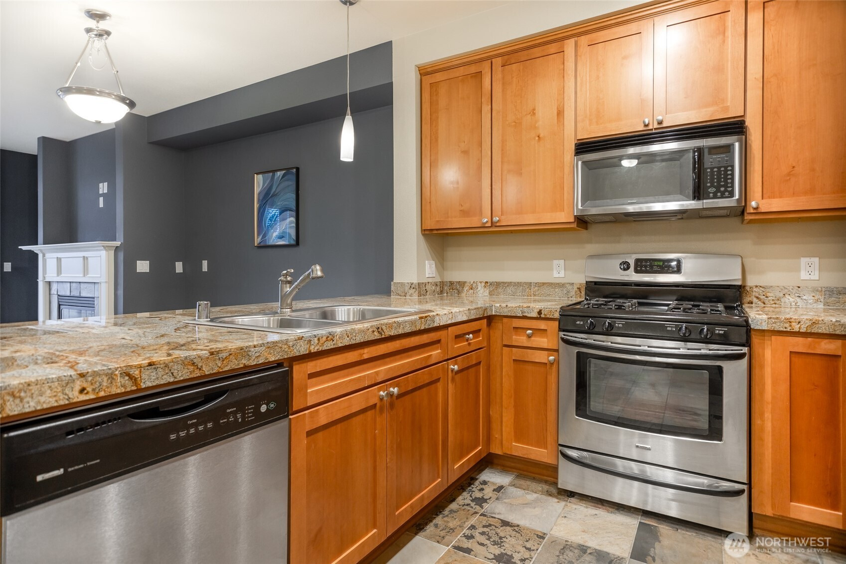 Welcome to The Approach in the heart of Newcastle! Pristine, open-concept 1Br/1Bath offers spacious dining and living area, 9 foot ceilings, cozy fireplace, ample kitchen with granite counter tops, S/S appliances, breakfast bar and in-unit washer/dryer. Good size bedroom has plenty of closet space and well-appointed bathroom. Two assigned parking spaces (1 in secured garage & 1 uncovered) Enjoy the entertainment-ready balcony and take in the territorial views. Secured building features inviting lobby & furnished courtyard. Phenomenal location within walking distance to shopping, restaurants and just moments to golf club, area trails, YMCA & parks. Easy access to I-90, 405, SeaTac Airport, Bellevue. No Rental Cap! Issaquah Schools.