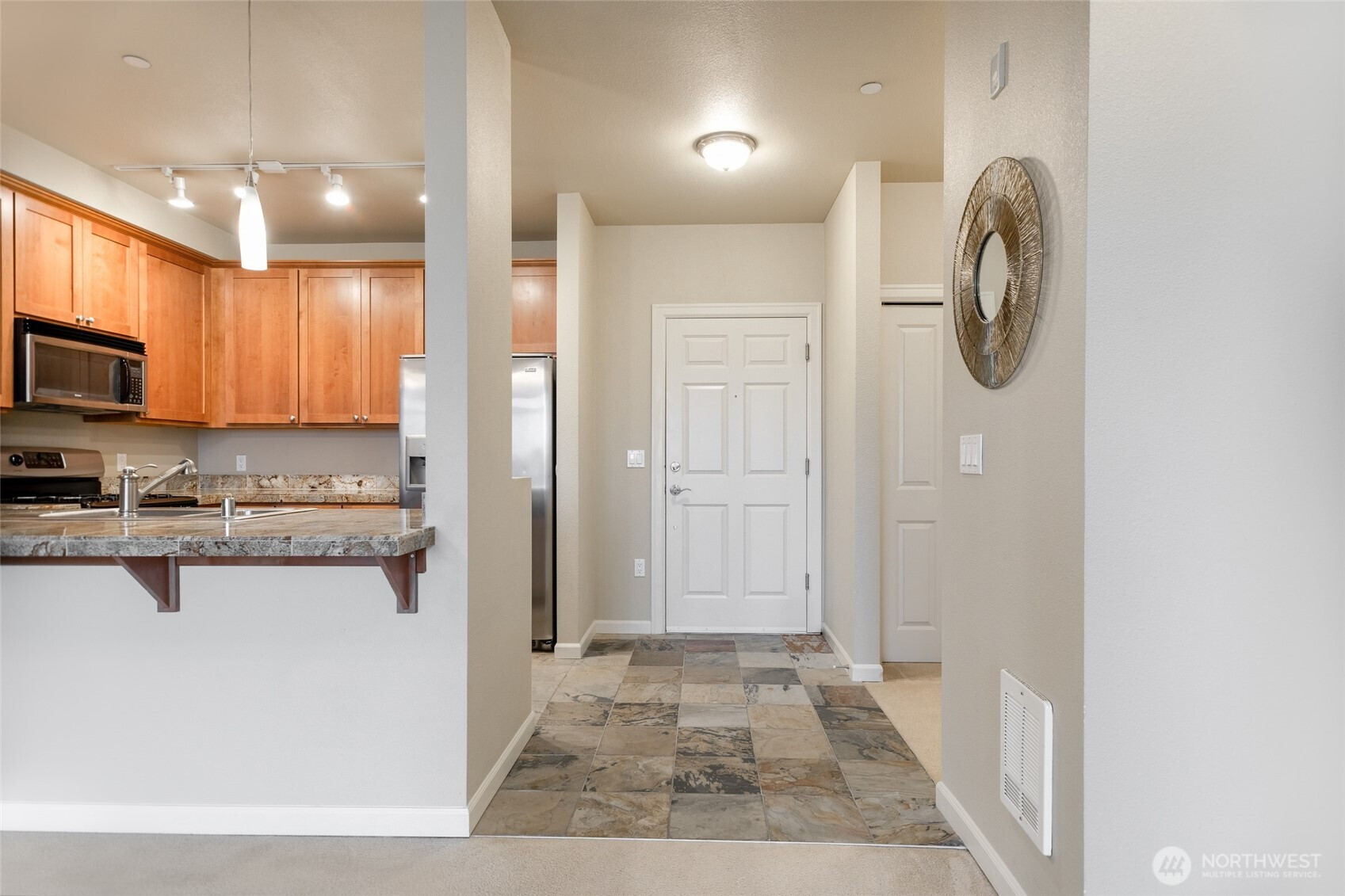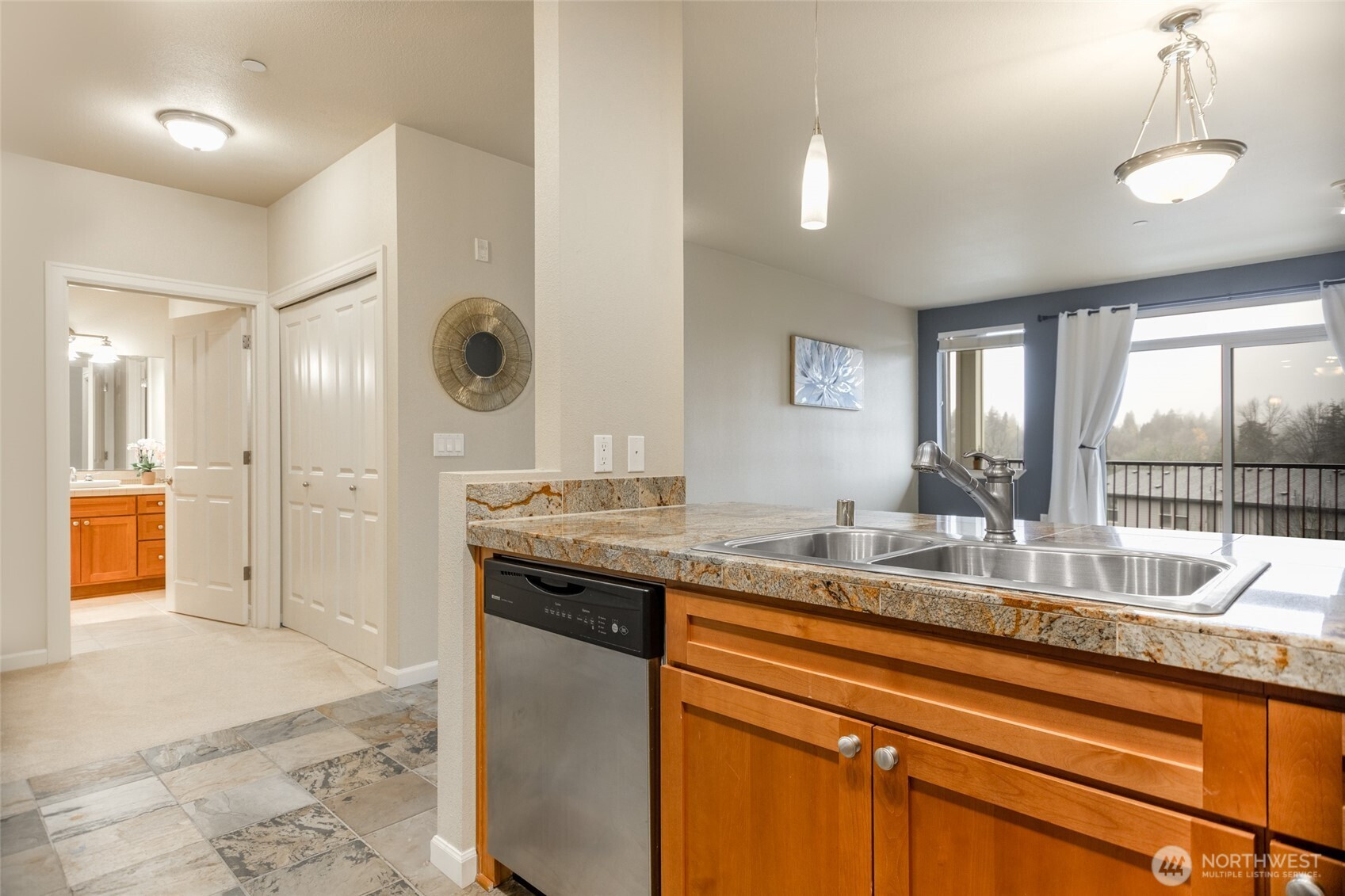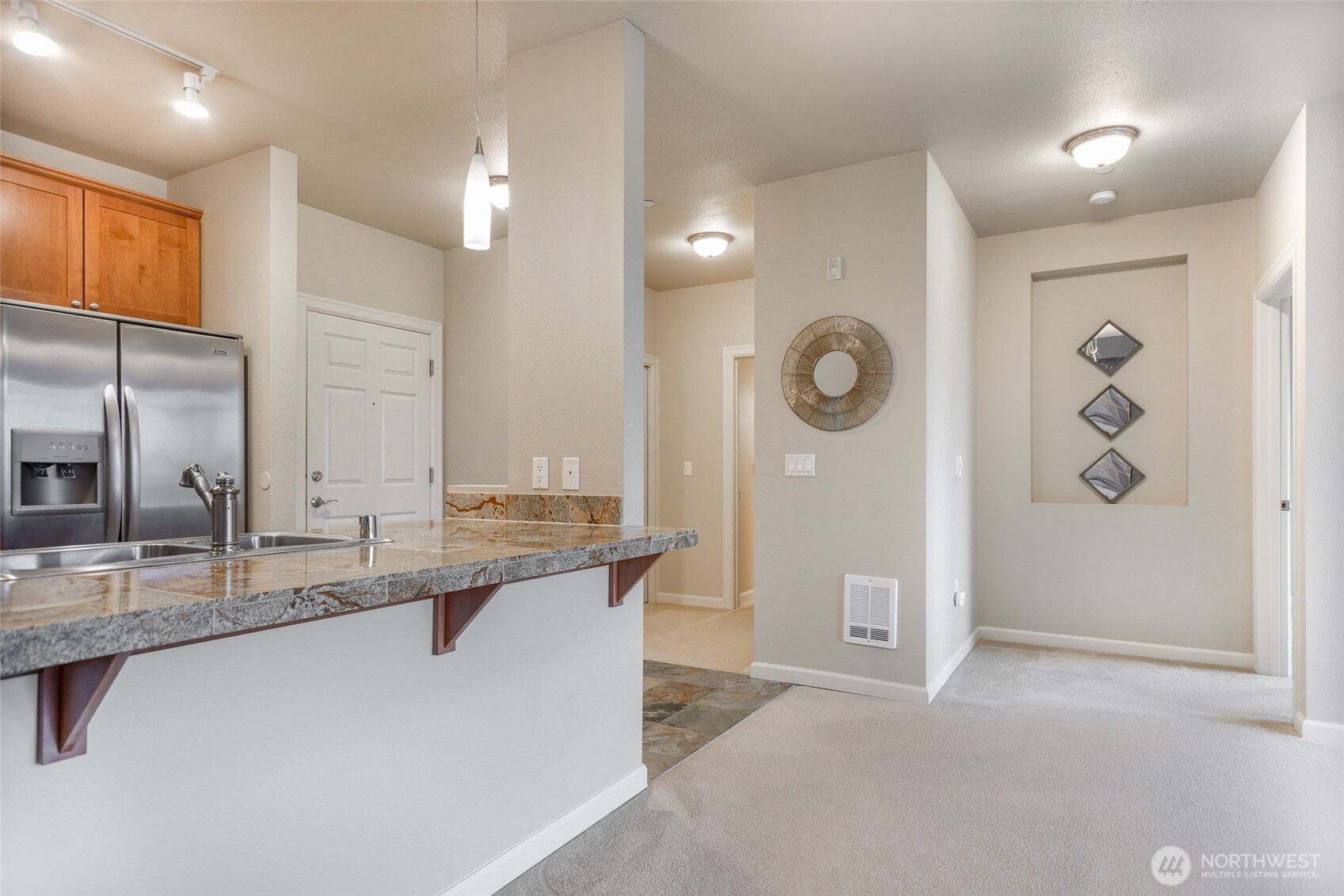 Welcome to The Approach in the heart of Newcastle! Pristine, open-concept 1Br/1Bath offers spacious dining and living area, 9 foot ceilings, cozy fireplace, ample kitchen with granite counter tops, S/S appliances, breakfast bar and in-unit washer/dryer. Good size bedroom has plenty of closet space and well-appointed bathroom. Two assigned parking spaces (1 in secured garage & 1 uncovered) Enjoy the entertainment-ready balcony and take in the territorial views. Secured building features inviting lobby & furnished courtyard. Phenomenal location within walking distance to shopping, restaurants and just moments to golf club, area trails, YMCA & parks. Easy access to I-90, 405, SeaTac Airport, Bellevue. No Rental Cap! Issaquah Schools.