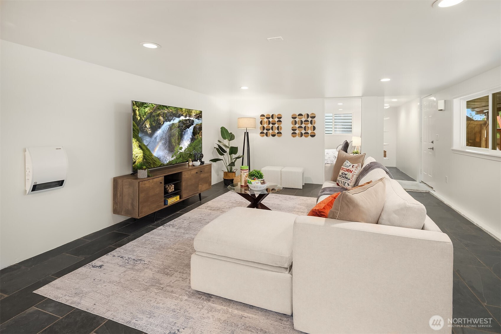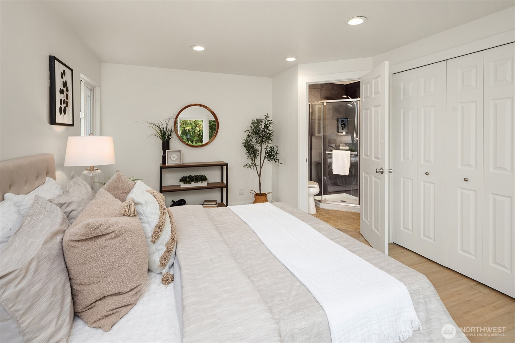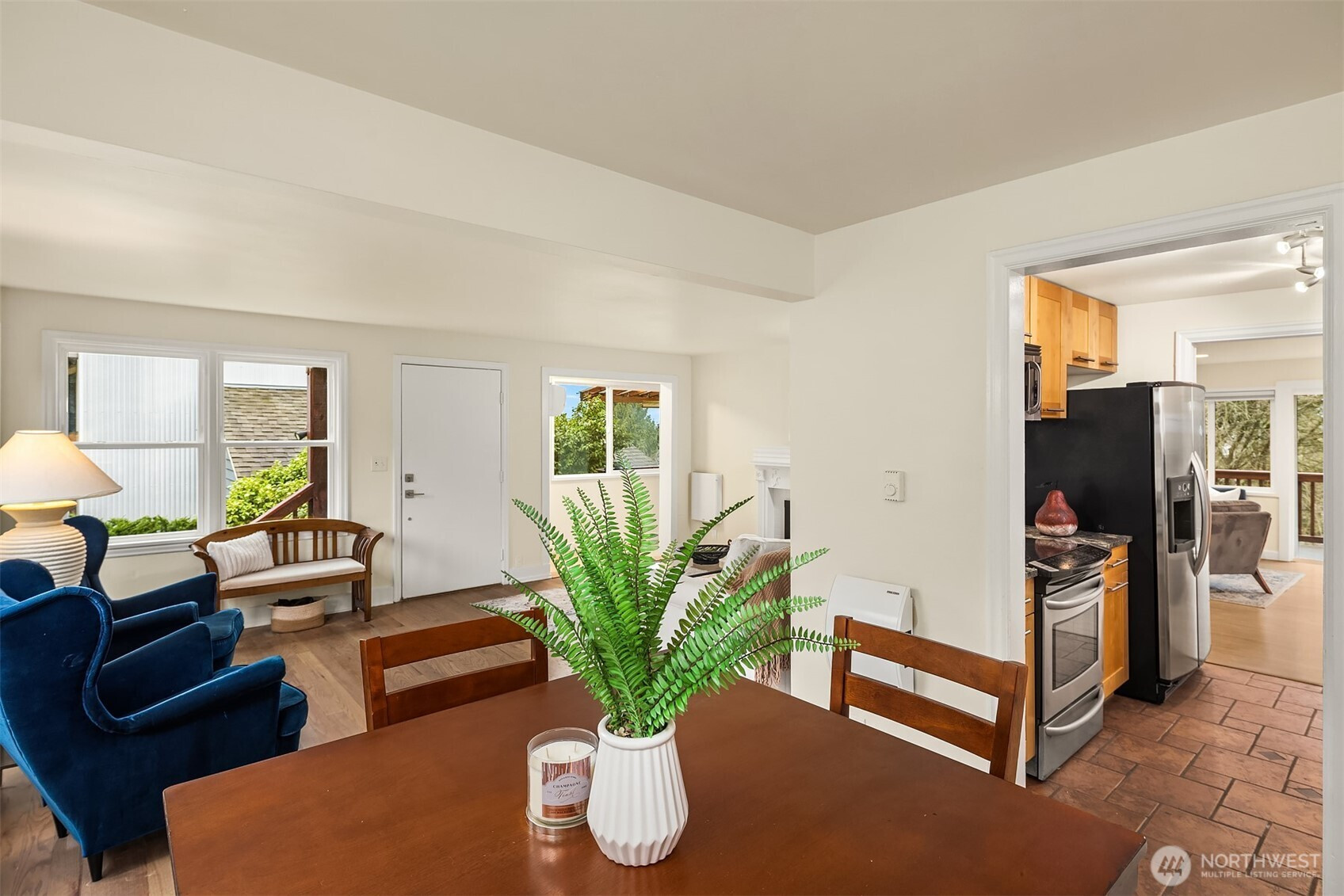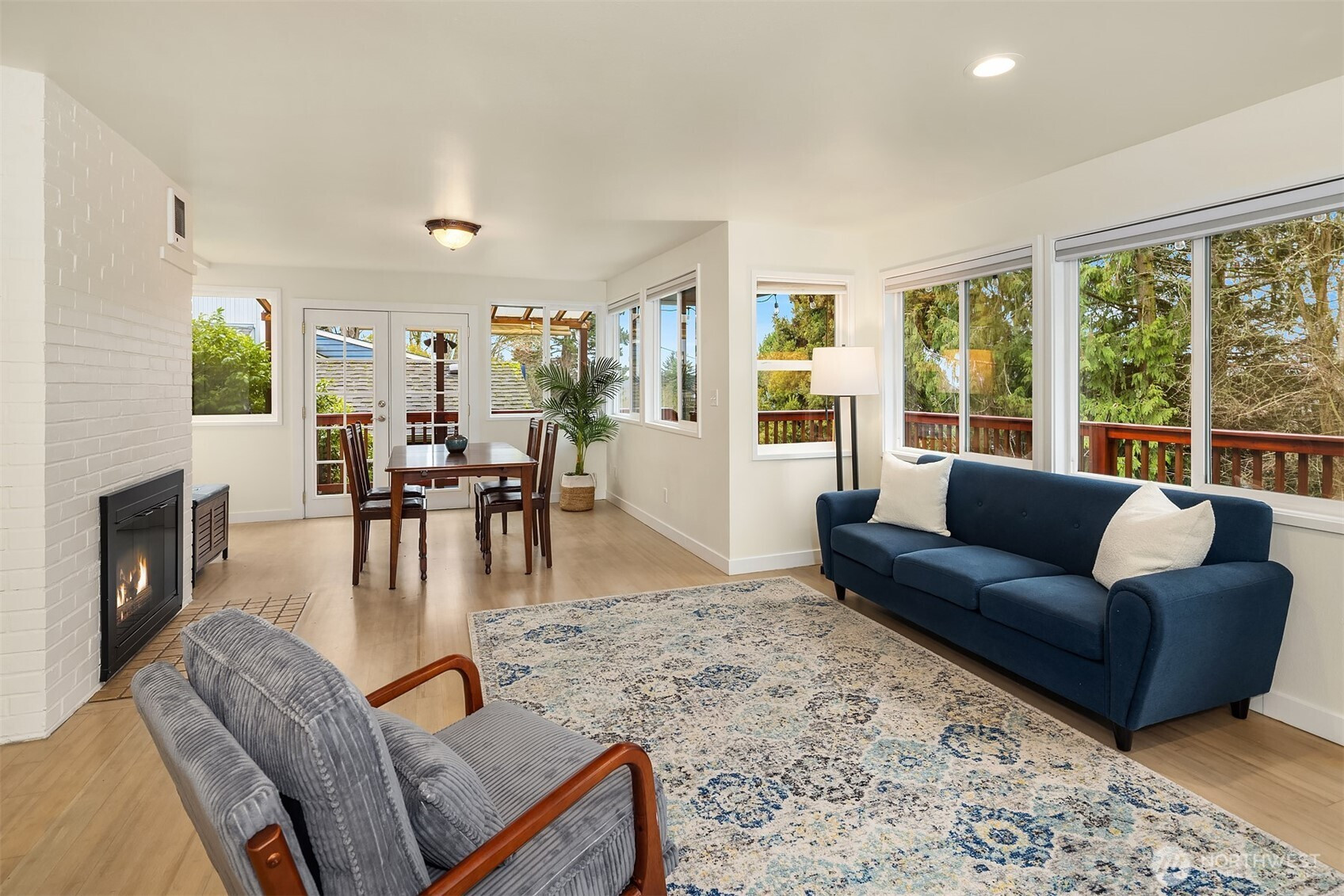 View Ridge retreat offers privacy and tranquility with the convenience of urban living! Inviting main level includes formal living and dining rooms, updated kitchen and a sunlit family room. Walls of windows open to an expansive deck running the full length of the home. Primary bedroom with ensuite bath, plus two additional bedrooms and bath. Potential lower level ADU with private entry features a full kitchen, family room, bedroom, home office and 3/4 bath. Incredibly private, fully fenced front and rear yards. Thoughtful improvements include updated plumbing and electrical, fresh interior paint and refinished hardwood floors. Driveway parking for boat or RV. Fantastic location with access to top rated schools and community parks, welcome home!