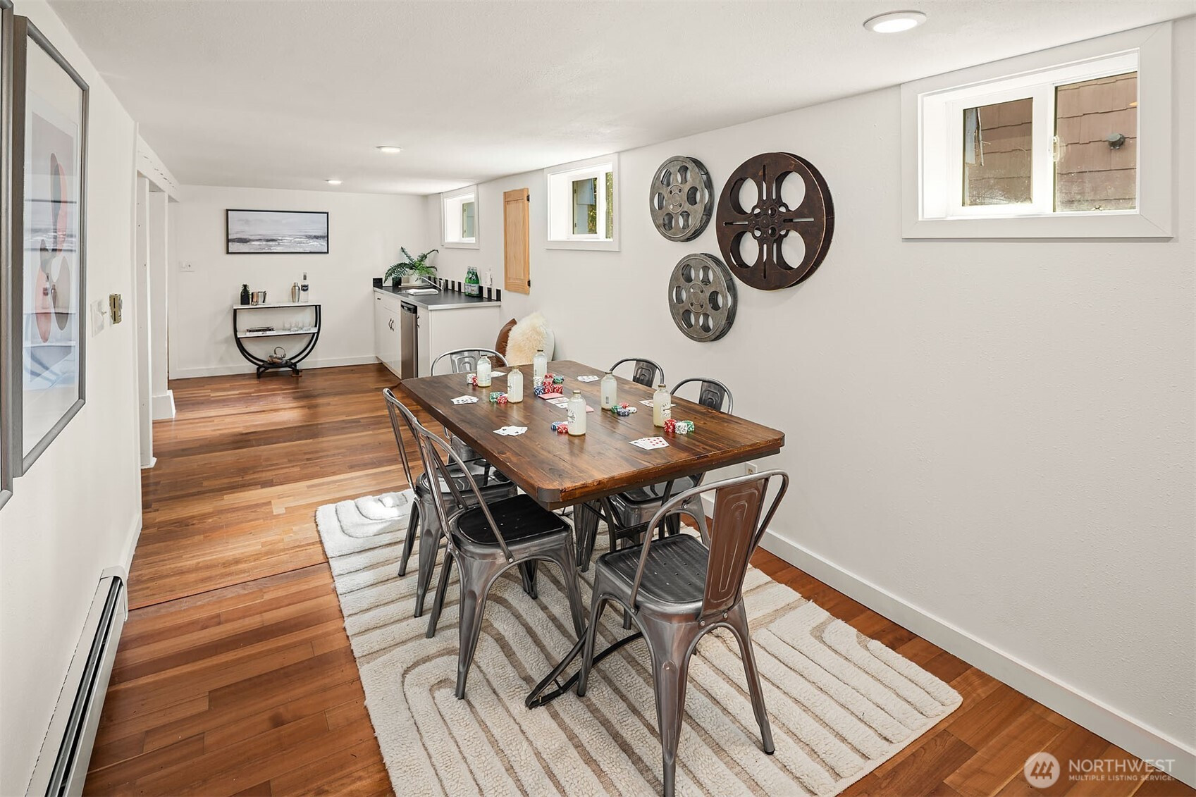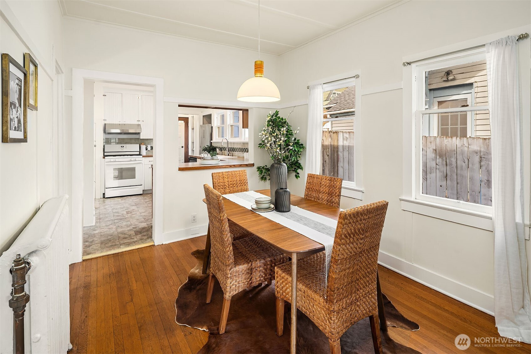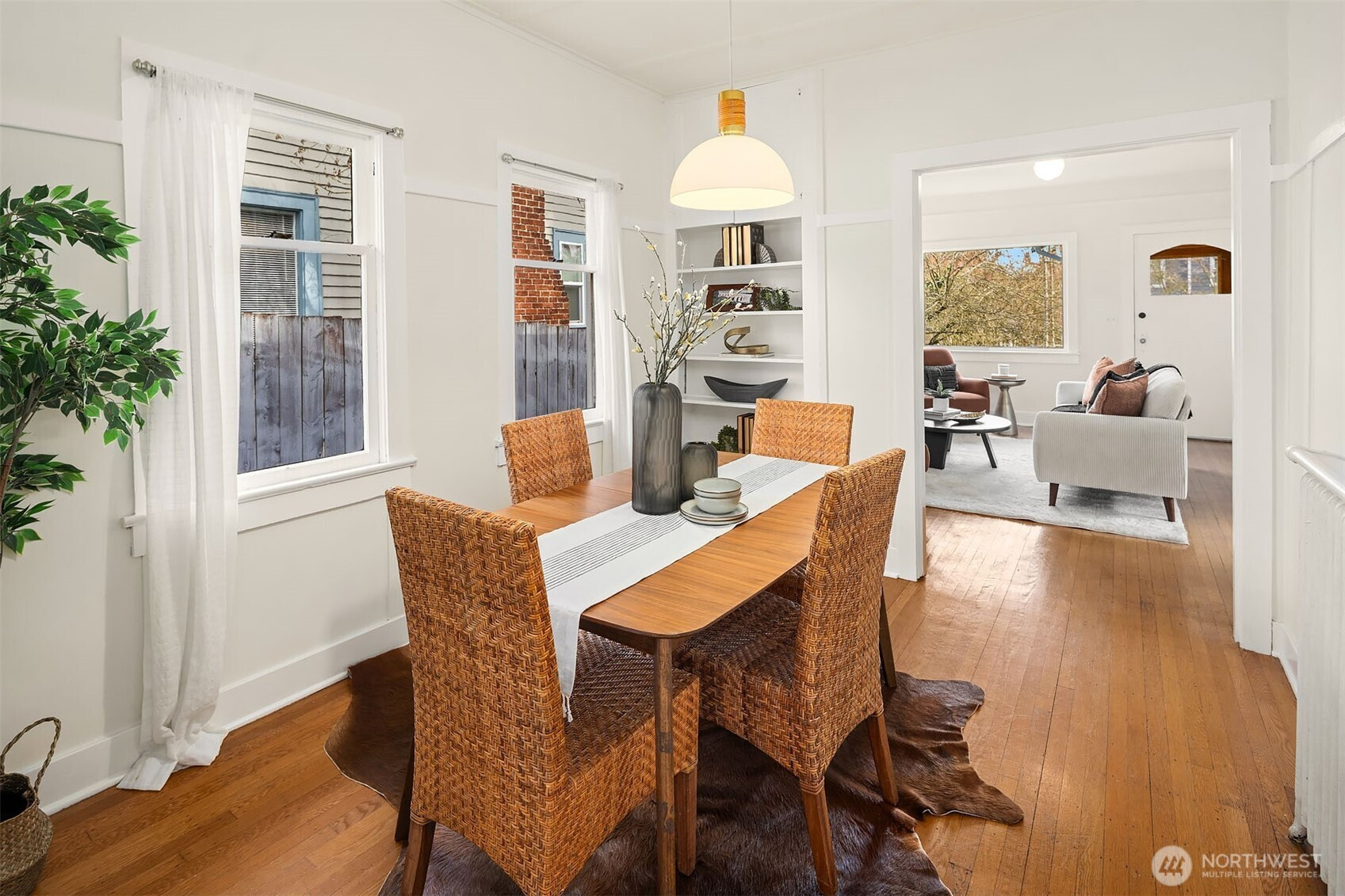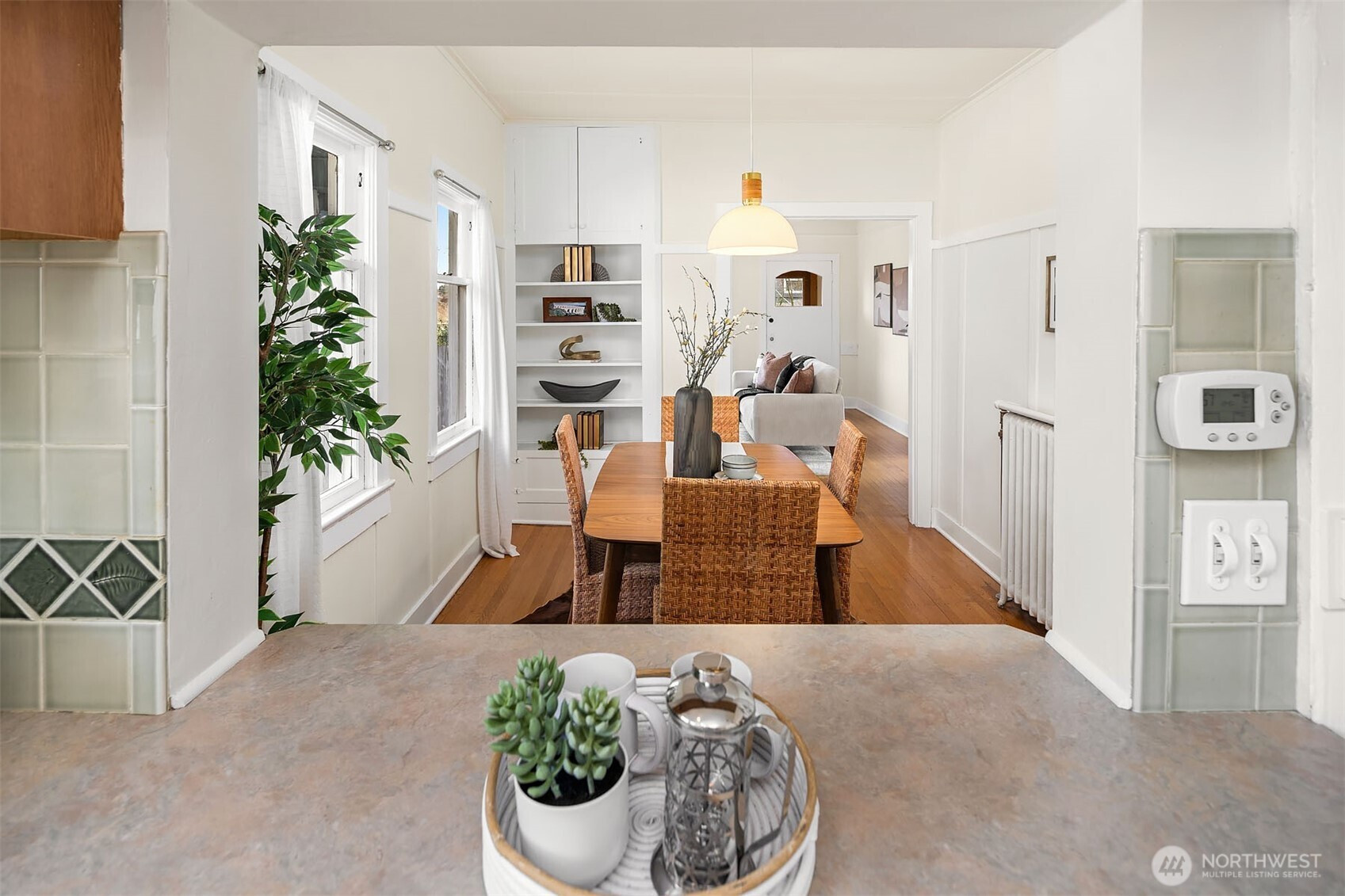 Ravenna Craftsman with 3 bedrooms and 1.75 baths ideally located near Roosevelt light rail, UW, and Green Lake. Classic charm meets thoughtful updates with hardwood floors, high ceilings, built-ins, and a statement fireplace anchoring the living space. Open living and dining areas flow to a spacious kitchen with ample cabinetry and functional layout. The main level offers 2 bedrooms, a full bathroom, and a bright office or flex space - ideal for working from home or additional living. The lower level provides flexibility with a private exterior entry (or interior access) and includes a 3rd bedroom, 3/4 bath, living area, wet bar, workspace, and laundry - well-suited for guests or rental potential. Enjoy a private, fenced backyard with patio and mature landscaping, perfect for entertaining and dining al fresco. A dedicated utility room offers plenty of space for all your gear, tools, and storage needs. Featuring tankless on-demand hot water and a gas fire-boiler system with even radiant heat through hydronic in-floor distribution and classic radiators - quiet, comfortable, and efficient. Major updates include sewer line, updated electrical, new insulation and fresh interior paint. Conveniently located near top-rated schools, Cowen Park, Third Place Books, neighborhood cafes and restaurants, grocery, public transit, with easy access to the University of Washington and downtown Seattle. Move-in ready on a tree-lined street in one of North Seattle’s most desirable neighborhoods.
