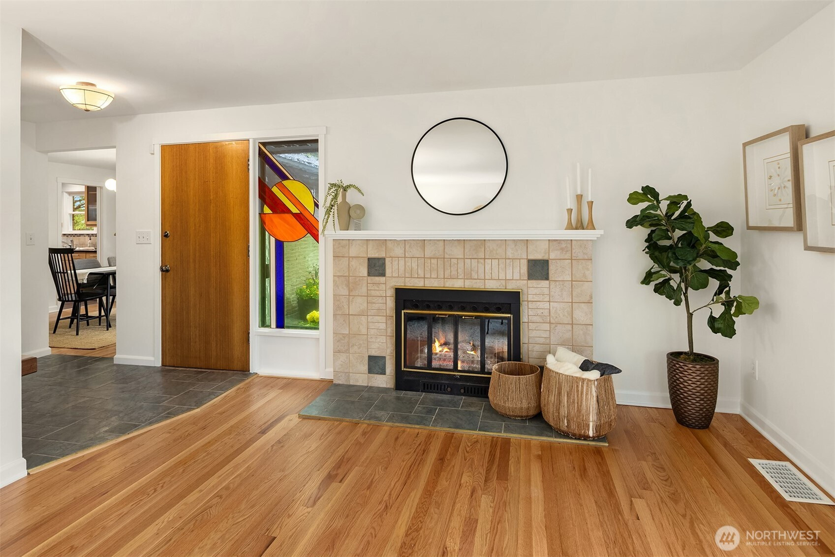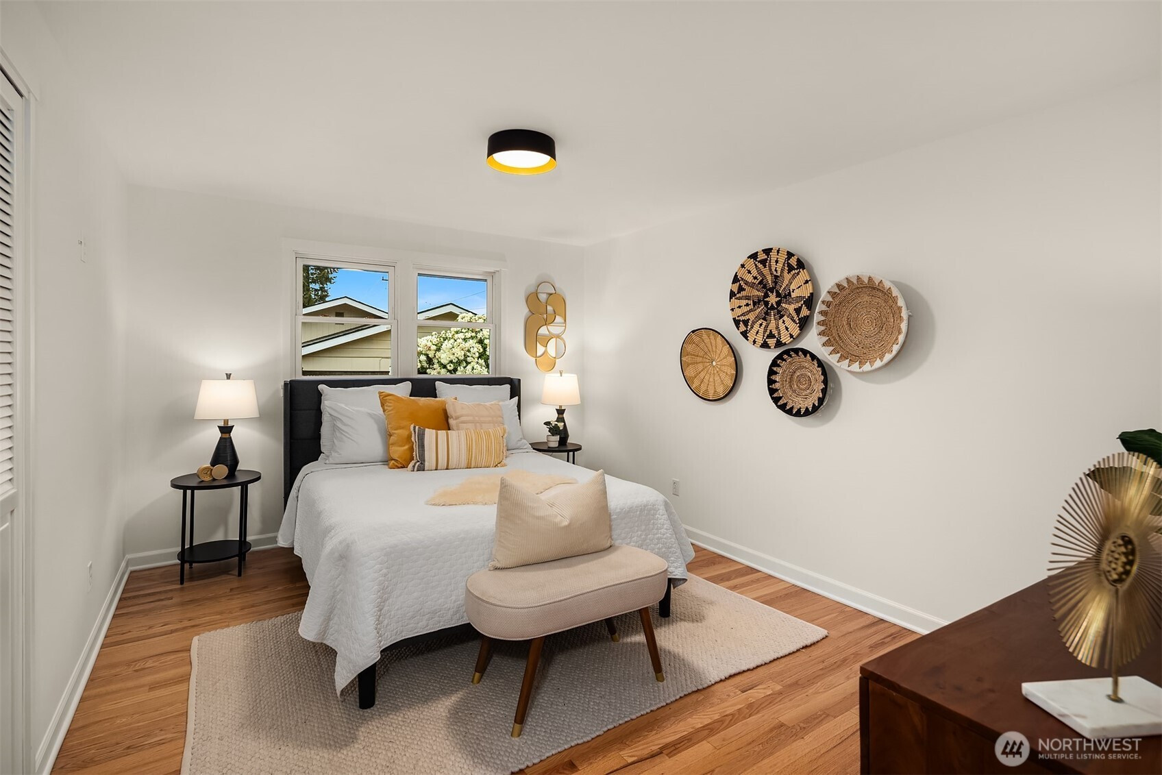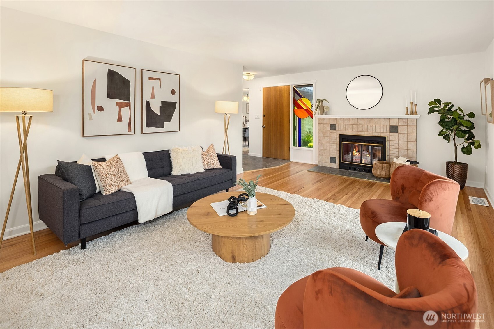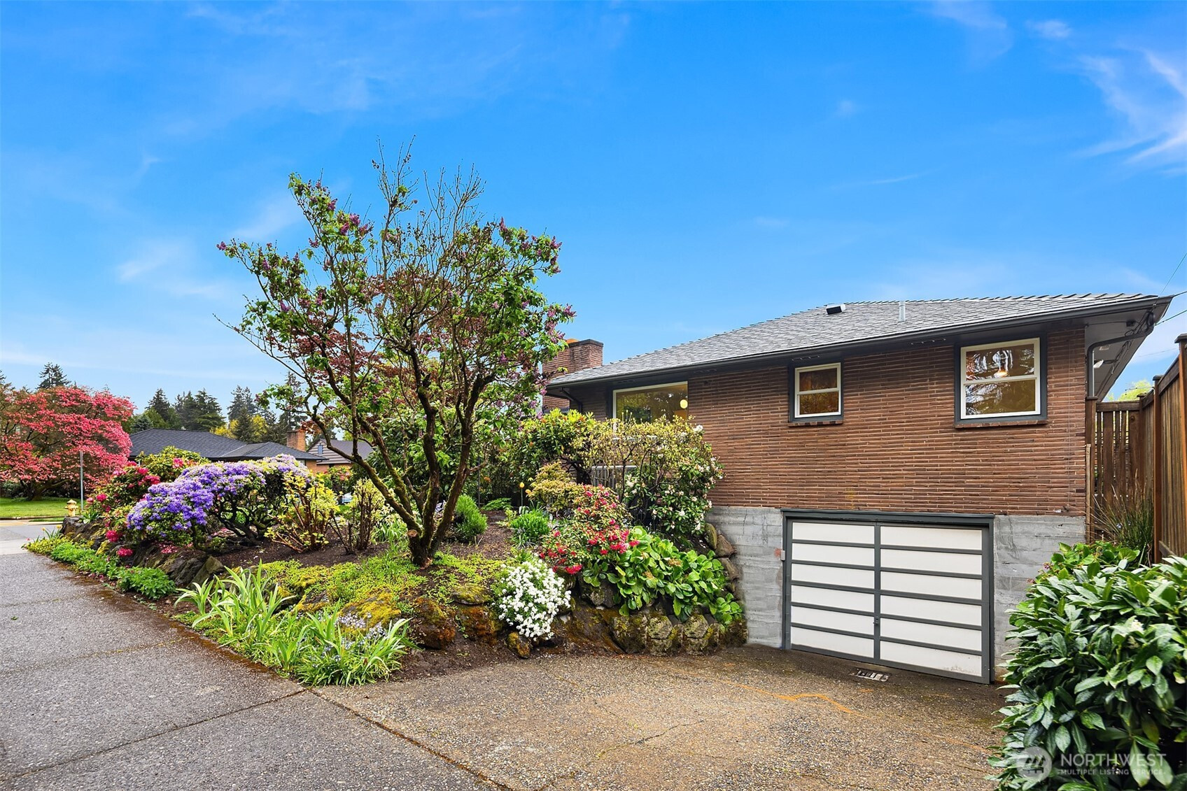 The corner charmer you won’t want to miss. First time on the market in over 40+ years, this lovingly maintained 1953 home offers a rare opportunity to own a true legacy property. Set directly across from newly renovated View Ridge Park, the setting is as special as it is convenient. A welcoming front porch and spacious back patio make indoor-outdoor living easy. The main level offers a large, light-filled living room, dedicated dining space, and an updated kitchen with direct access to the backyard, along with a coveted three-bedroom layout all on one level. Thoughtful updates include newer windows, a heat pump for efficient heating and A/C, fresh interior paint, and beautifully refinished hardwood floors (protected under carpet for decades!) The lower level offers a generous rec room, three quarter bath, laundry, and expansive utility/storage area, plus an attached two car garage. The grounds are truly special, with abundant, thoughtfully curated rose gardens planted by master gardeners, a testament to decades of care. Charming, well maintained, and full of potential, this turnkey home is ready for its next chapter.