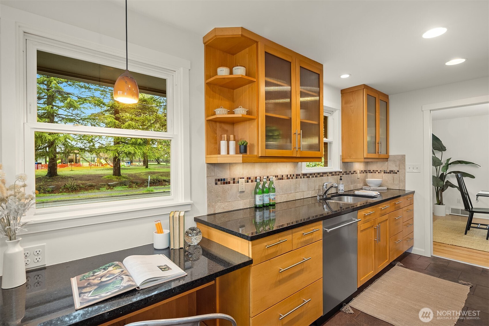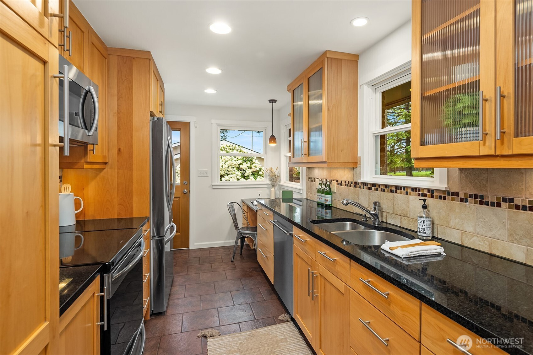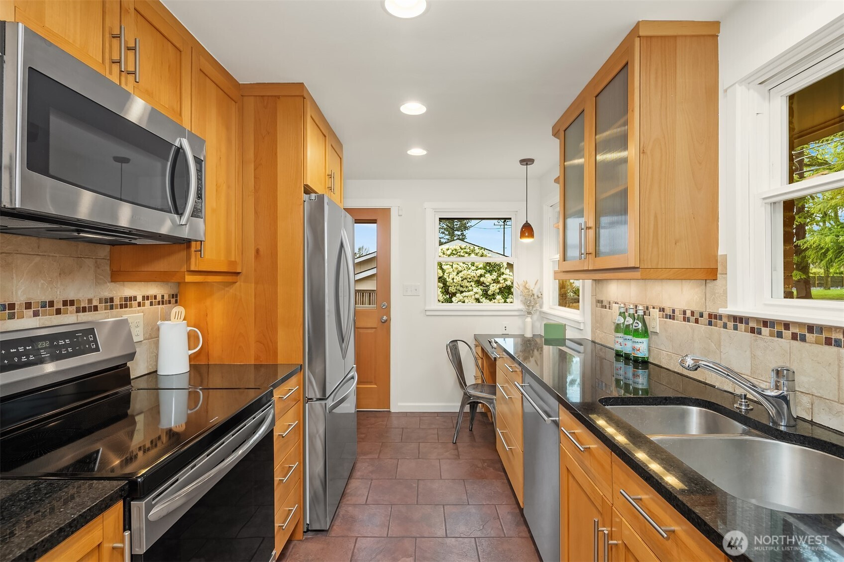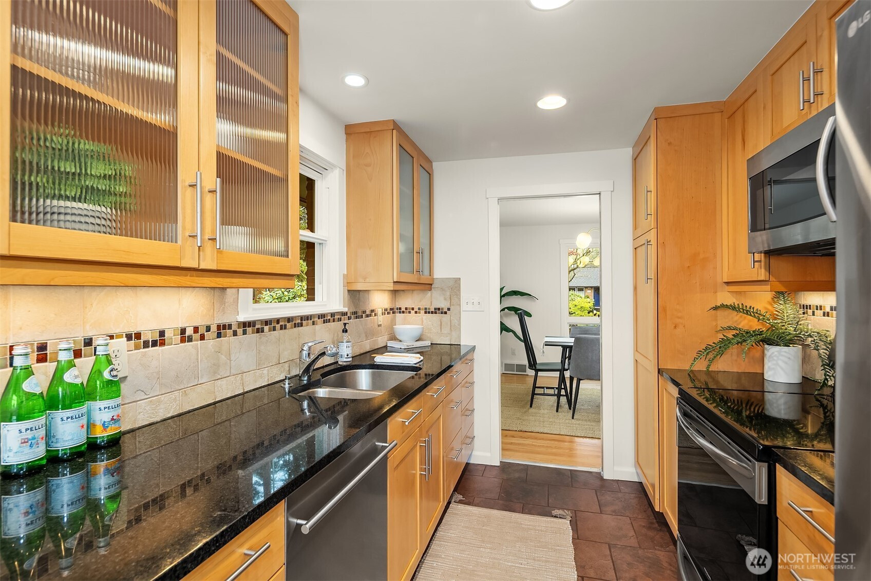 The corner charmer you won’t want to miss. First time on the market in over 40+ years, this lovingly maintained 1953 home offers a rare opportunity to own a true legacy property. Set directly across from newly renovated View Ridge Park, the setting is as special as it is convenient. A welcoming front porch and spacious back patio make indoor-outdoor living easy. The main level offers a large, light-filled living room, dedicated dining space, and an updated kitchen with direct access to the backyard, along with a coveted three-bedroom layout all on one level. Thoughtful updates include newer windows, a heat pump for efficient heating and A/C, fresh interior paint, and beautifully refinished hardwood floors (protected under carpet for decades!) The lower level offers a generous rec room, three quarter bath, laundry, and expansive utility/storage area, plus an attached two car garage. The grounds are truly special, with abundant, thoughtfully curated rose gardens planted by master gardeners, a testament to decades of care. Charming, well maintained, and full of potential, this turnkey home is ready for its next chapter.