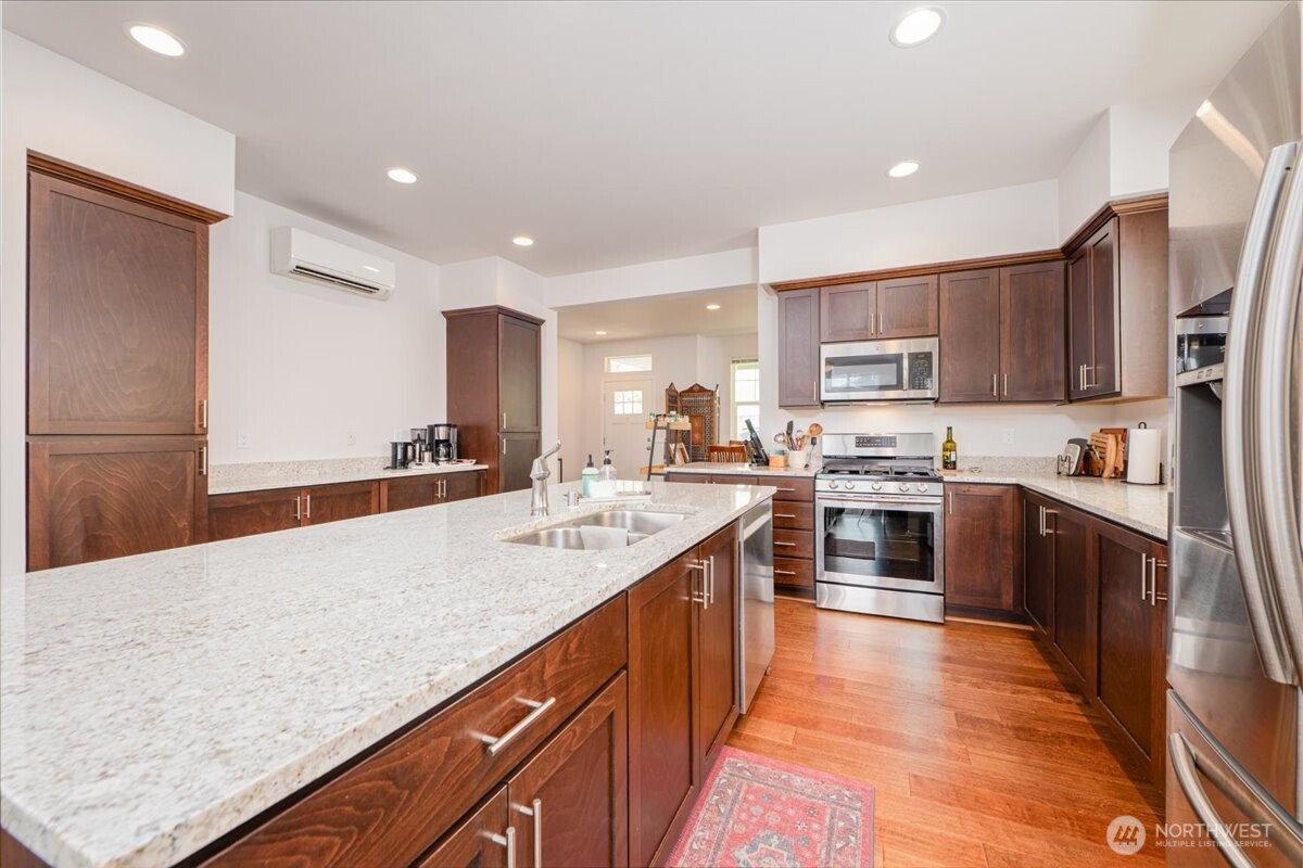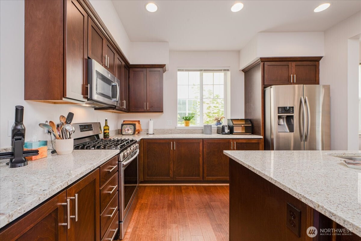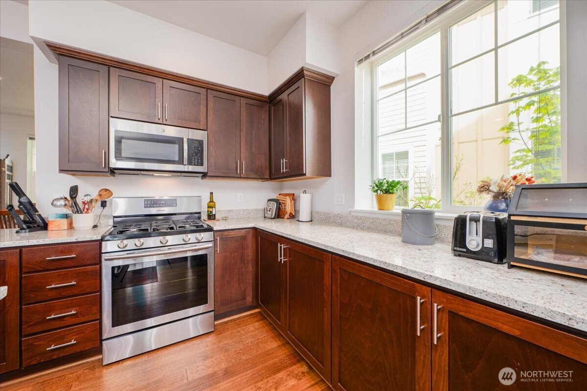 Welcome to this light filled end-unit townhome ideally positioned across from a public park, offering a warm and inviting entry and beautiful territorial and mountain views. The main level is designed for both everyday living and entertaining, featuring a chef’s kitchen, open-concept living and dining areas, hardwood floors, and easy access to a charming front porch and private back patio…perfect for indoor-outdoor gatherings! Upstairs, you’ll find three spacious bedrooms, including a spacious primary suite with a walk-in closet and ensuite bath plus 2 additional bedrooms, laundry & full hall bathroom. Head down to the lower level where you’ll find ample flexibility with a full bedroom and bathroom (ideal for guests, a home office, or home gym!) along with direct access to the attached two-car garage. Located just minutes from the shops and restaurants along California Ave and with convenient access to downtown Seattle, this home combines space, functionality, and an unbeatable West Seattle lifestyle.