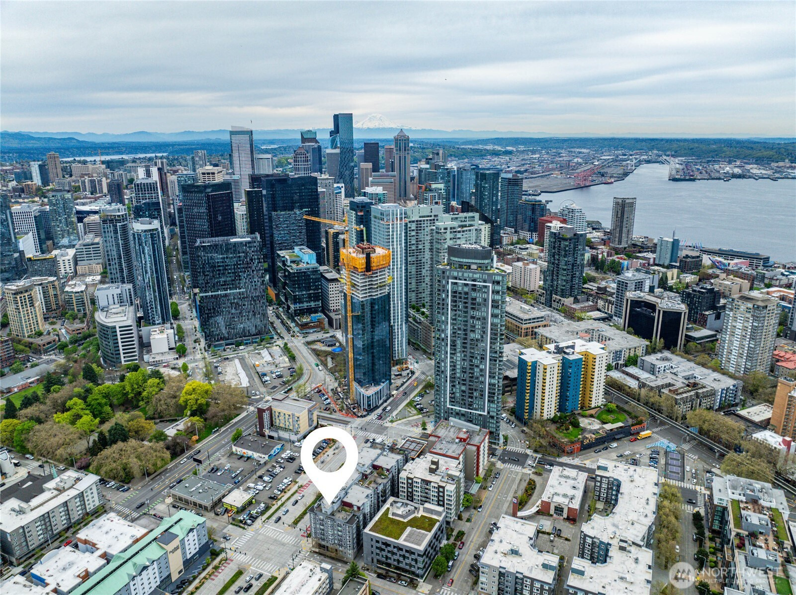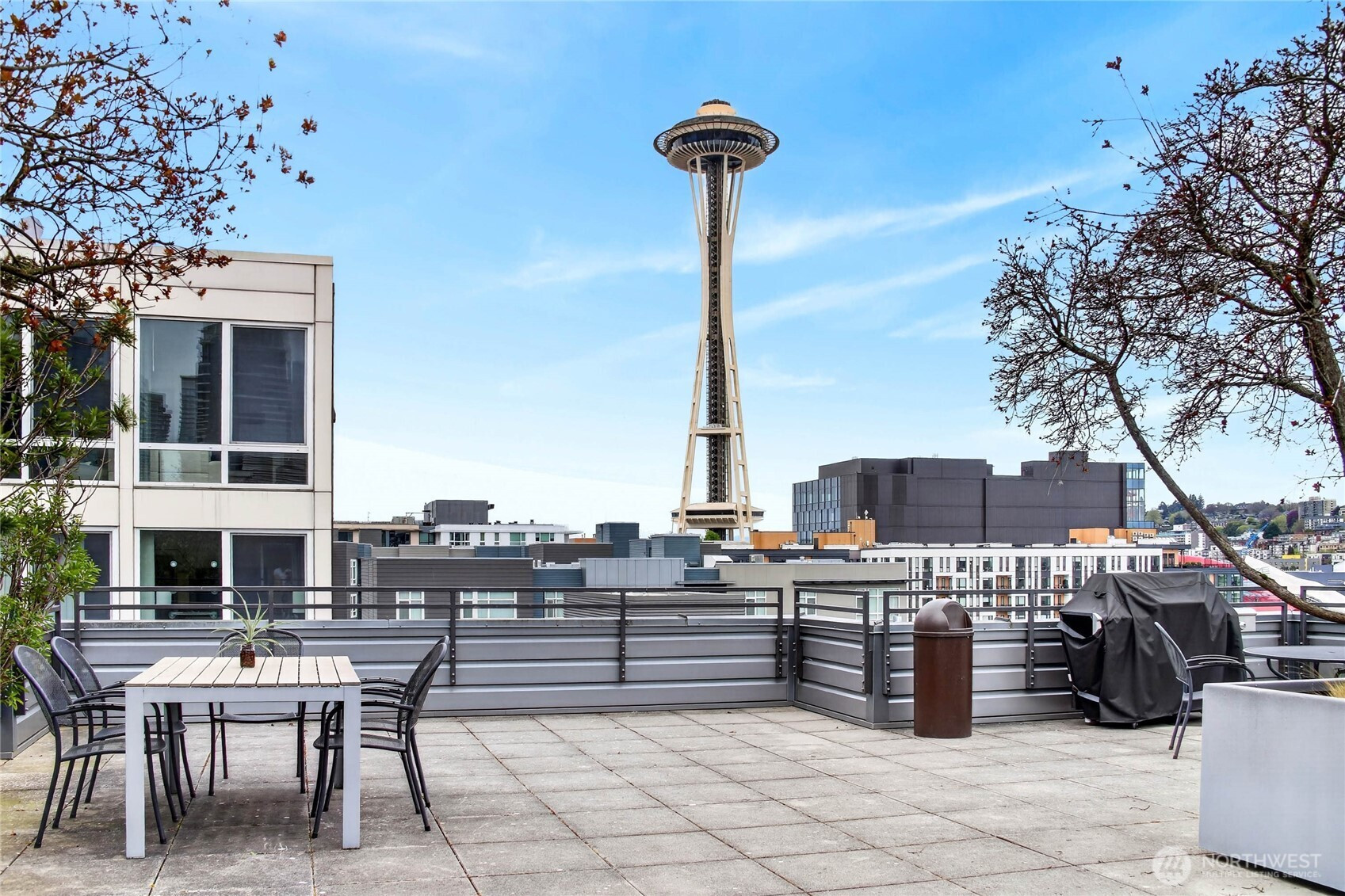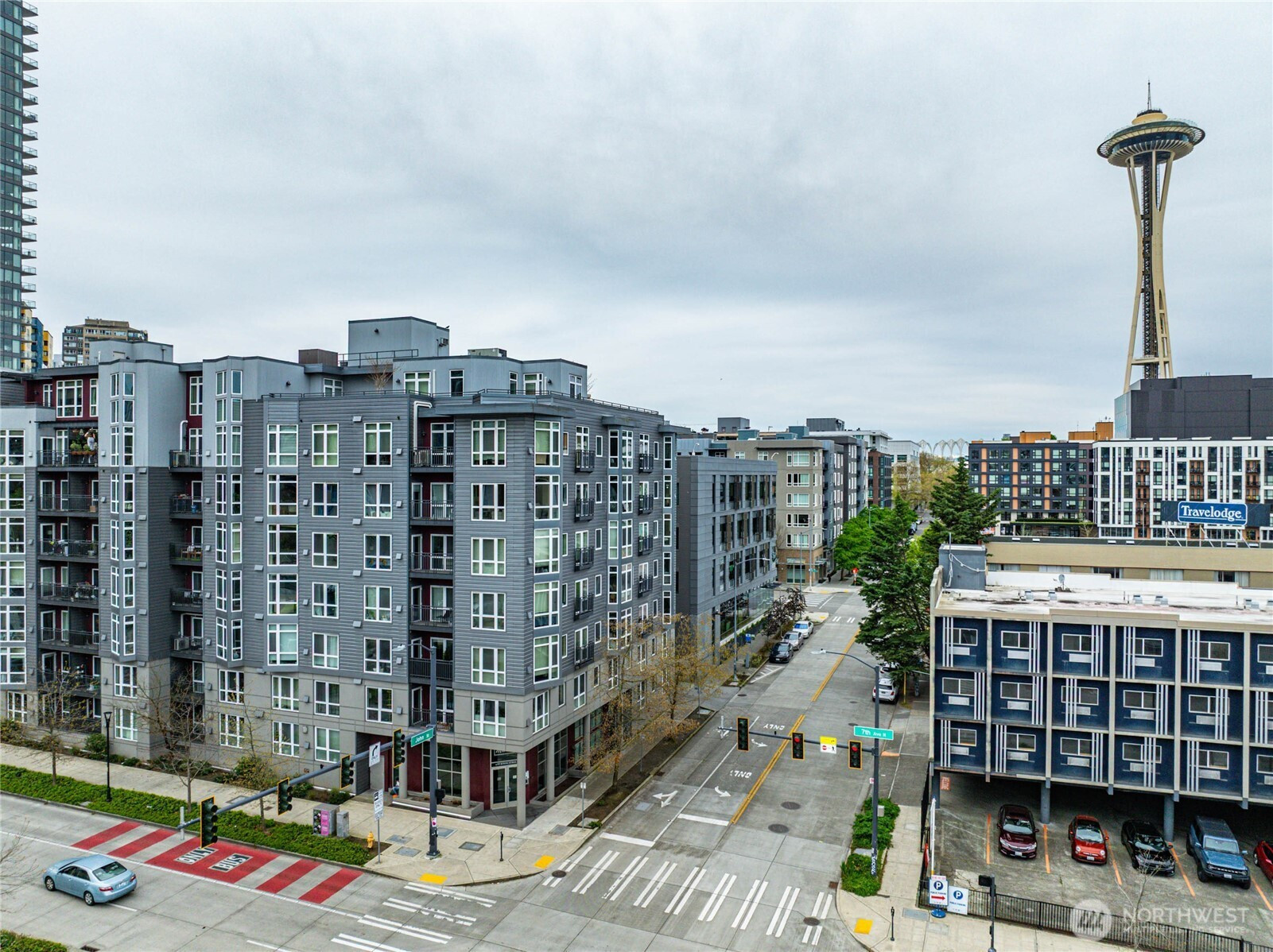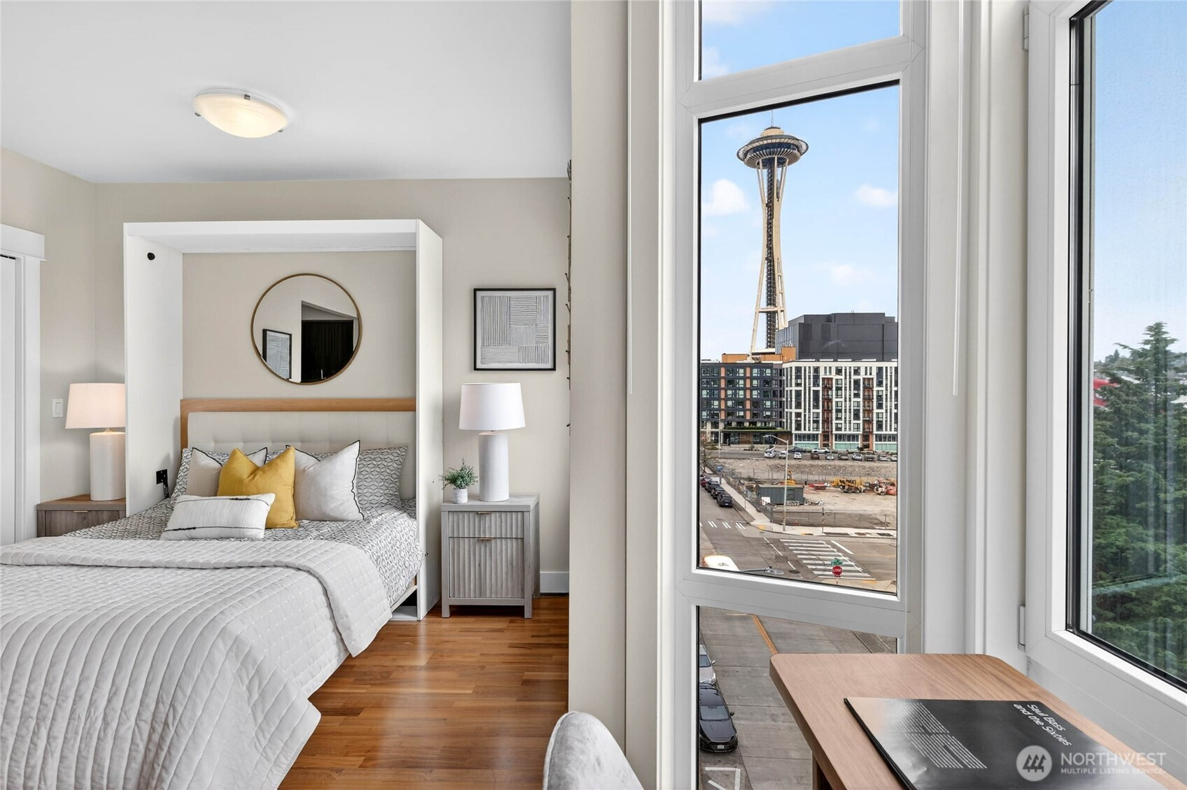 Bright, thoughtfully designed studio at the Marselle with floor-to-ceiling windows framing iconic Space Needle, MoPOP, and hillside views. Quiet, elevated 6th-floor position with exceptional natural light and open outlooks—rare for this location. Lives larger than typical studios with a highly functional layout, full-size kitchen, in-unit laundry, and Murphy bed for flexible living. Includes secure garage parking and storage. Enjoy front-row views of New Year’s fireworks from home or the rooftop decks. Steps to Seattle Center and Climate Pledge Arena, with easy transit to Lumen Field—host of Seahawks and the upcoming World Cup. Ideally located where Belltown, Queen Anne, and South Lake Union meet, blocks from Apple, Amazon, and Google. No rental cap and no special assessments—an increasingly rare opportunity. Pet-friendly and professionally managed, with premium amenities including fitness center, yoga studio, three rooftop decks with BBQ and Space Needle views, and resident lounge.