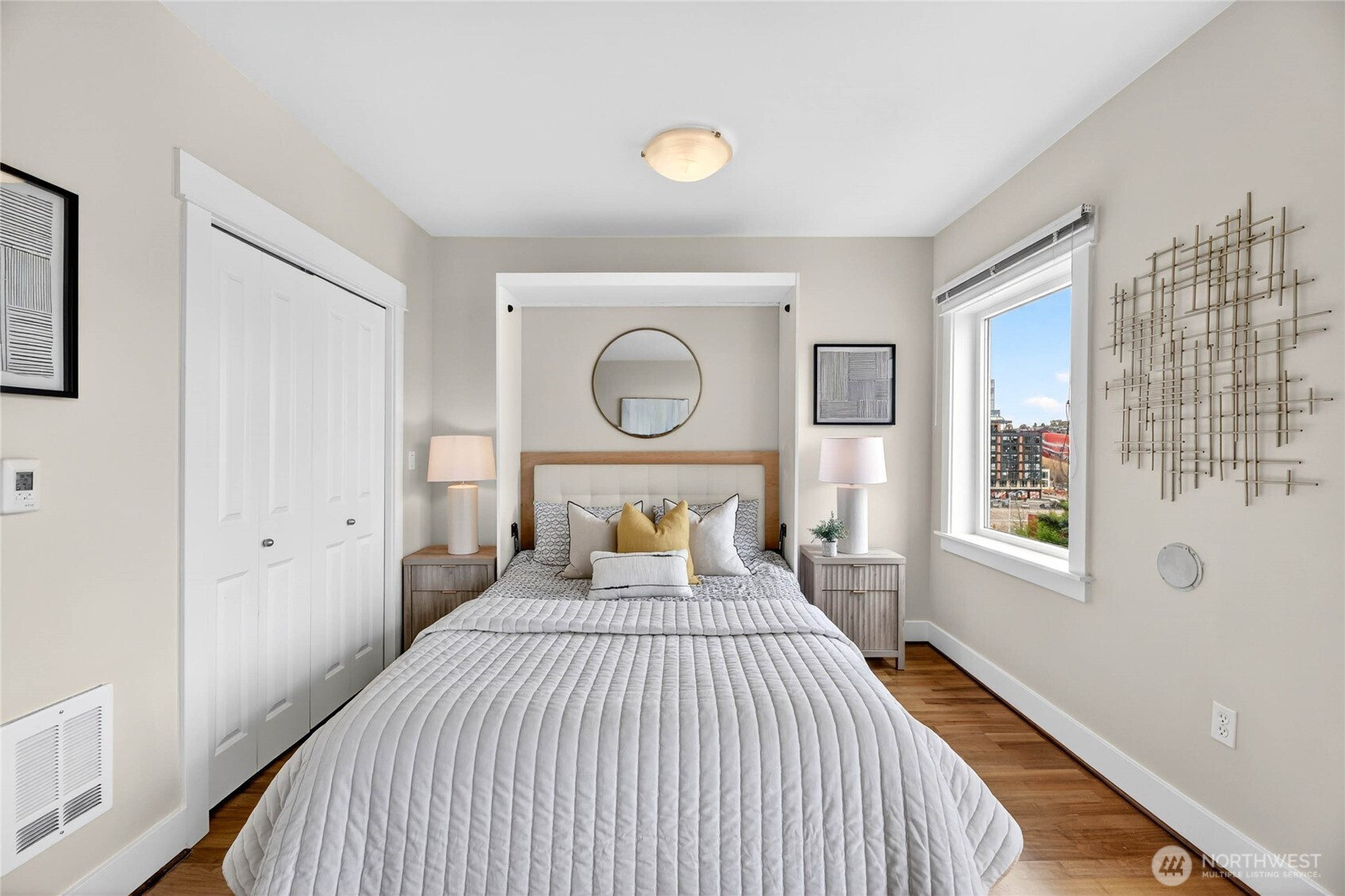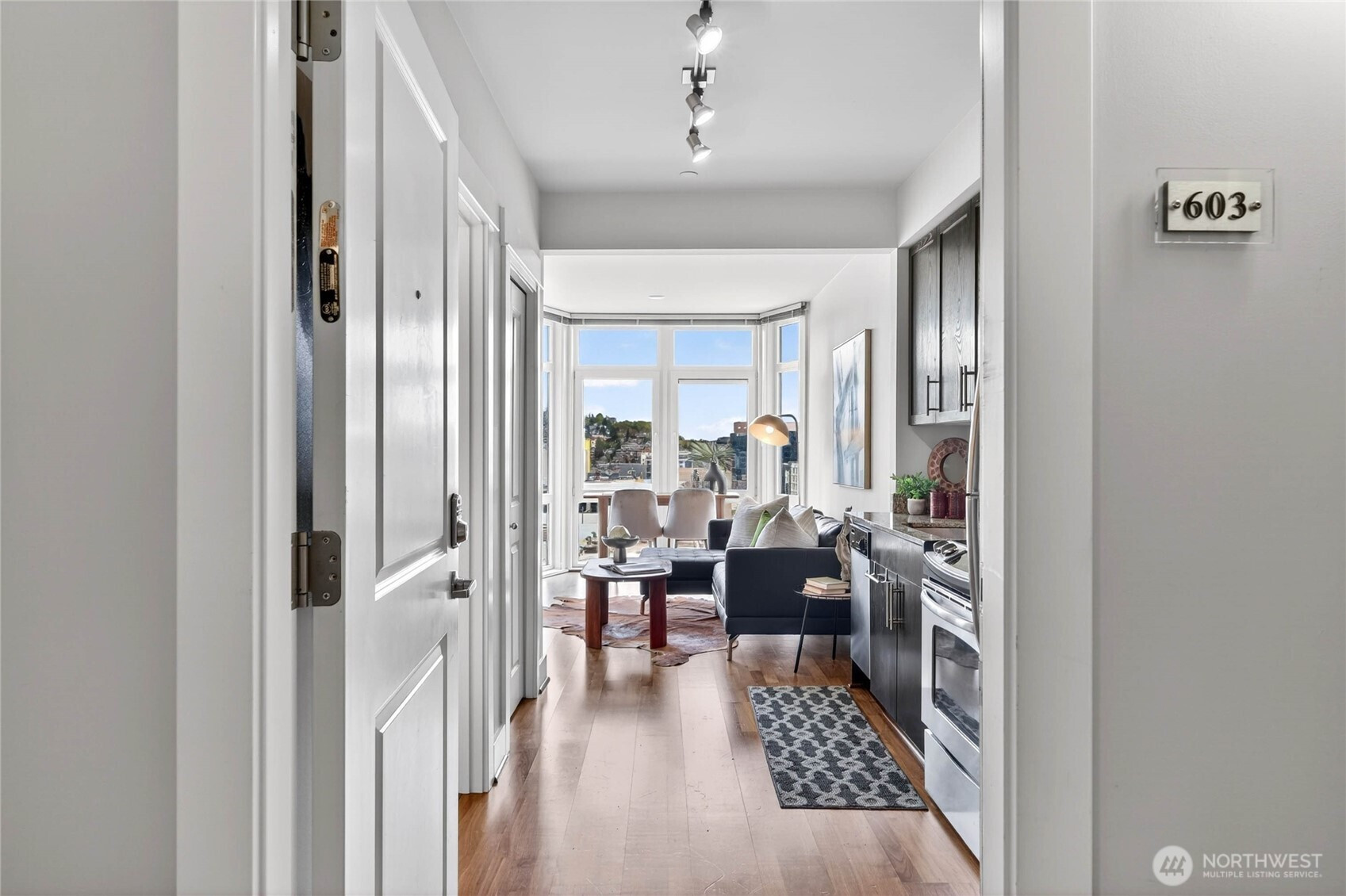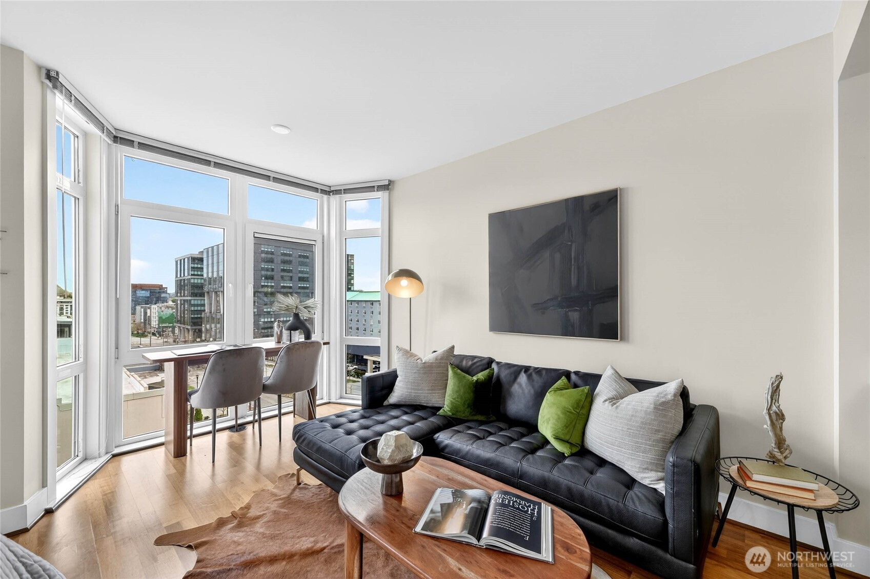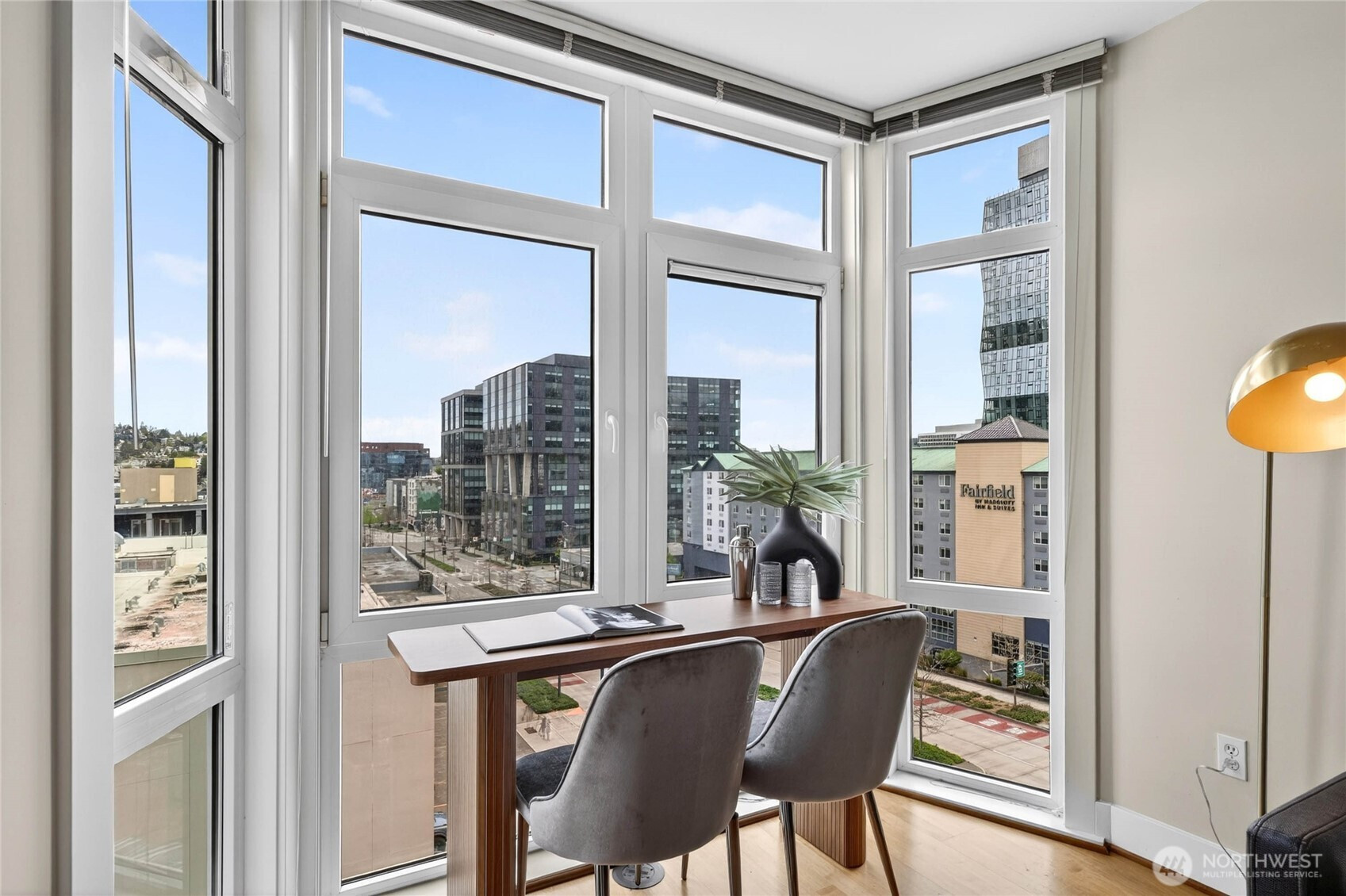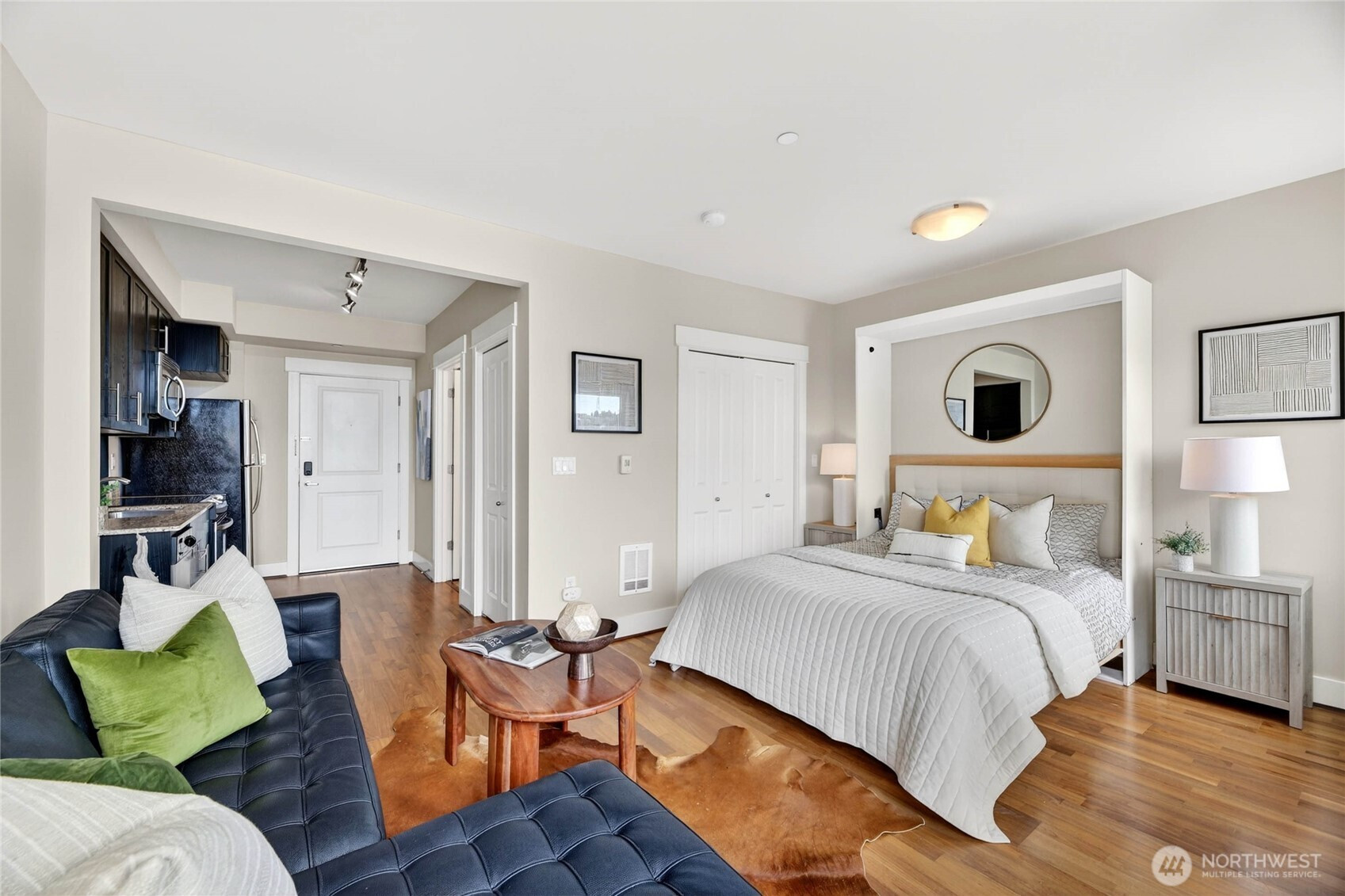 Bright, thoughtfully designed studio at the Marselle with floor-to-ceiling windows framing iconic Space Needle, MoPOP, and hillside views. Quiet, elevated 6th-floor position with exceptional natural light and open outlooks—rare for this location. Lives larger than typical studios with a highly functional layout, full-size kitchen, in-unit laundry, and Murphy bed for flexible living. Includes secure garage parking and storage. Enjoy front-row views of New Year’s fireworks from home or the rooftop decks. Steps to Seattle Center and Climate Pledge Arena, with easy transit to Lumen Field—host of Seahawks and the upcoming World Cup. Ideally located where Belltown, Queen Anne, and South Lake Union meet, blocks from Apple, Amazon, and Google. No rental cap and no special assessments—an increasingly rare opportunity. Pet-friendly and professionally managed, with premium amenities including fitness center, yoga studio, three rooftop decks with BBQ and Space Needle views, and resident lounge.